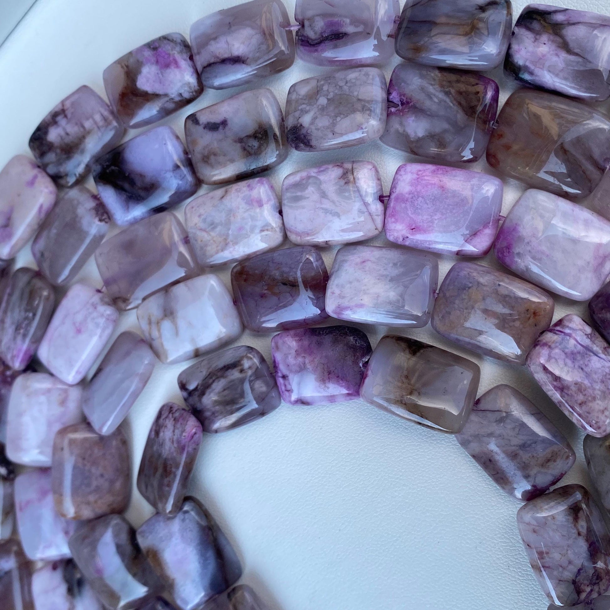 Natürliche lila Achat Rechteck-Perlen für Schmuckherstellung, polierte Edelsteinperlen, DIY Boho Stil, für Halsketten & Armbänder