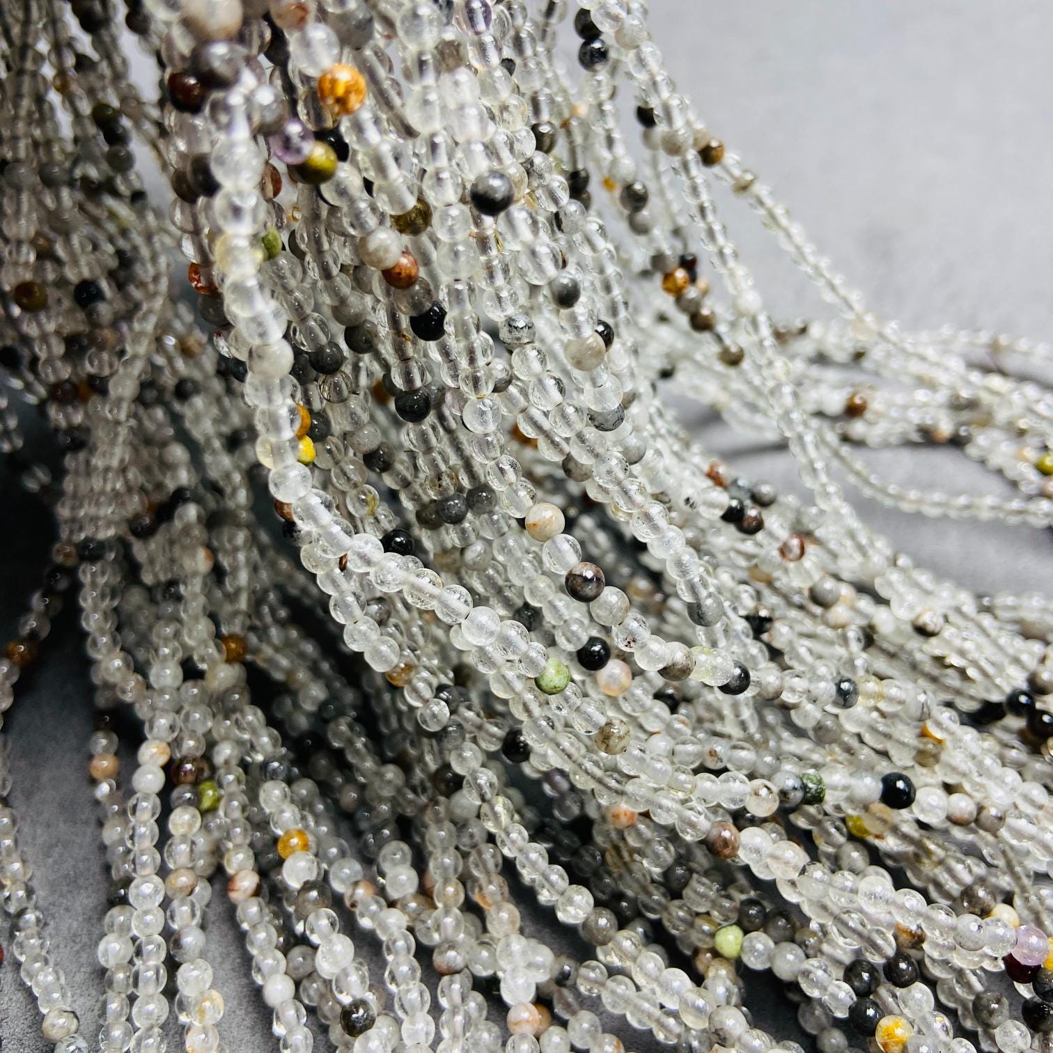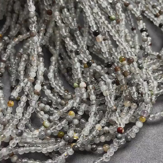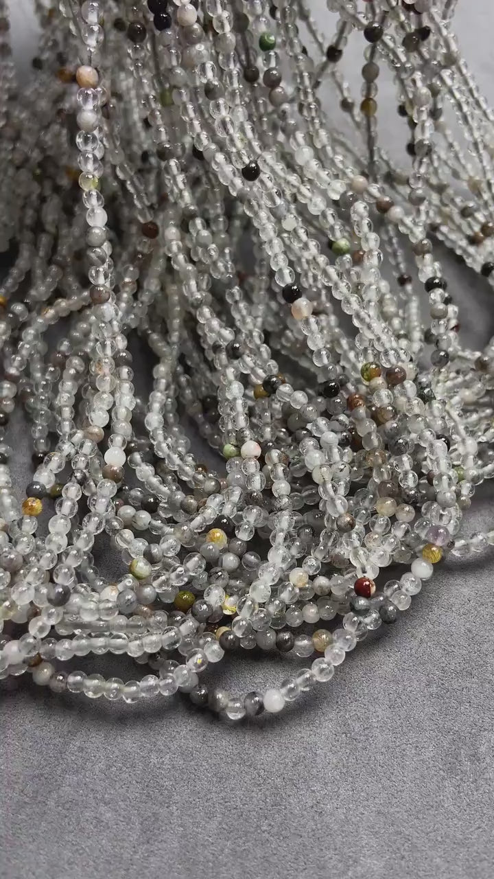 Natürliche Quarz-Perlen mit Einschlüssen lose | 3×3 mm·52 cm·7 g | DIY Armband‑ & Halsketten‑Material | Mineralische Einschlüsse