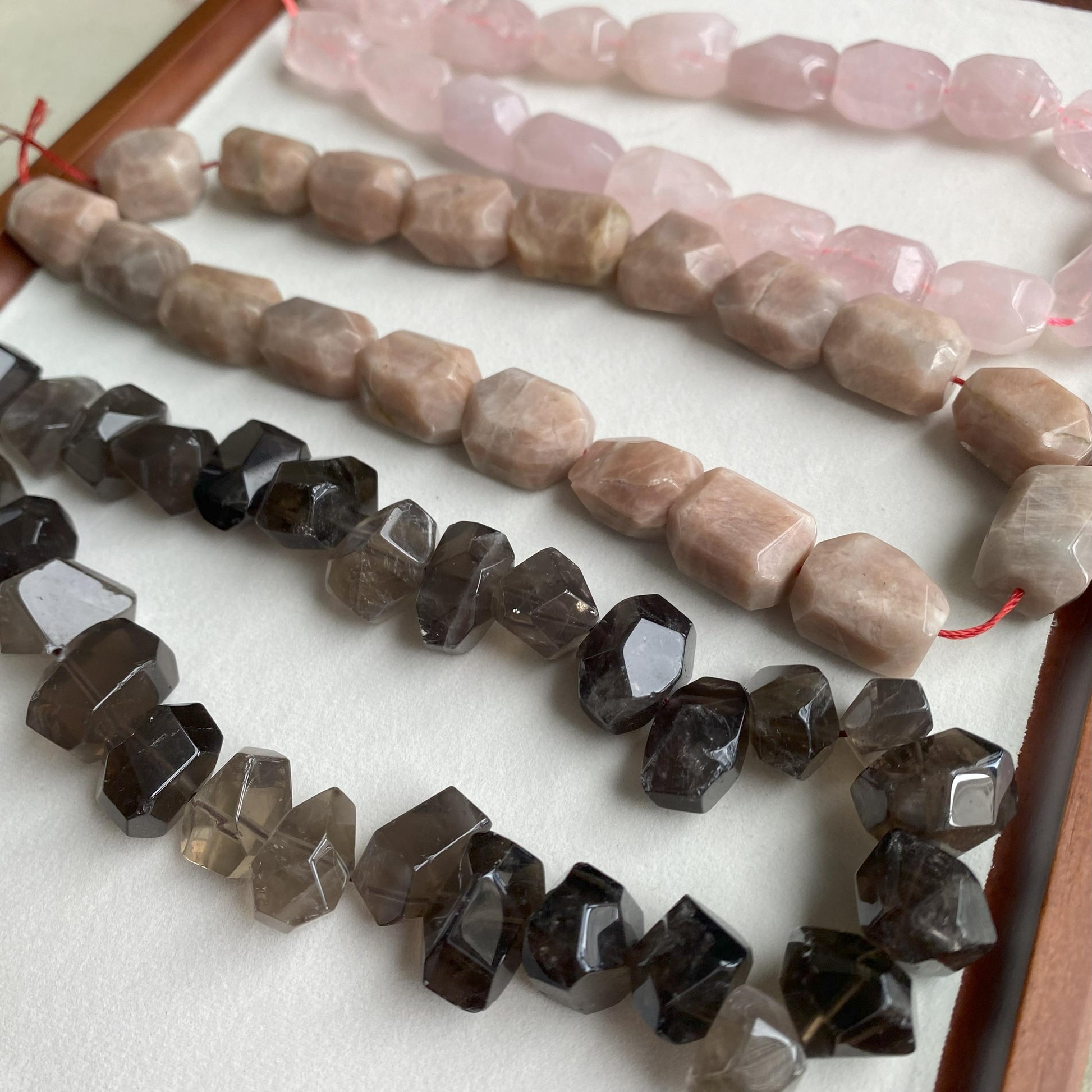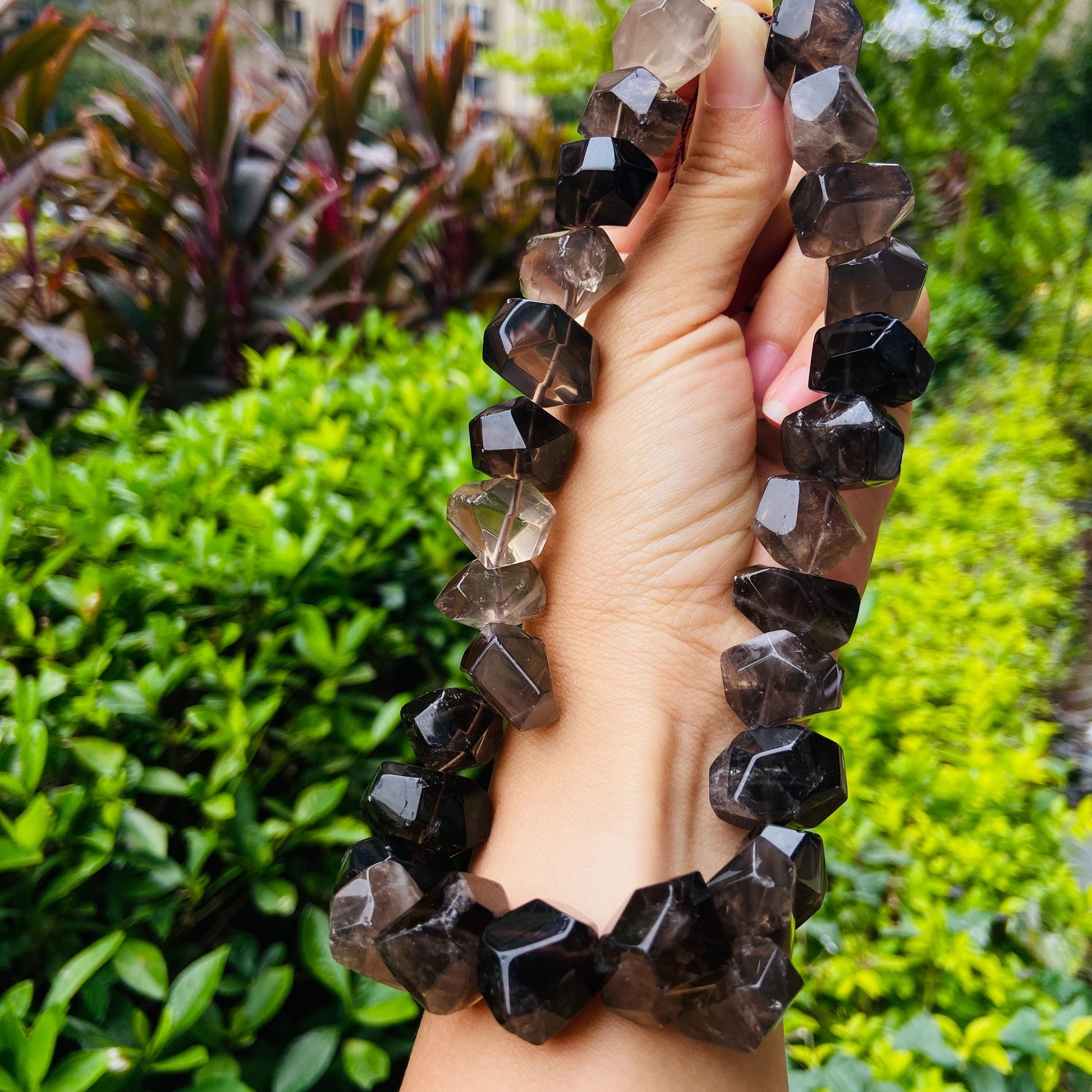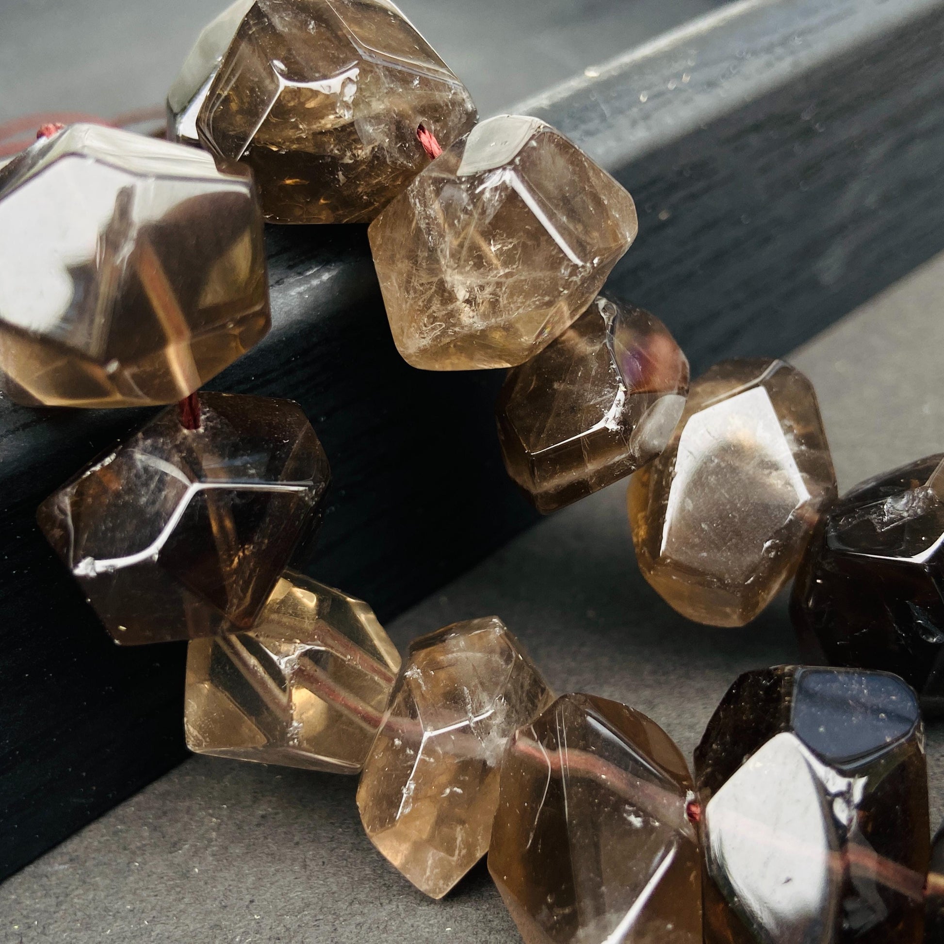 Alle Perlen sind aus echtem Rauchquarz gefertigt. Kleine Unterschiede in Farbe, Schliff oder Transparenz sind normal und machen jedes Stück einzigartig.