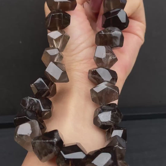Natürliche Rauchquarz Perlen Strang, unregelmäßig facettierte Kristall Nuggets für Schmuckherstellung, Boho DIY Heilstein Bastelperlen 40cm