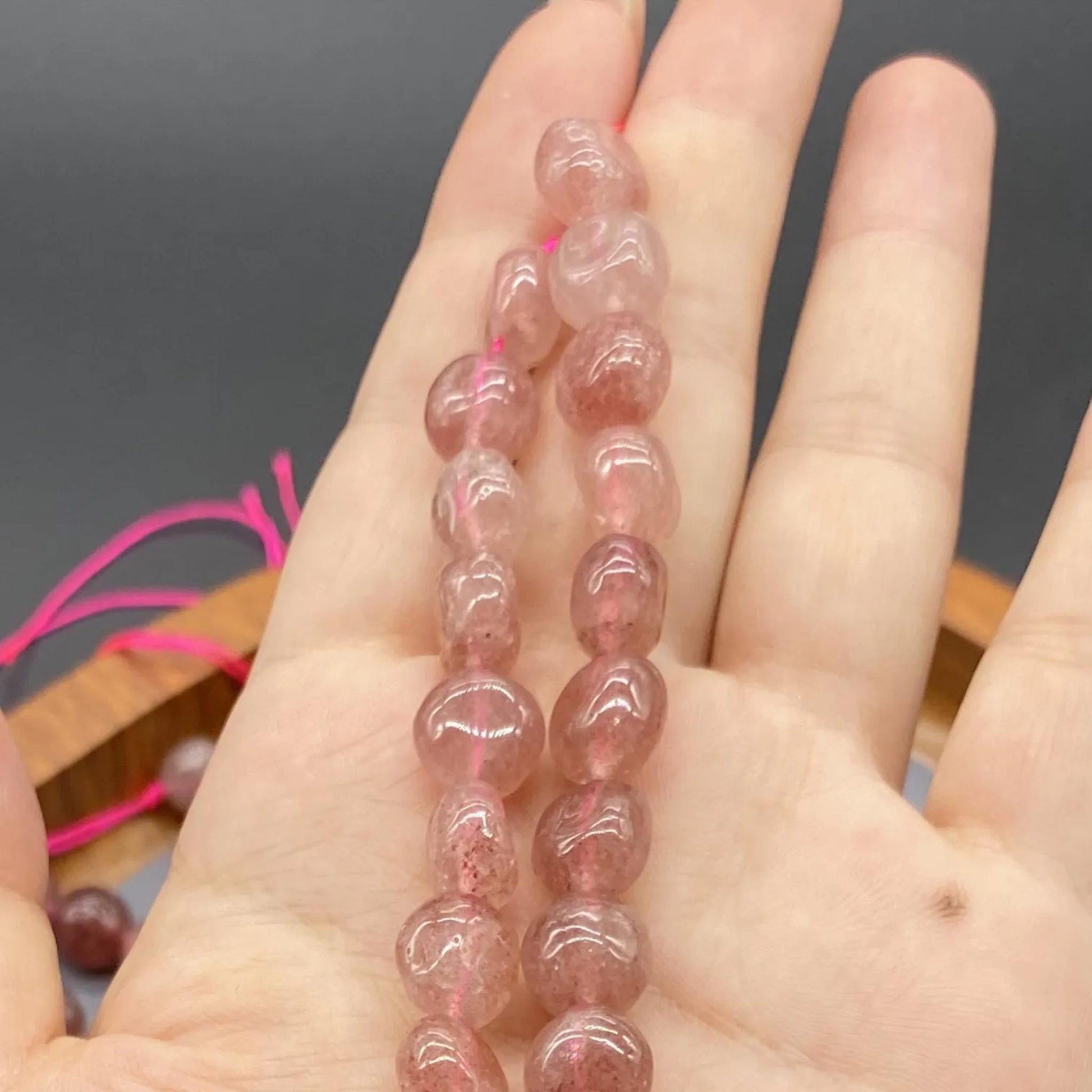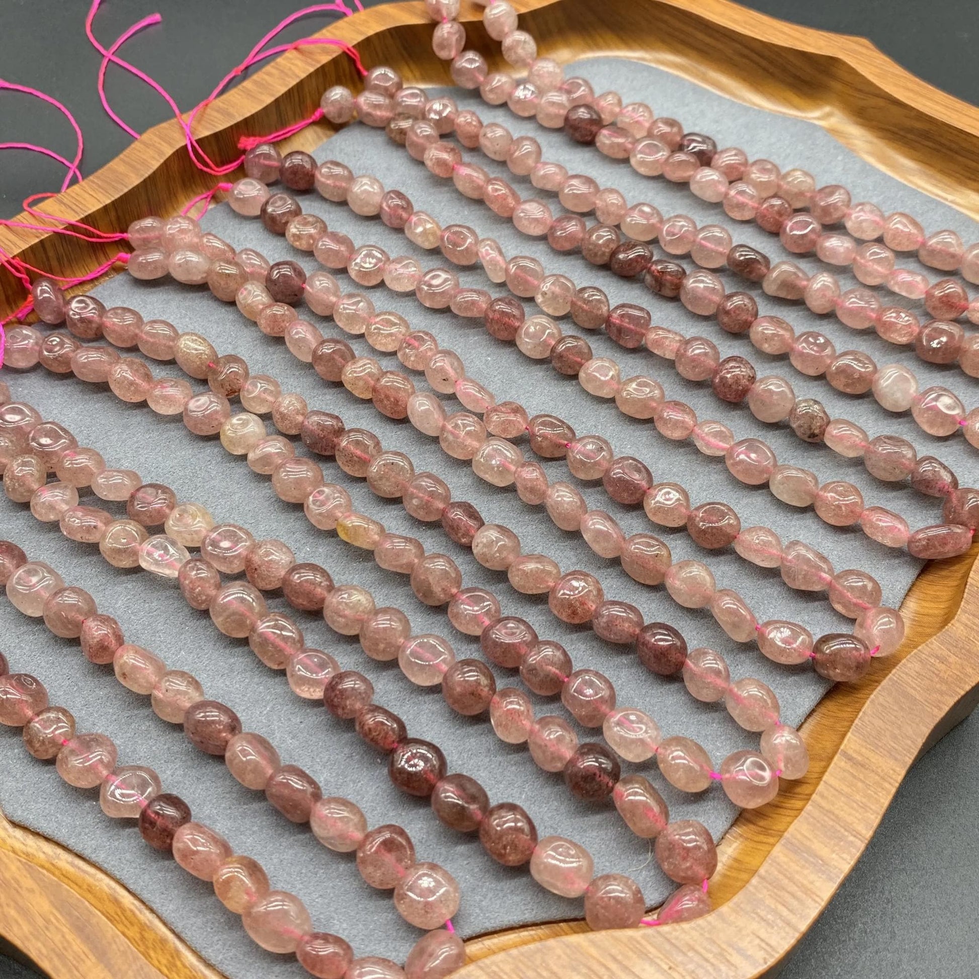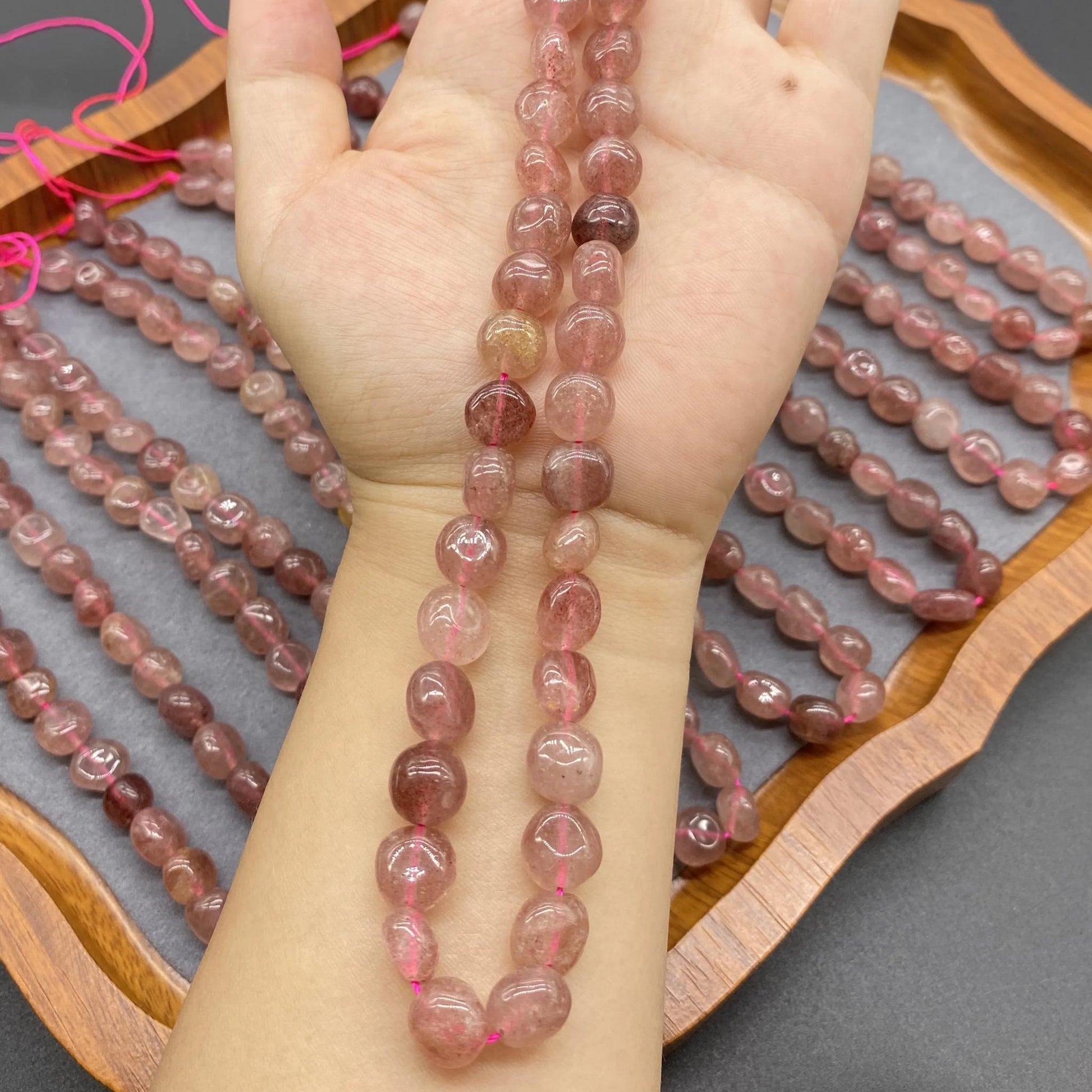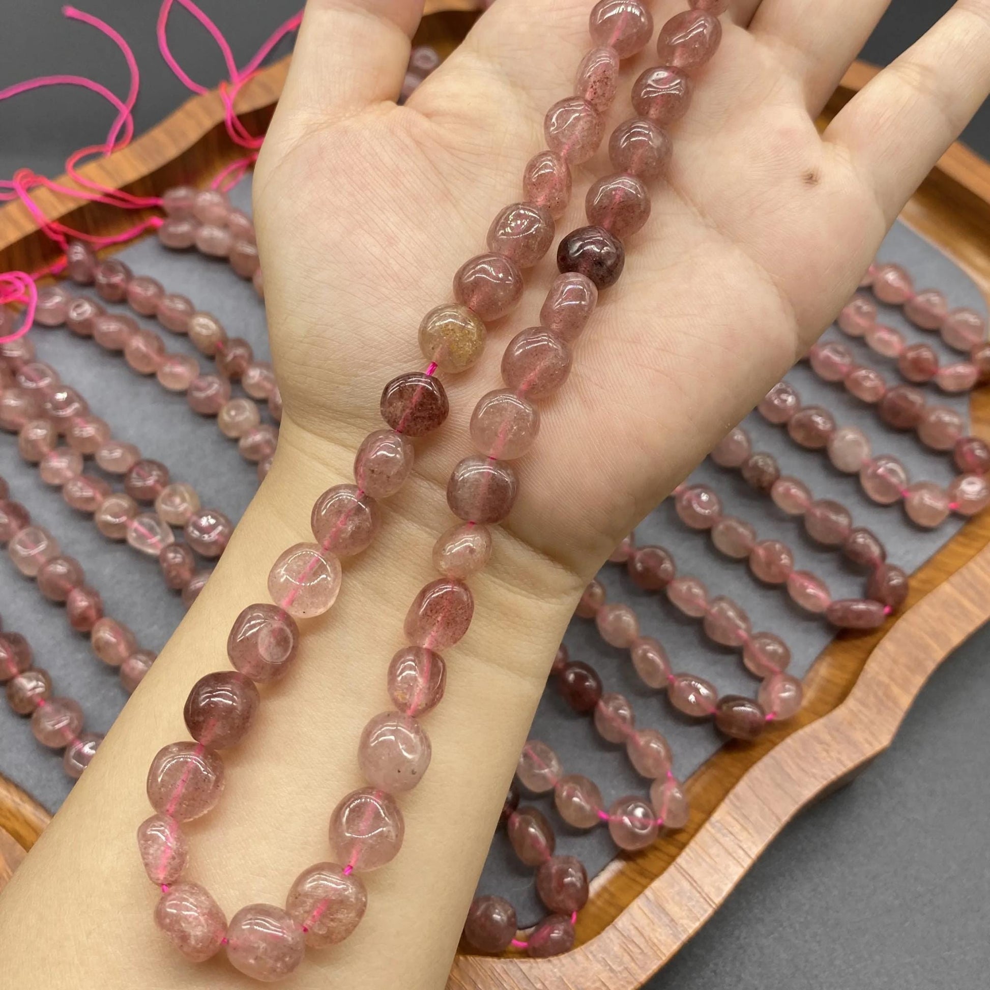 Natürliche Strawberry Quarz Perlen, unregelmäßige runde Kristallperlen, Heilsteine Strang für DIY Schmuckherstellung, ca. 38cm