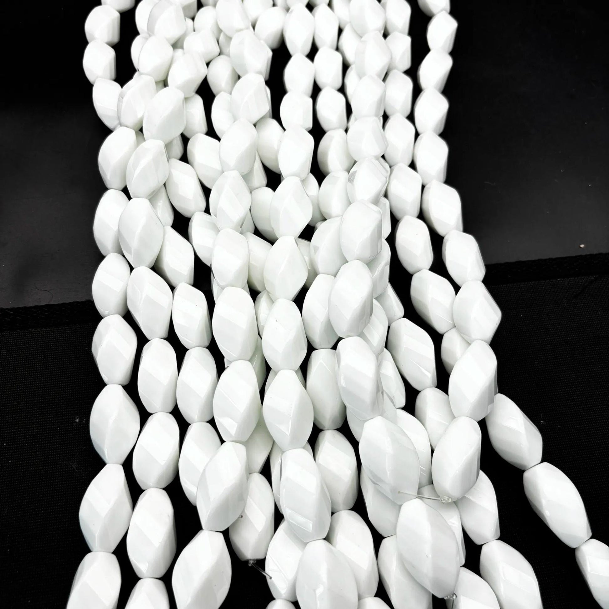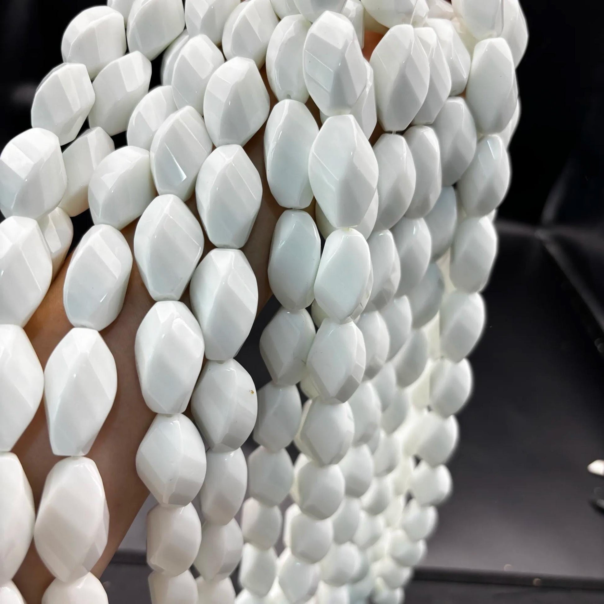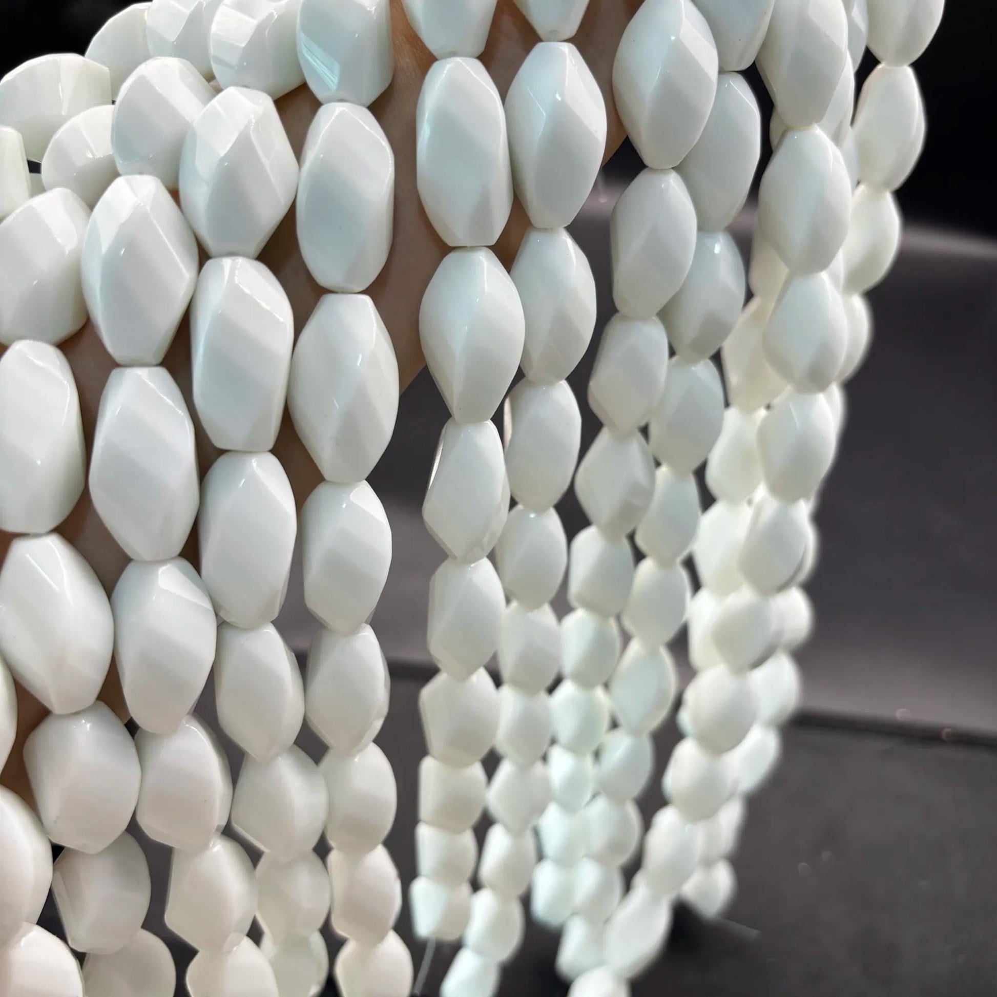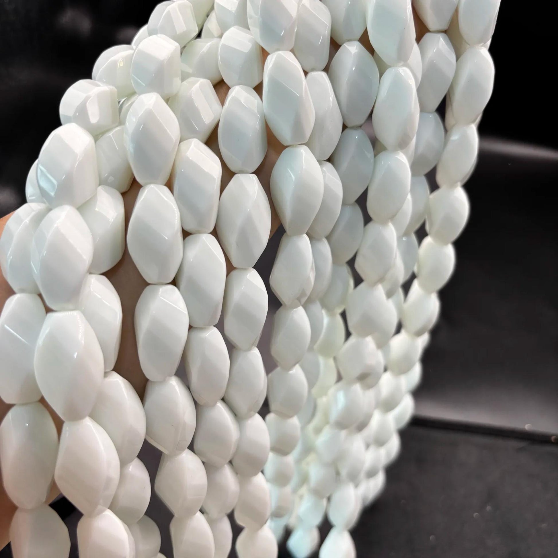 Natürliche weiße Achat Perlen, große facettierte ovale Edelsteine mit Mittelbohrung, polierter Strang für DIY Schmuckherstellung