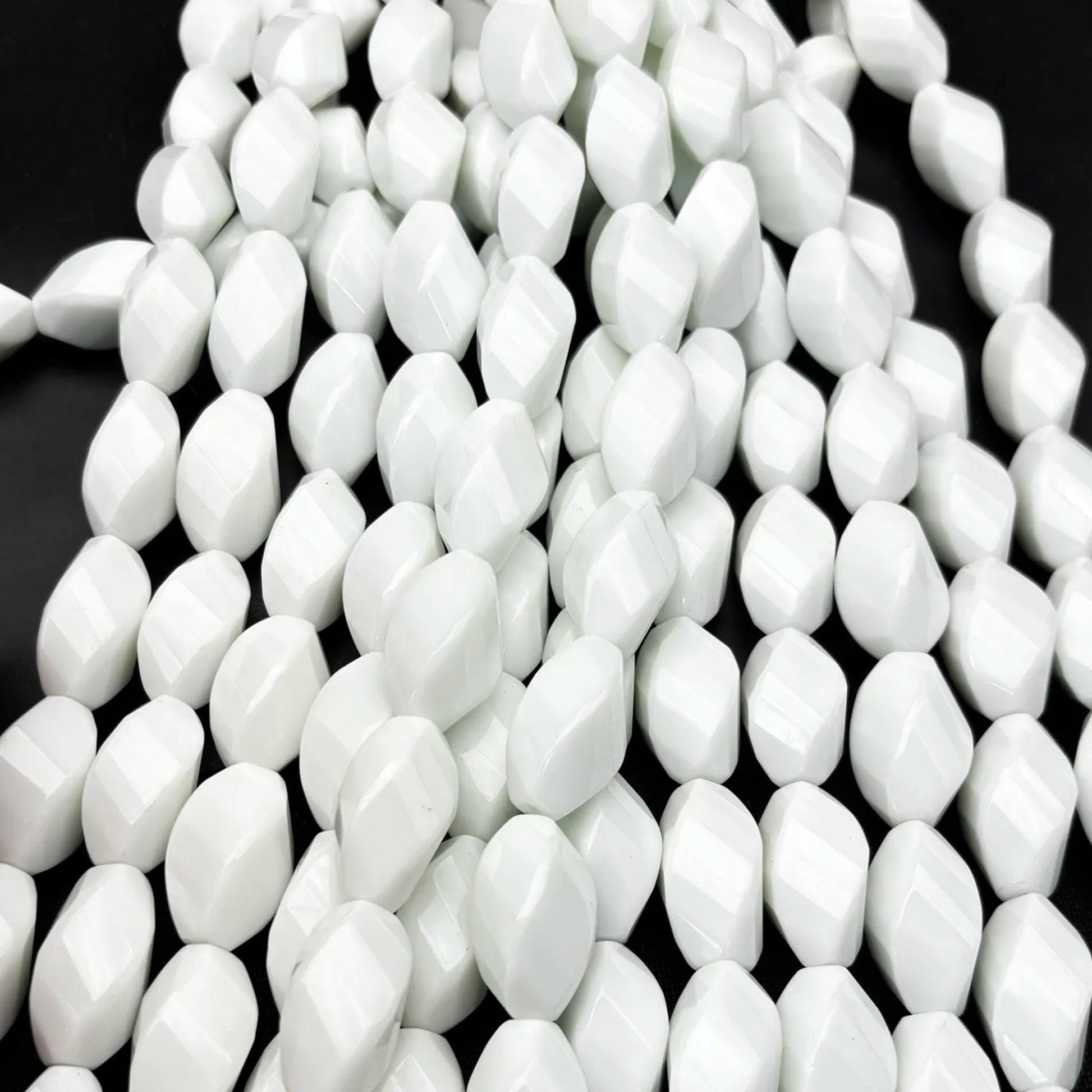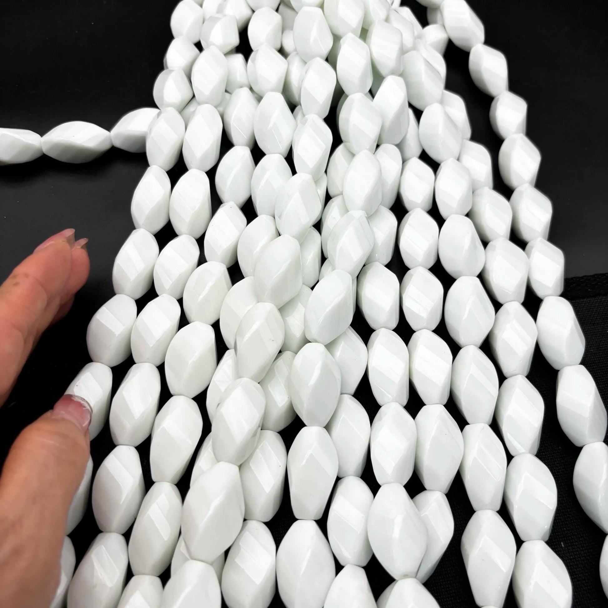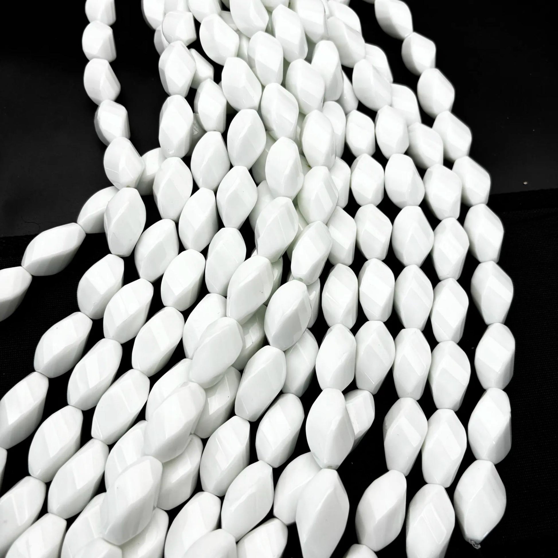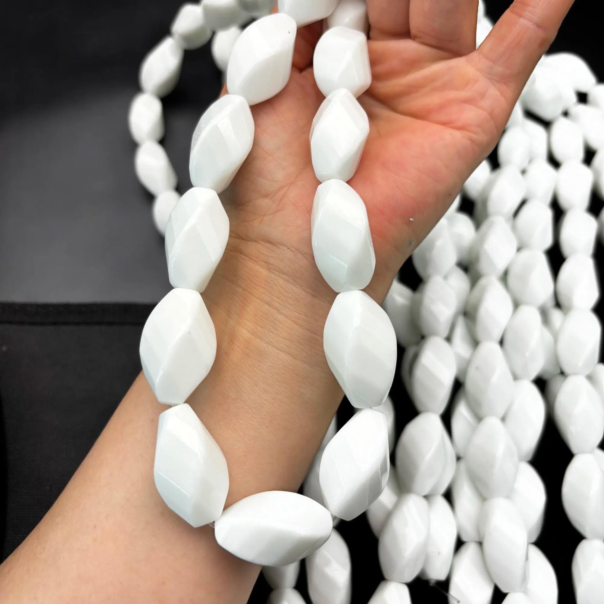 Natürliche weiße Achat Perlen, große facettierte ovale Edelsteine mit Mittelbohrung, polierter Strang für DIY Schmuckherstellung