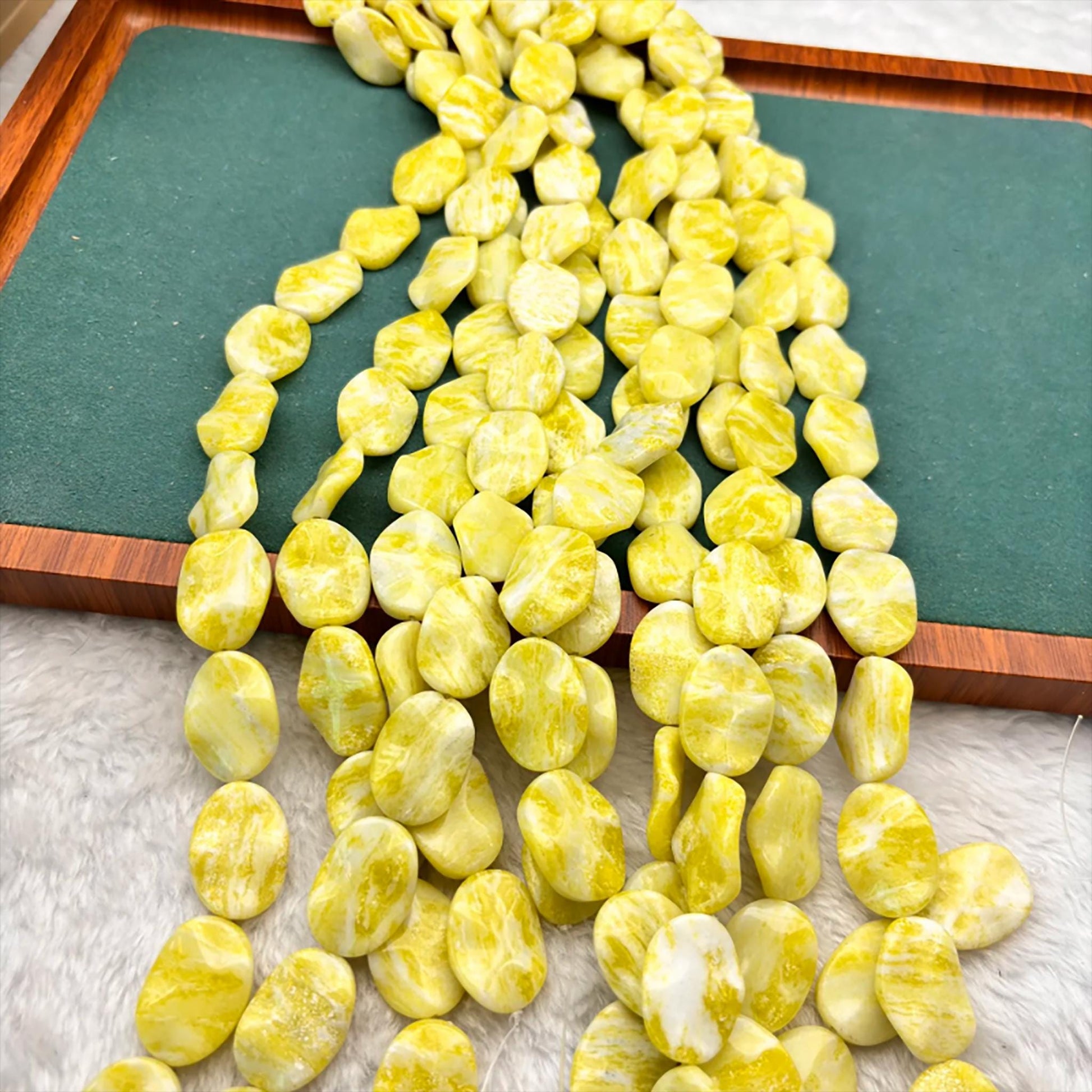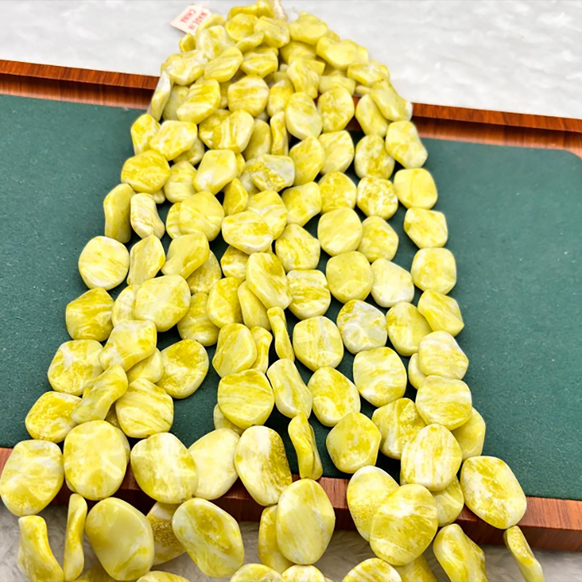 Natürliche Zitronenjade flache Nuggets, gelbe ovale Trommelsteine, polierter Strang für DIY Schmuckherstellung und Boho Ketten Design