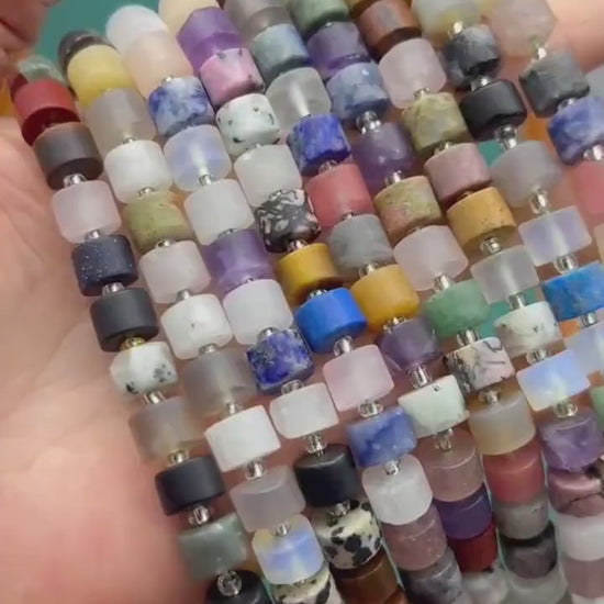 Naturstein Radperlen Mix, polierte Edelstein Zylinder Stränge in Regenbogenfarben, bunt gebohrte DIY Perlen für Schmuckherstellung