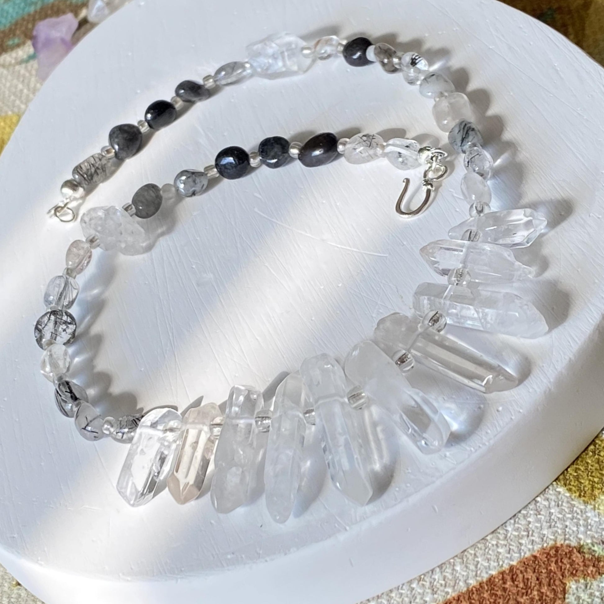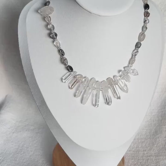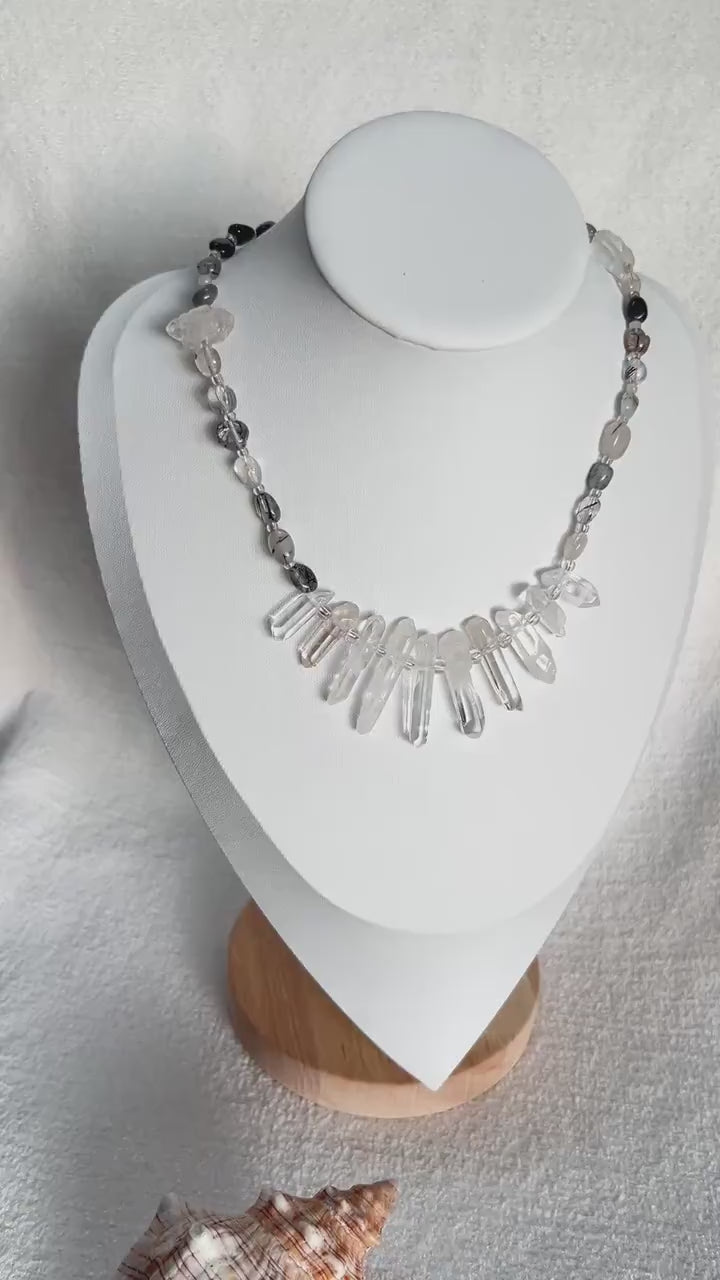 Statement Halskette mit Bergkristall-Spitzen · Boho Crystal Choker aus Quarz & Rutilquarz · 925 Silber Haken · Geschenk für Frauen