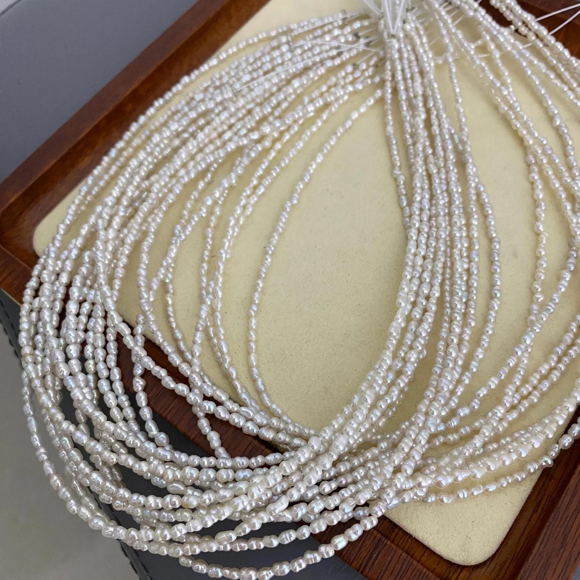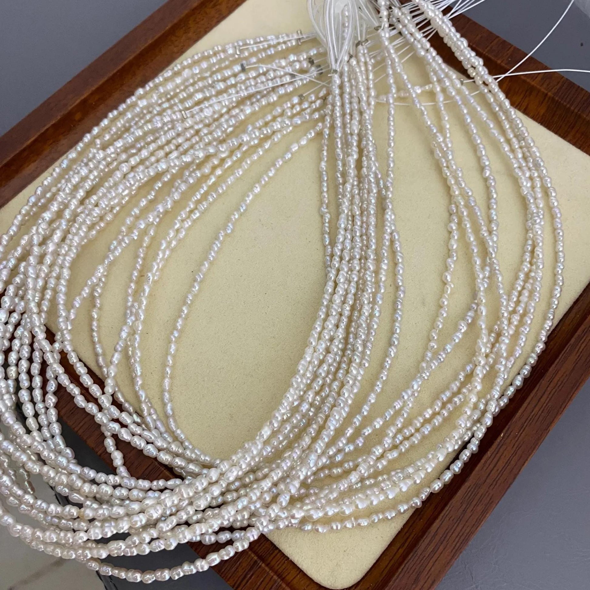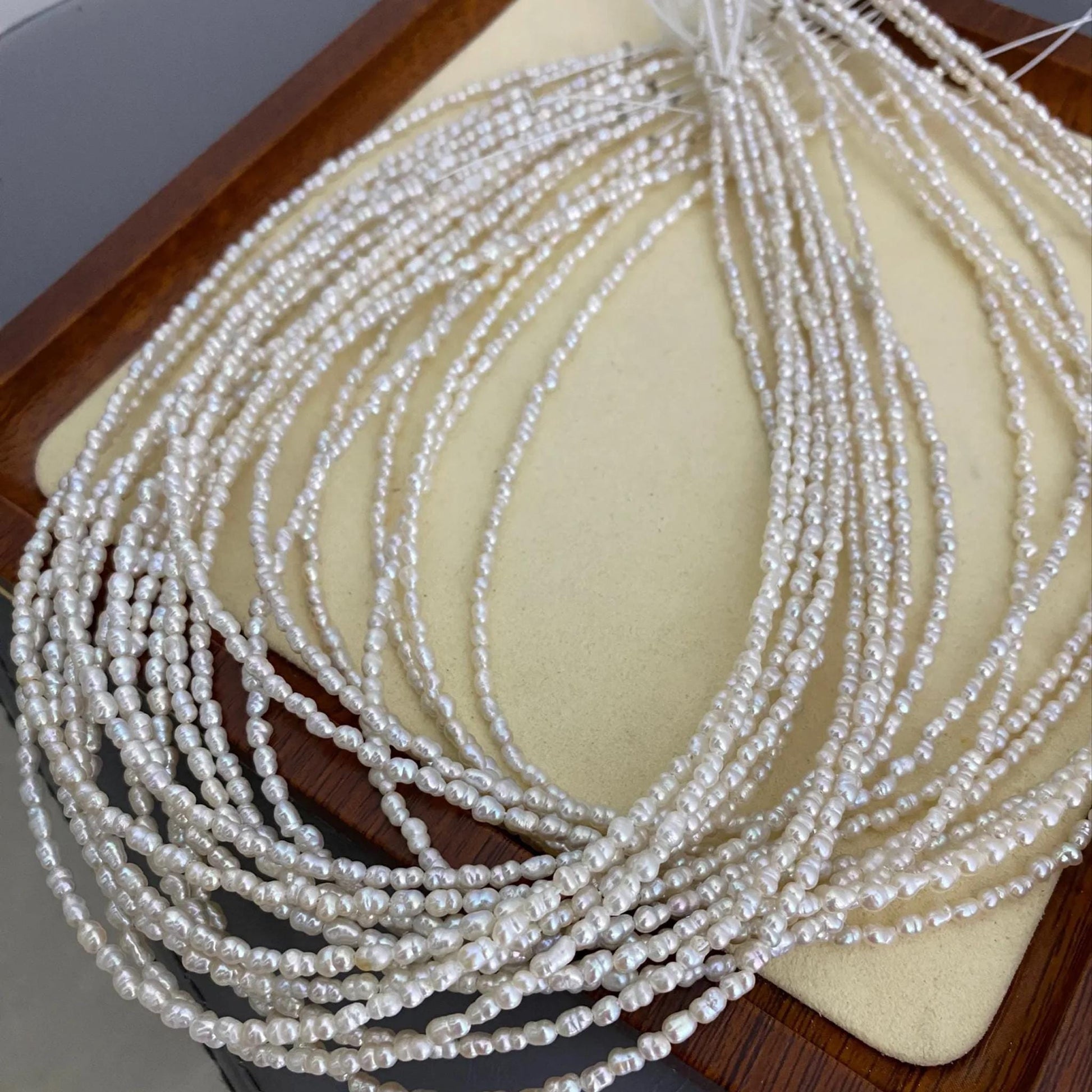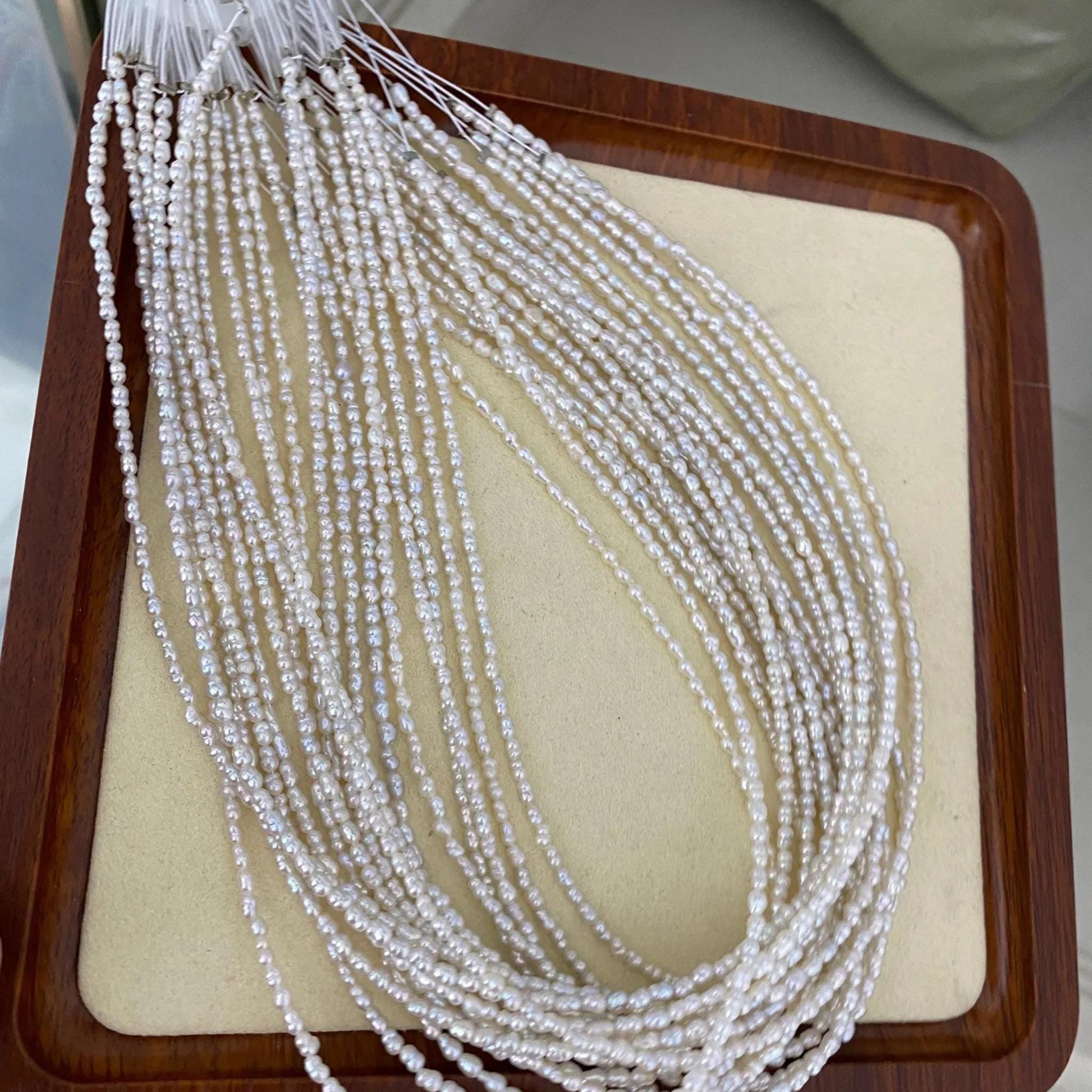 ✨ Entdecken Sie diese feinen Barock-Süßwasserperlen - perfekt für Schmuckdesigner und DIY-Liebhaber. Mit ihrer natürlichen Eleganz, der unregelmäßigen Reisform und dem zarten Glanz verleihen sie jedem Schmuckstück einen einzigartigen Look. Ideal für zarte Ketten, Armbänder, Ohrringe und Hochzeitsaccessoires.