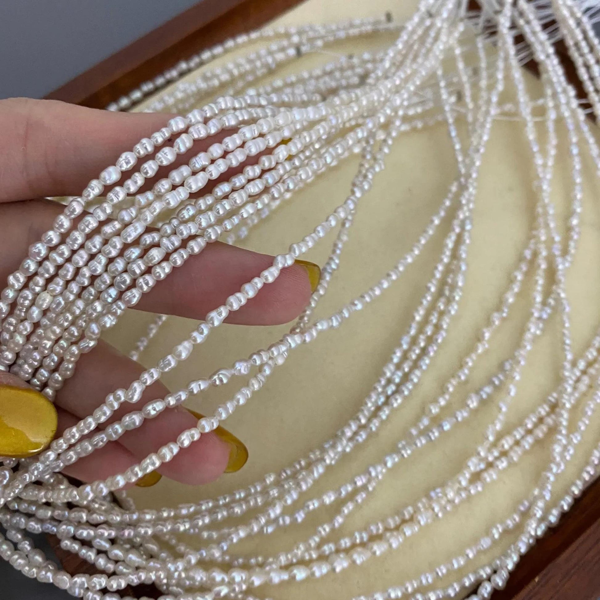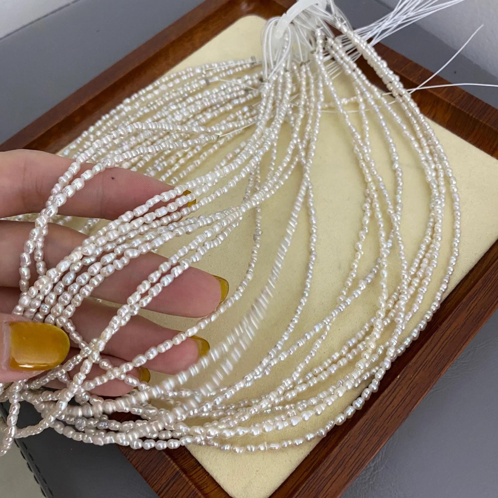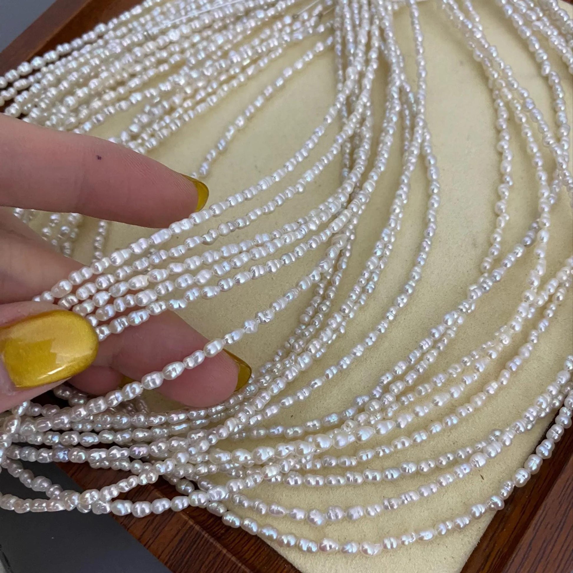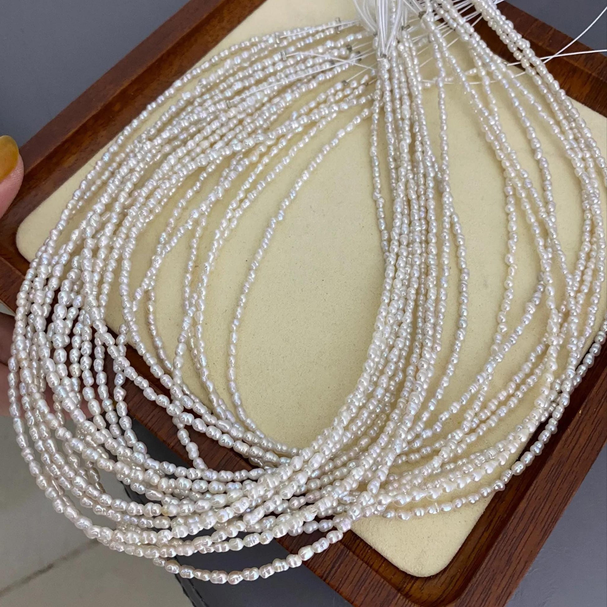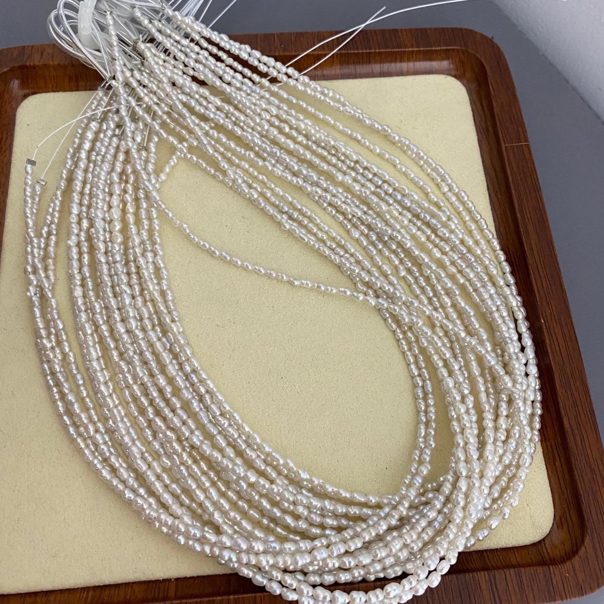 ✨ Entdecken Sie diese feinen Barock-Süßwasserperlen - perfekt für Schmuckdesigner und DIY-Liebhaber. Mit ihrer natürlichen Eleganz, der unregelmäßigen Reisform und dem zarten Glanz verleihen sie jedem Schmuckstück einen einzigartigen Look. Ideal für zarte Ketten, Armbänder, Ohrringe und Hochzeitsaccessoires.