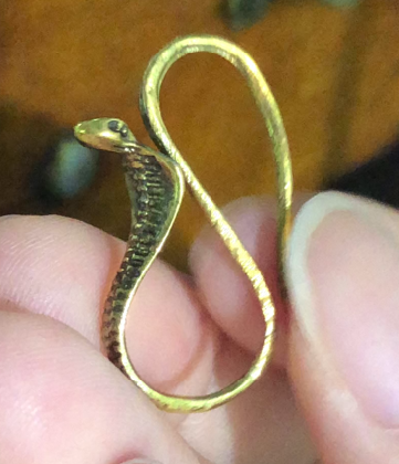 Diese Messingohrringe zeigen eine zusammengerollte Kobra in der Abwehrhaltung, die mit uralter Eleganz und schlangenhafter Anmut dasteht. Inspiriert von heiligen Totems der Wüste, imitiert jede Kurve die fließende Kraft eines Schutzgeistes. Mit ihren strukturierten Schuppen und hypnotischen Augen flüstern sie Geschichten von Transformation, Schutz und ursprünglicher Intuition.