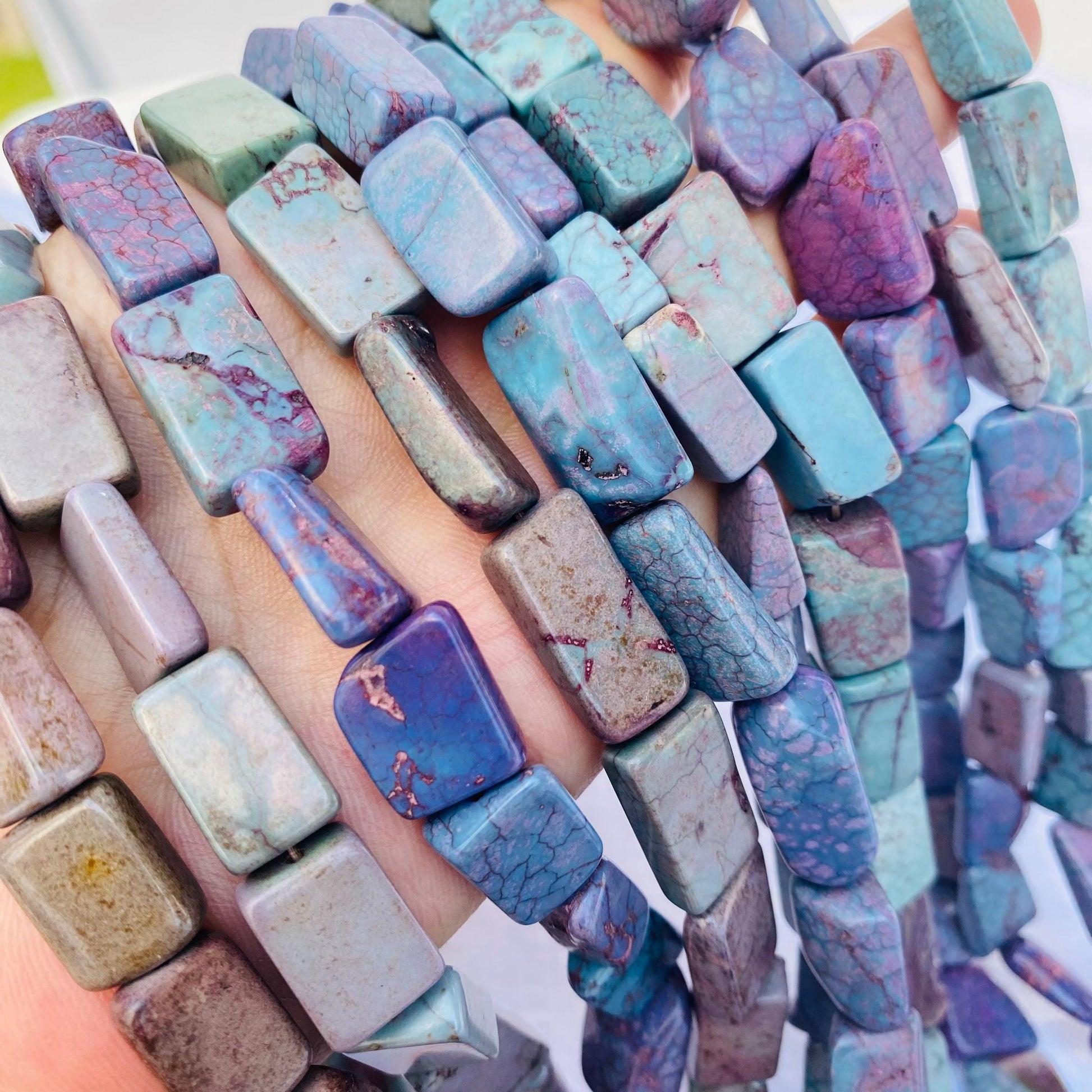 DIY Schmuckperlen, violette Howlith Rechteck-Perlen mit einzigartiger Maserung - perfekt für Boho-Designs, Chakra-Armbänder und handgemachte Halsketten. ✨