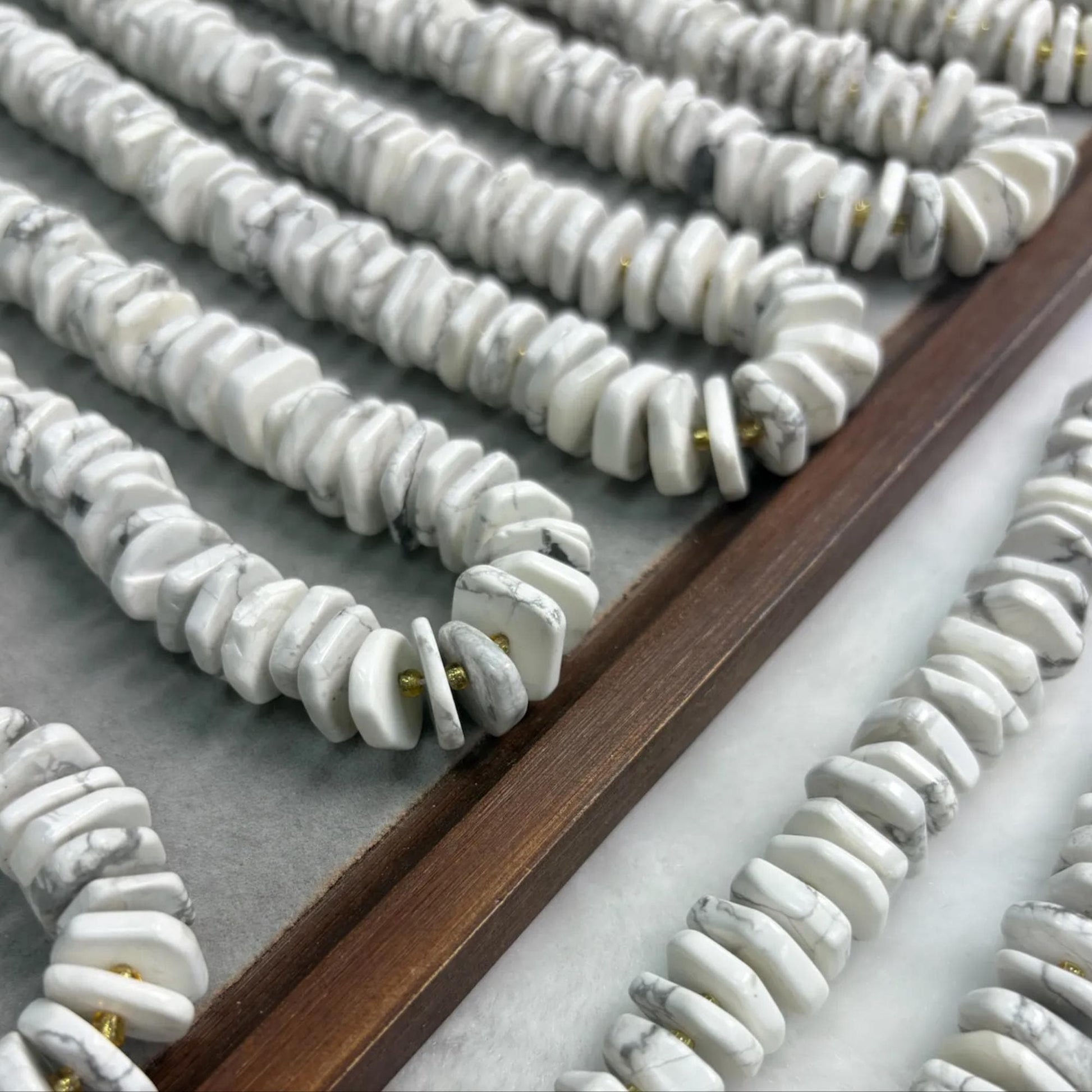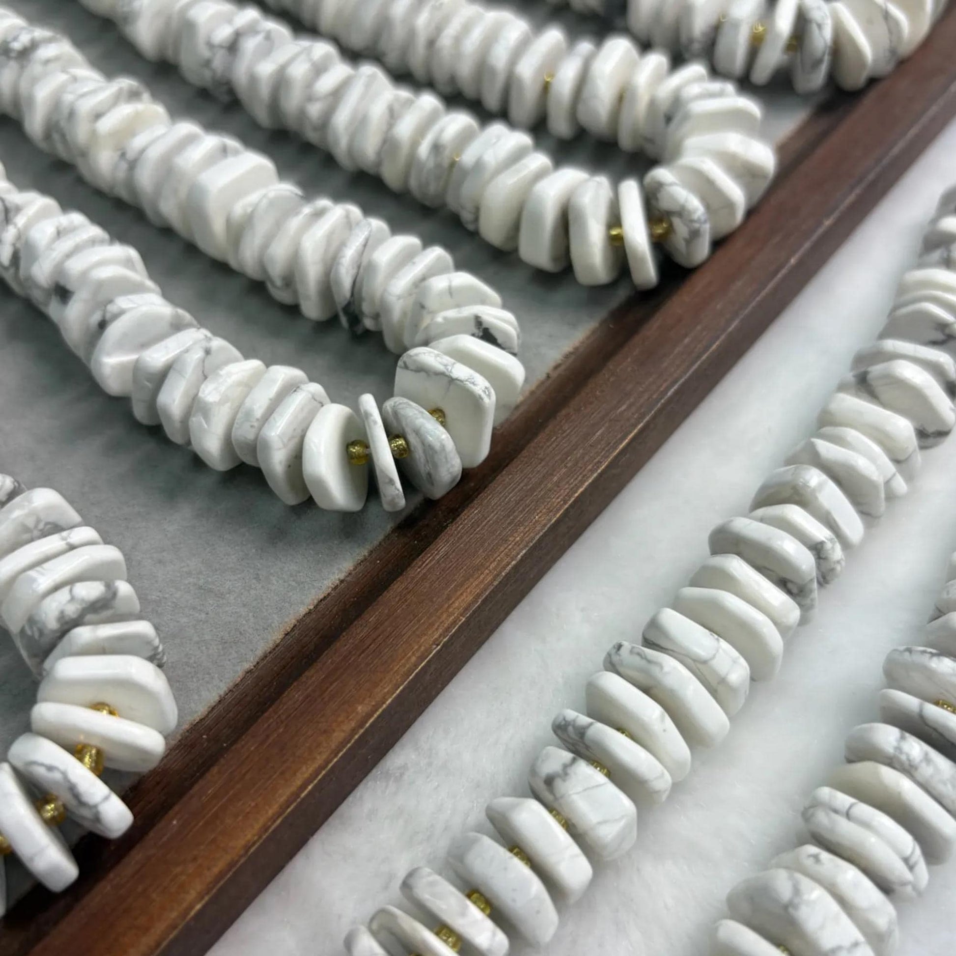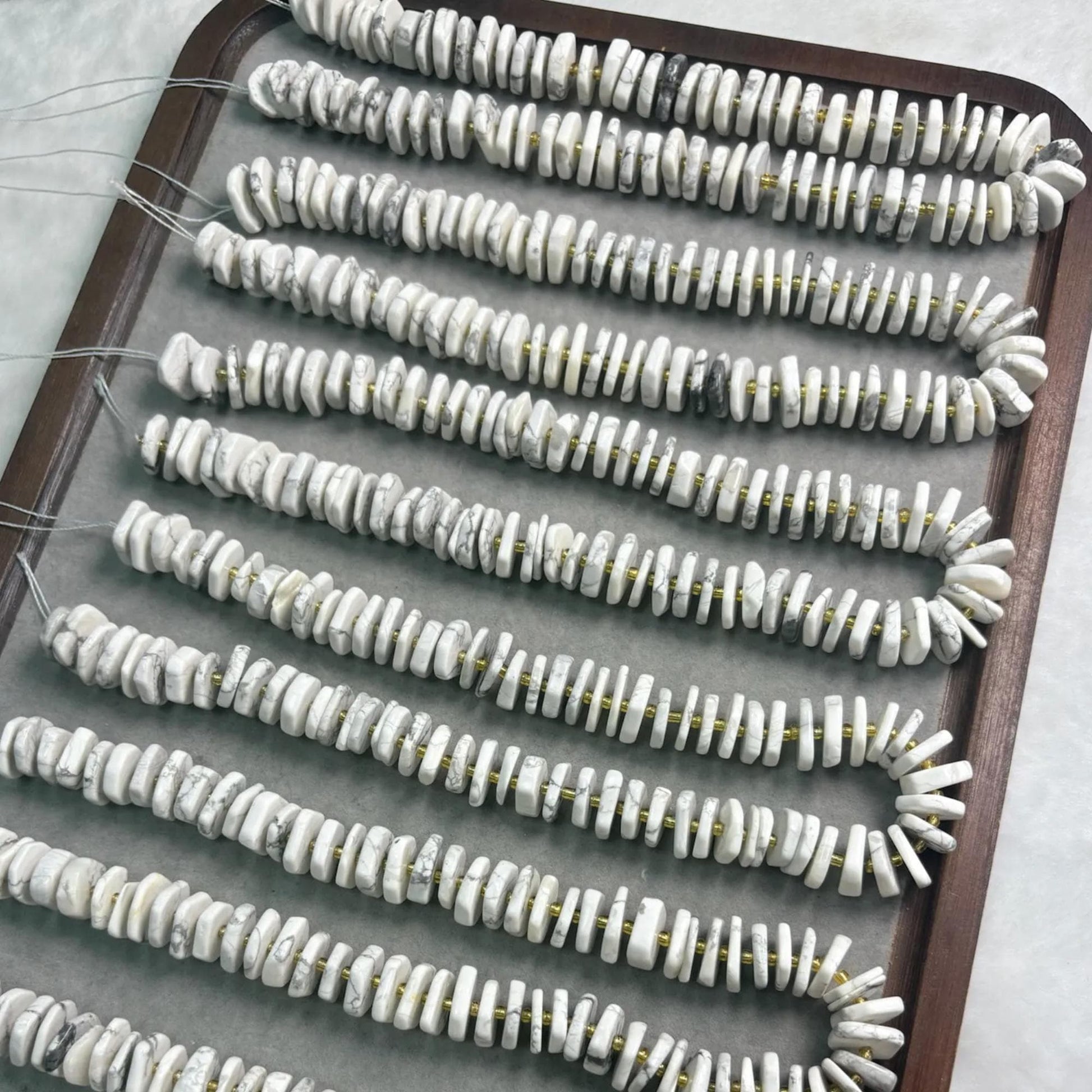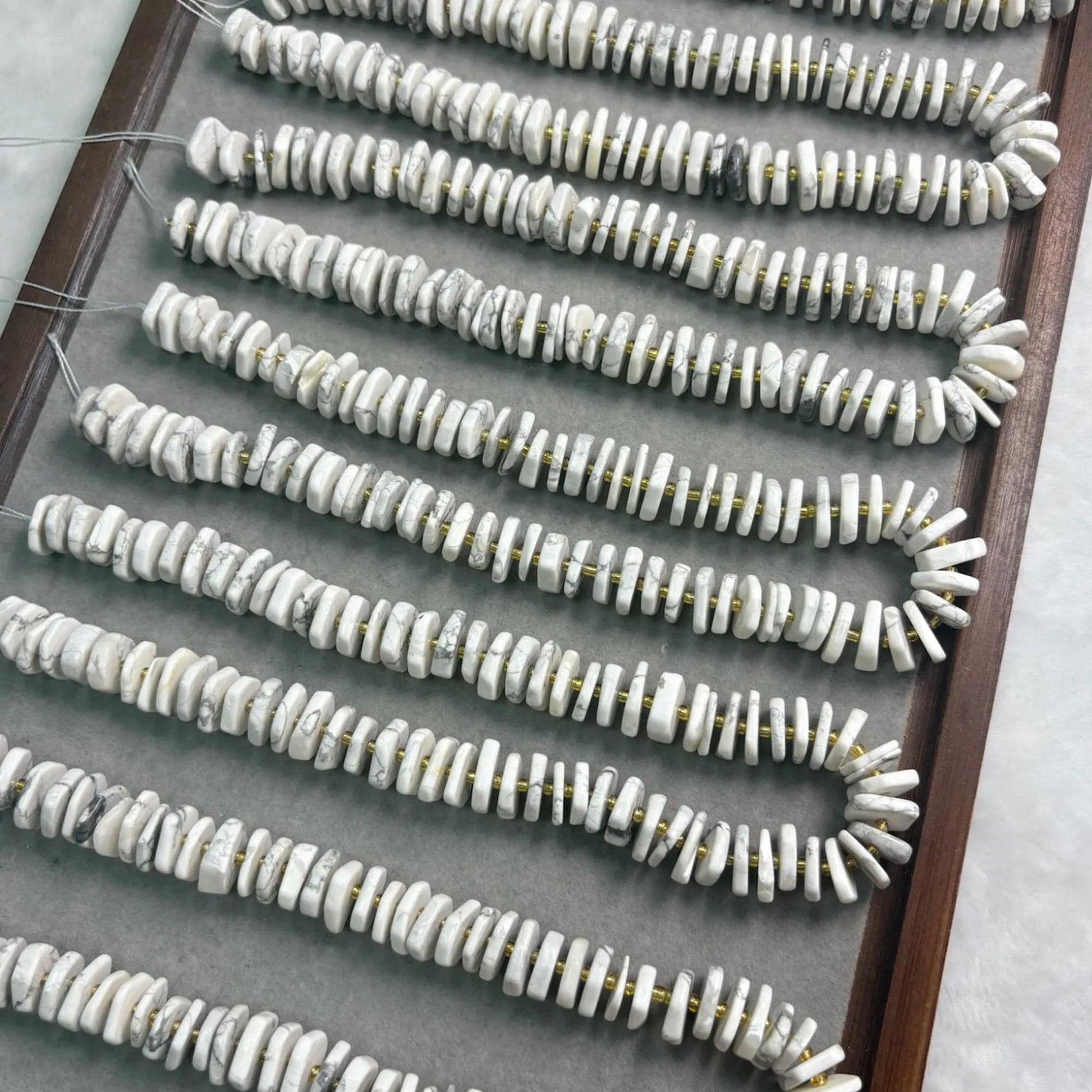 Weiße Naturstein Perlen für DIY Schmuckherstellung, flache Howlith Scheiben für Boho Armbänder, Halsketten und Heilstein Projekte