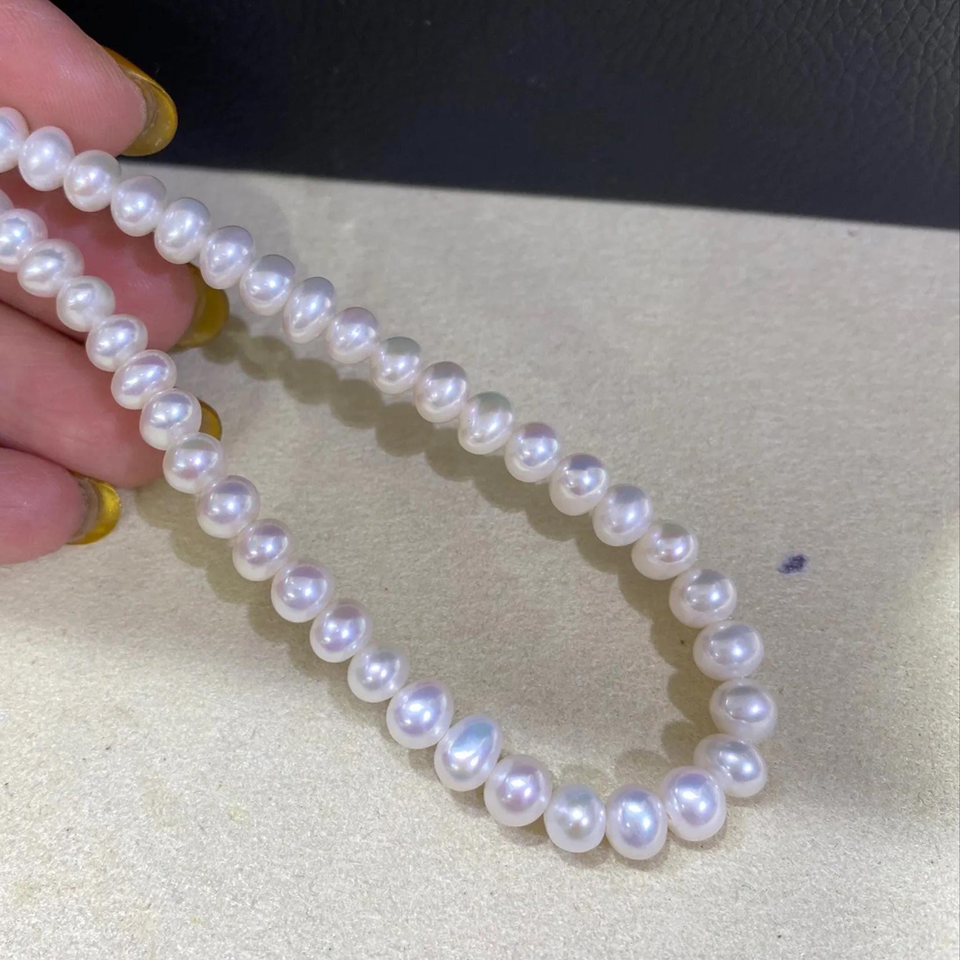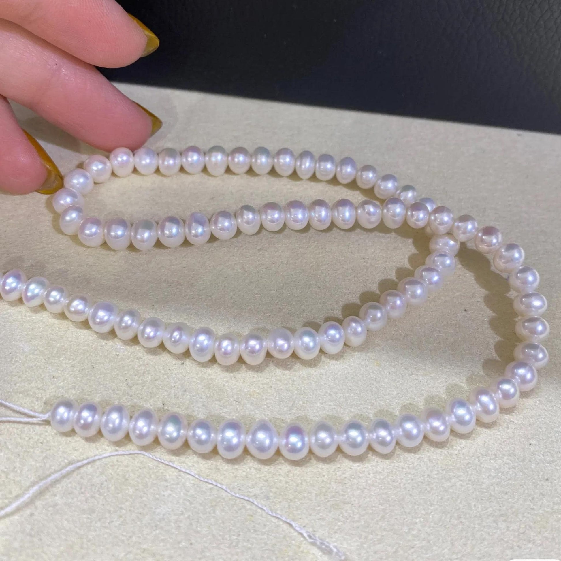 Dieser einzigartige Strang besteht aus handverlesenen, rundlichen Süßwasserperlen mit natürlichem Glanz - ideal für kreative Schmuckprojekte 💫
