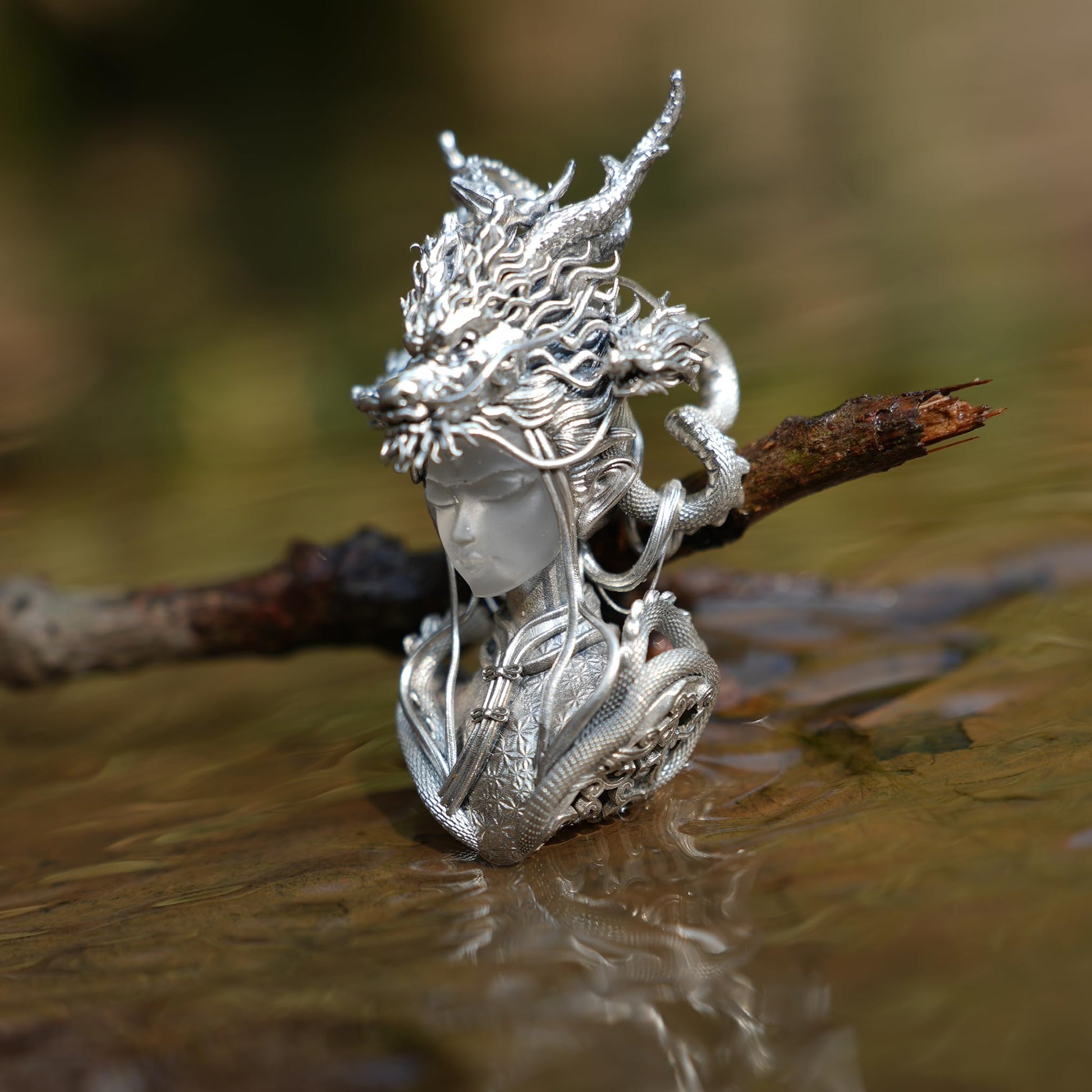 Forged in pure 925 sterling silver, this pendant merges Eastern mythology with modern craftsmanship, creating a wearable sculpture that radiates both majesty and serenity.