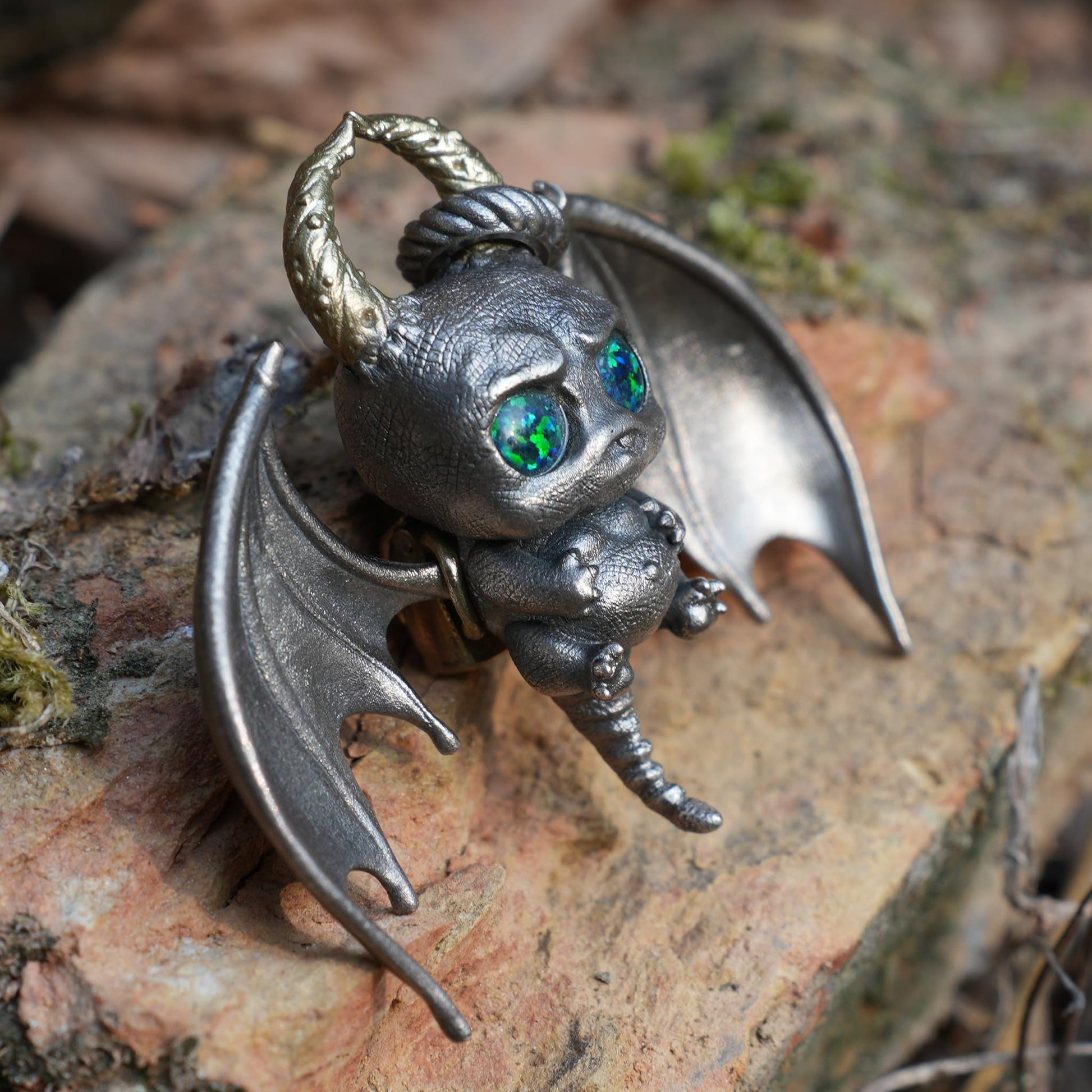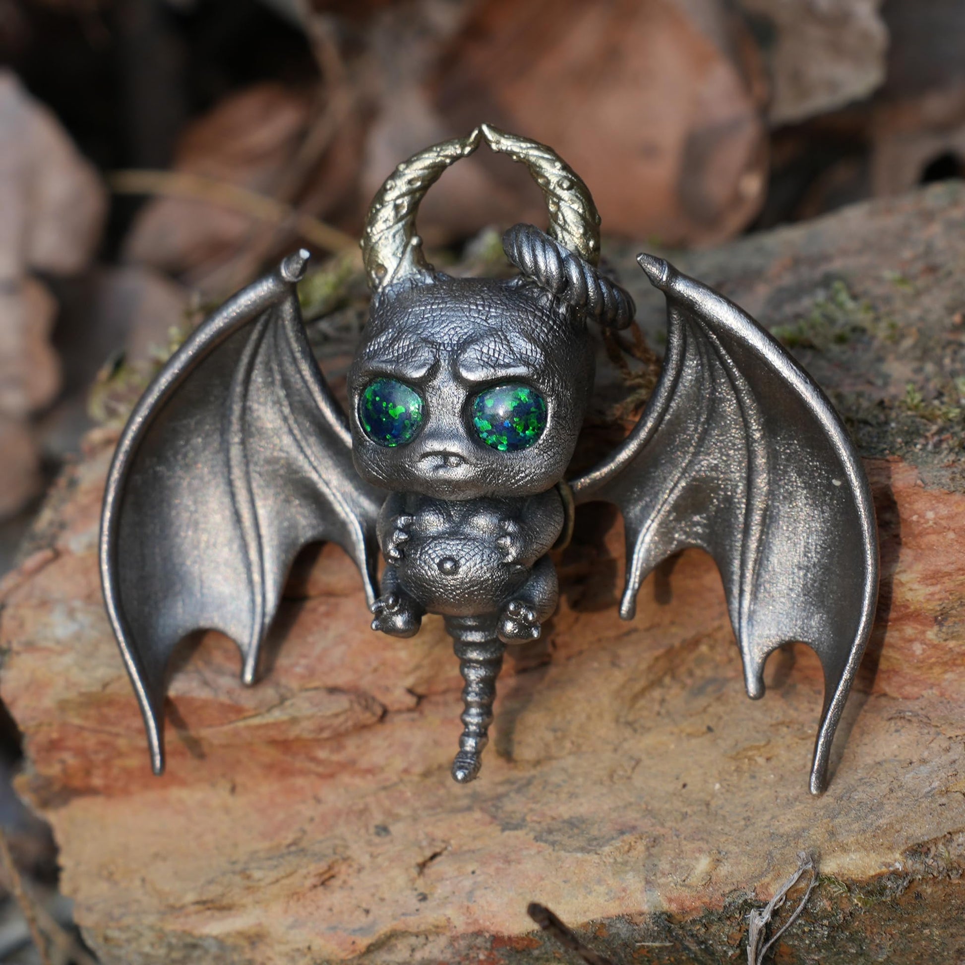 925 Silver Bat Pendant with Opal | Handmade Gothic Necklace | Fantasy Jewelry Gift for Halloween & Dark Art Lovers