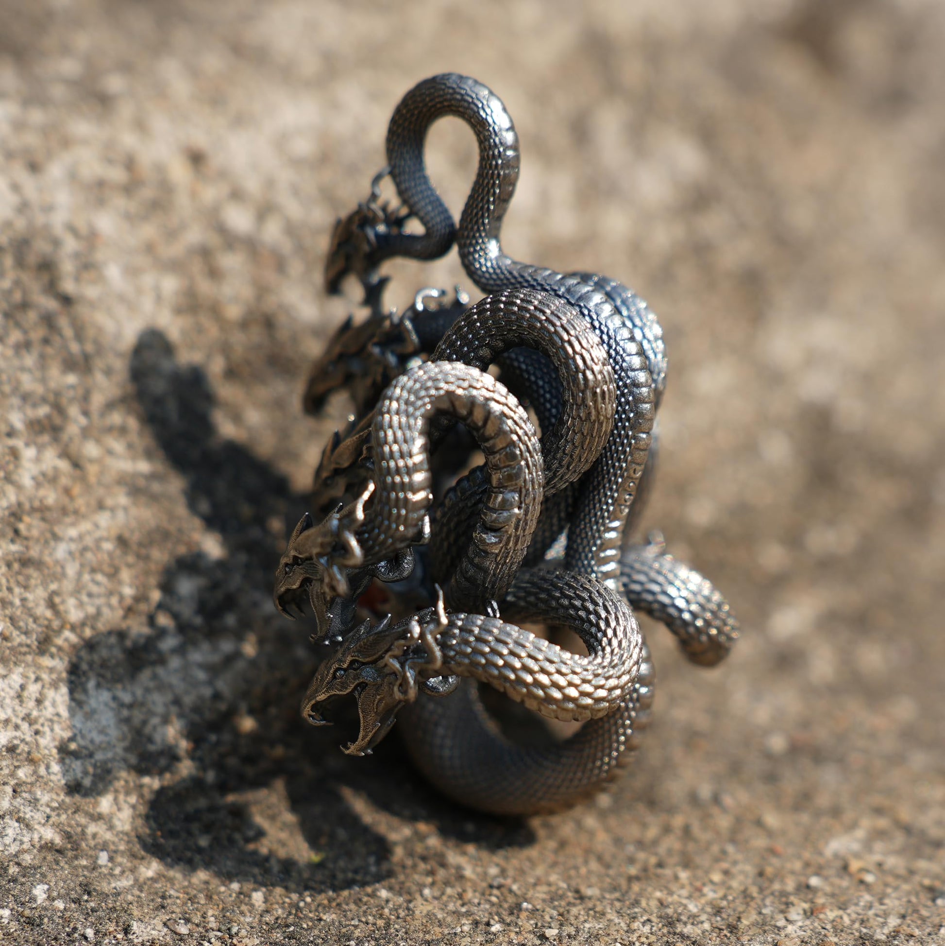 Eight-Headed Serpent Pendant | Handmade 925 Silver Mythical Jewelry | Yamata no Orochi Amulet with Golden Quartz | Japanese Power Symbol