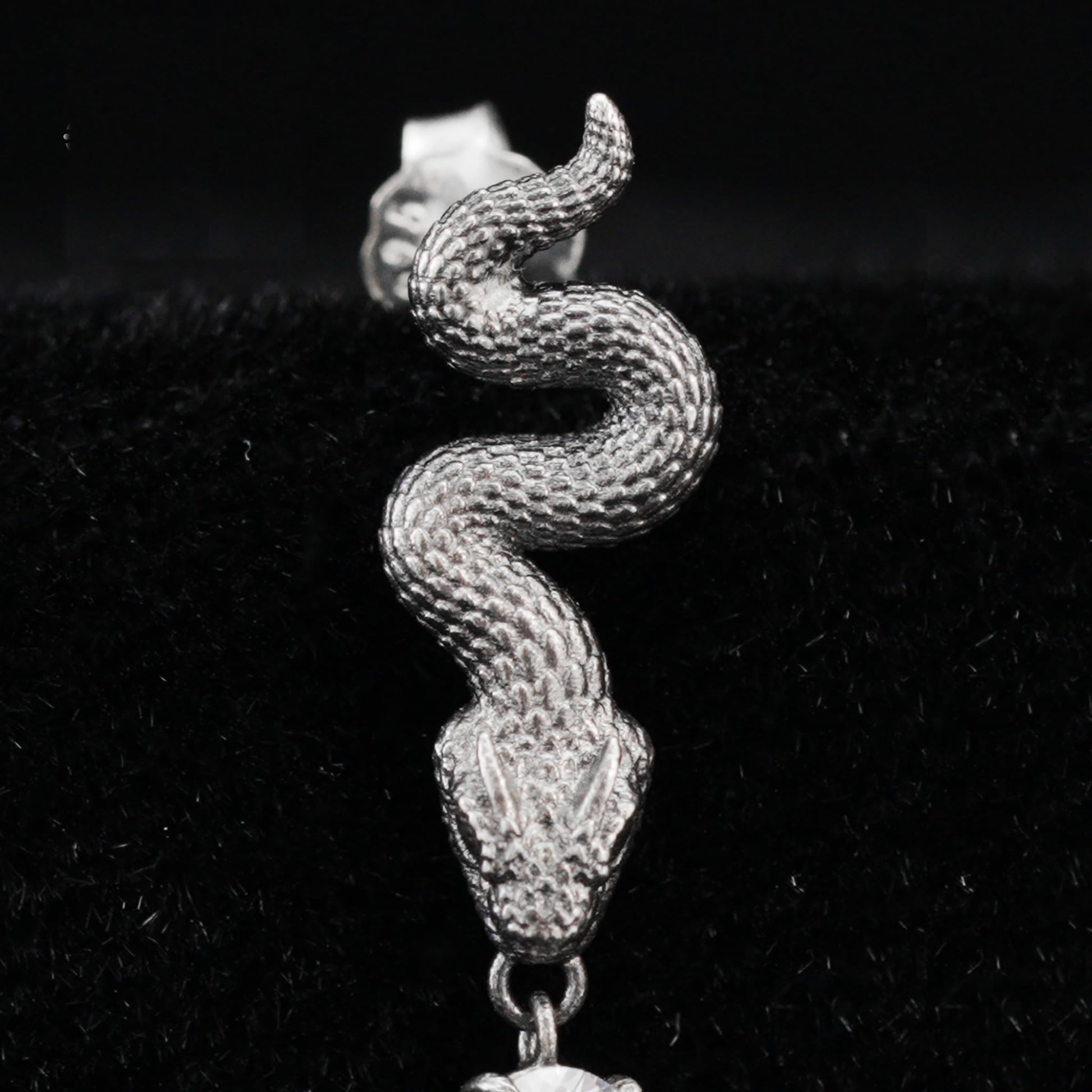 The silver serpent—symbol of protection, transformation, and ancient wisdom—wraps gracefully along the ear,