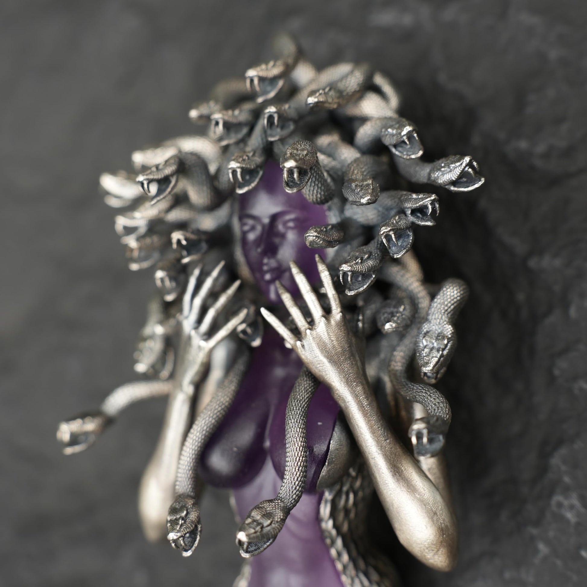 Amethyst Snake Pendant in 925 Silver | Handmade Gothic Sculpture Necklace | Mystical Art Jewelry Gift for Her