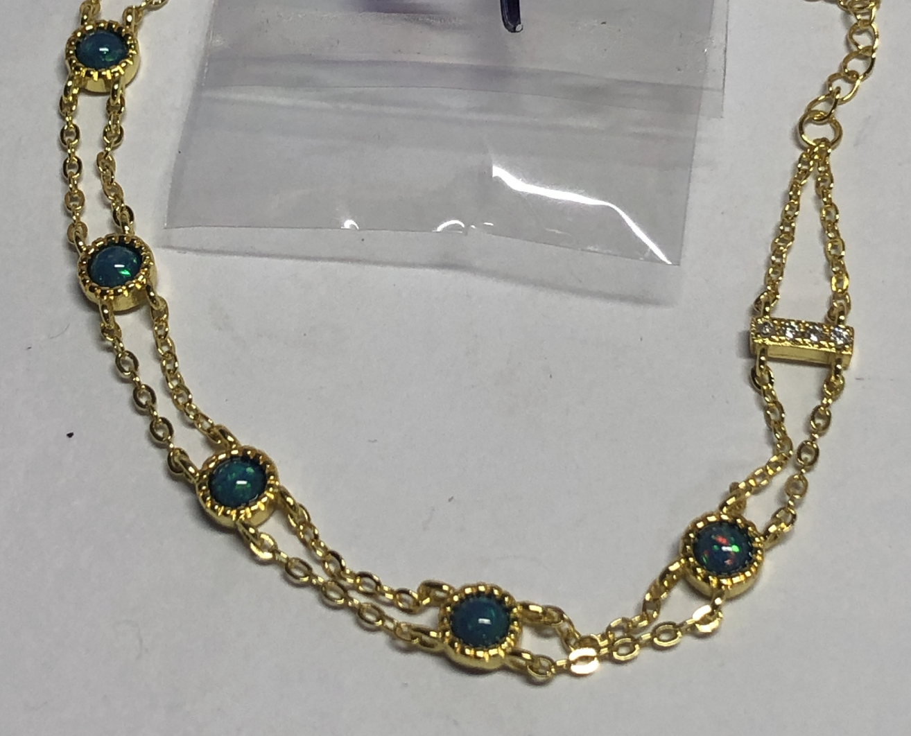 Inspired by the glow of the aurora, this double chain bracelet features five luminous blue-green gems that shimmer like starlight. The layered design adds depth and movement, while the adjustable length ensures a comfortable fit for everyday elegance. A perfect piece for emotional healing, self-expression, or simply adding a magical touch to your look.