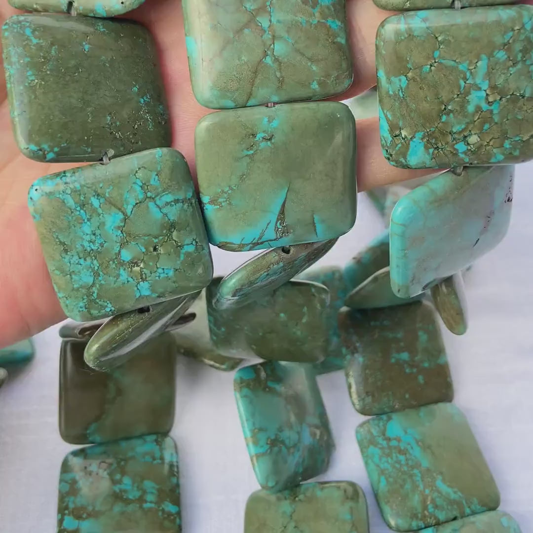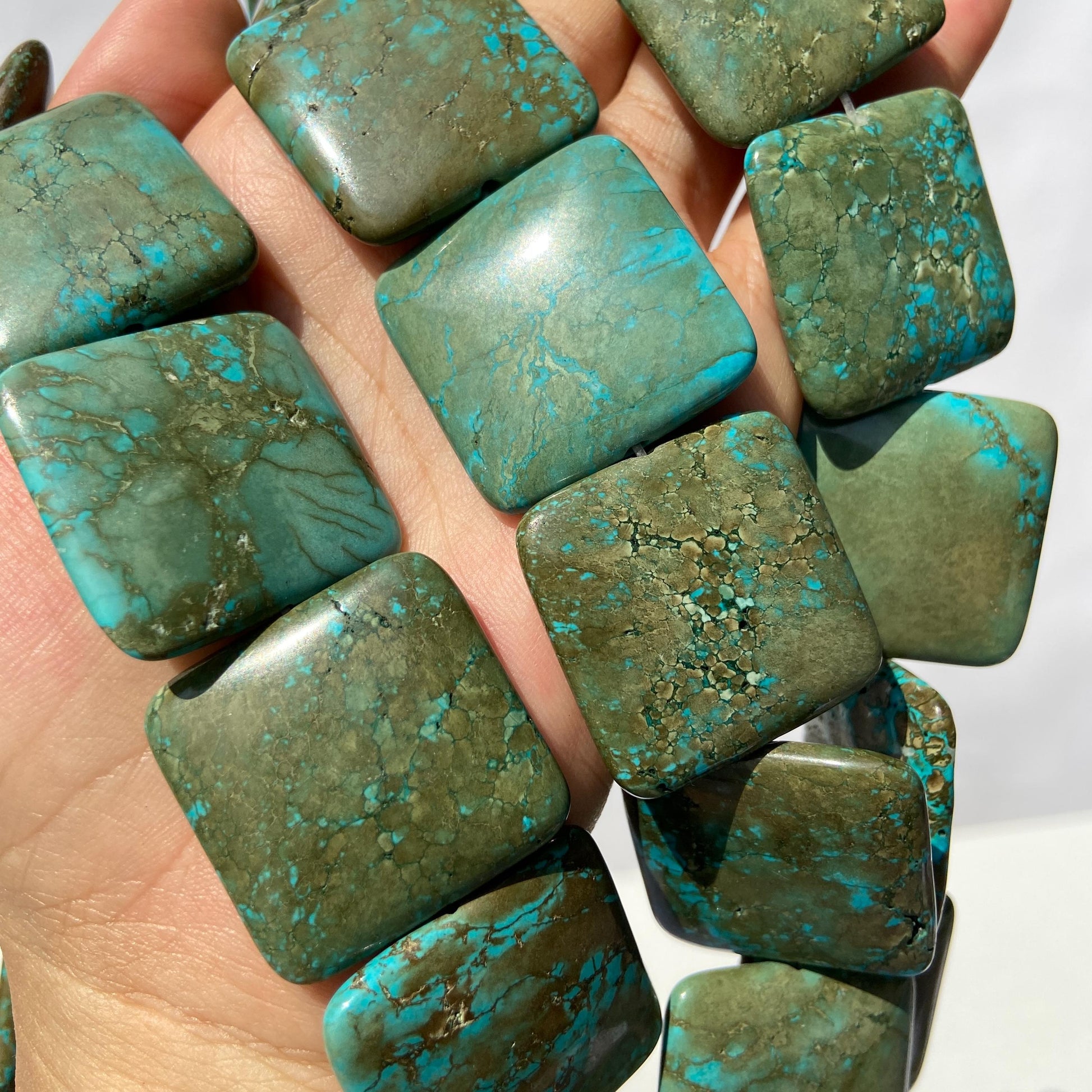 ✨ Entdecke unsere einzigartigen rekonstruierten Türkisperlen - perfekt für DIY-Projekte mit natürlichem Look und Boho-Vibes. Diese flachen, quadratischen Steine sind ideal für auffällige Schmuckdesigns, energetische Accessoires oder handgemachte Geschenke 🎁
