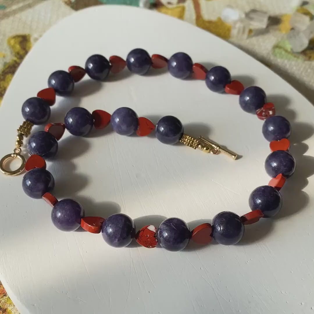💎 Materialien: Sodalith Perlen (10 mm), rote Jaspis-Herzen (7 mm)