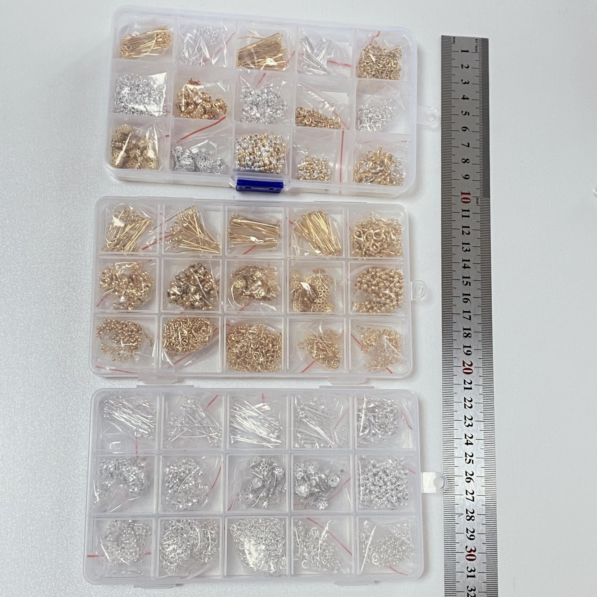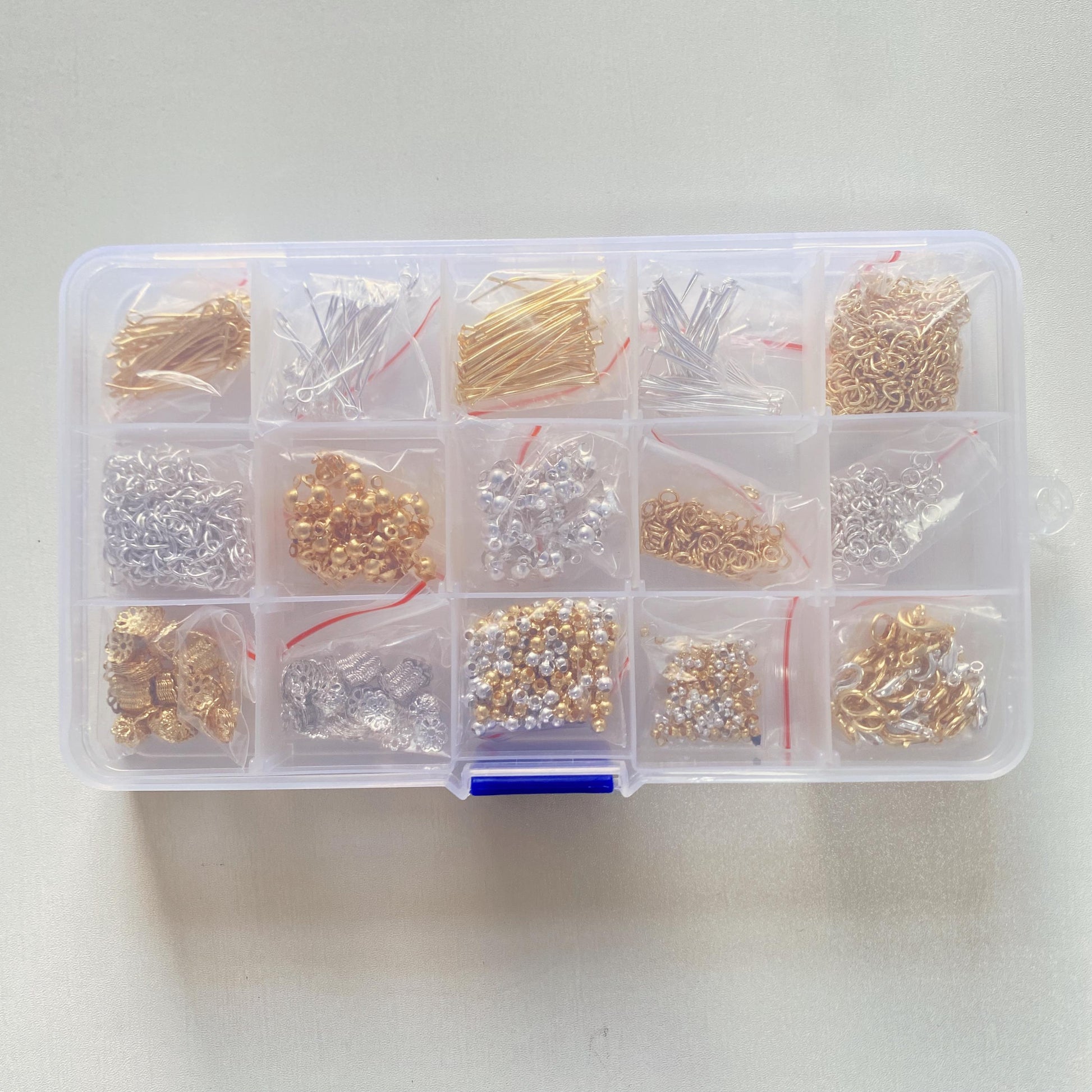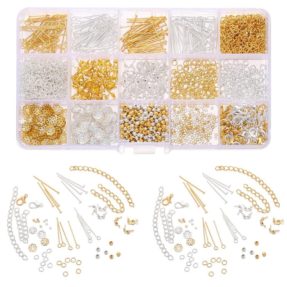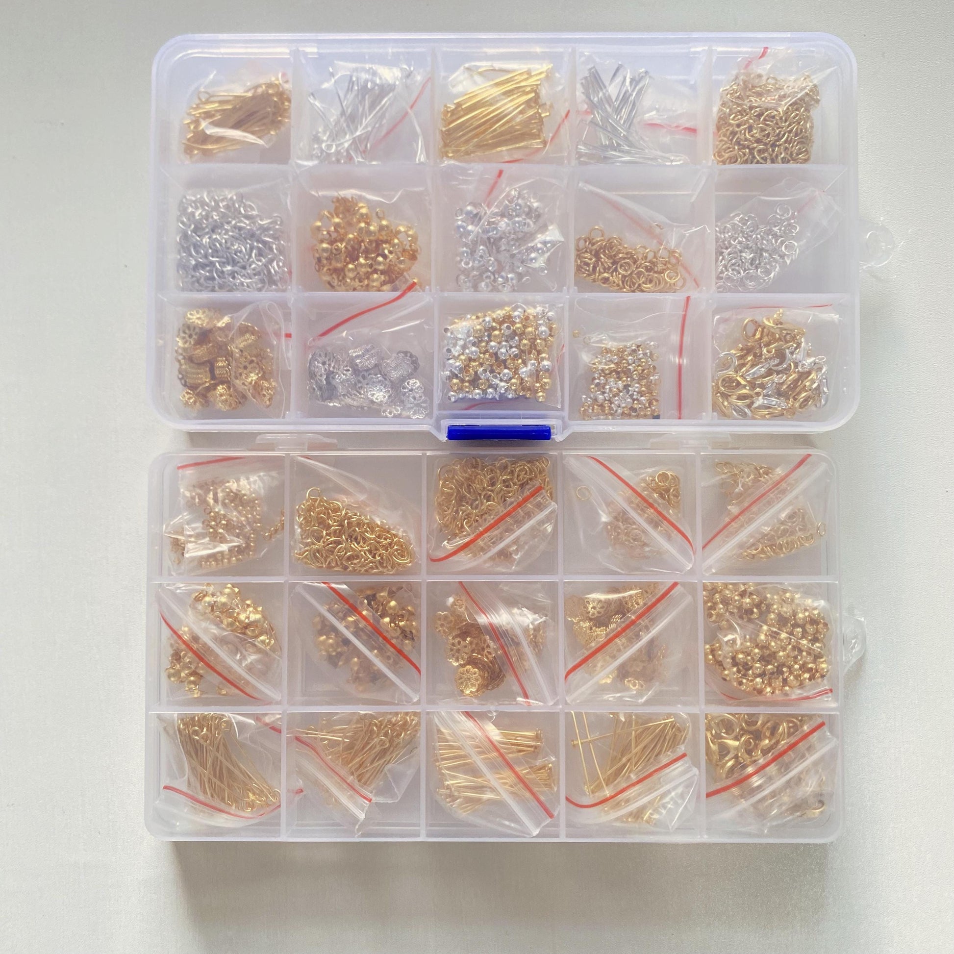 Dieses DIY Schmuck Bastelset mit 15 Fächern enthält eine umfangreiche Auswahl an Schmuckteilen in Gold- oder Silberfarbe. Perfekt für Anfänger und erfahrene Schmuckdesigner - geeignet für Armbänder, Halsketten, Ohrringe oder Reparaturen.