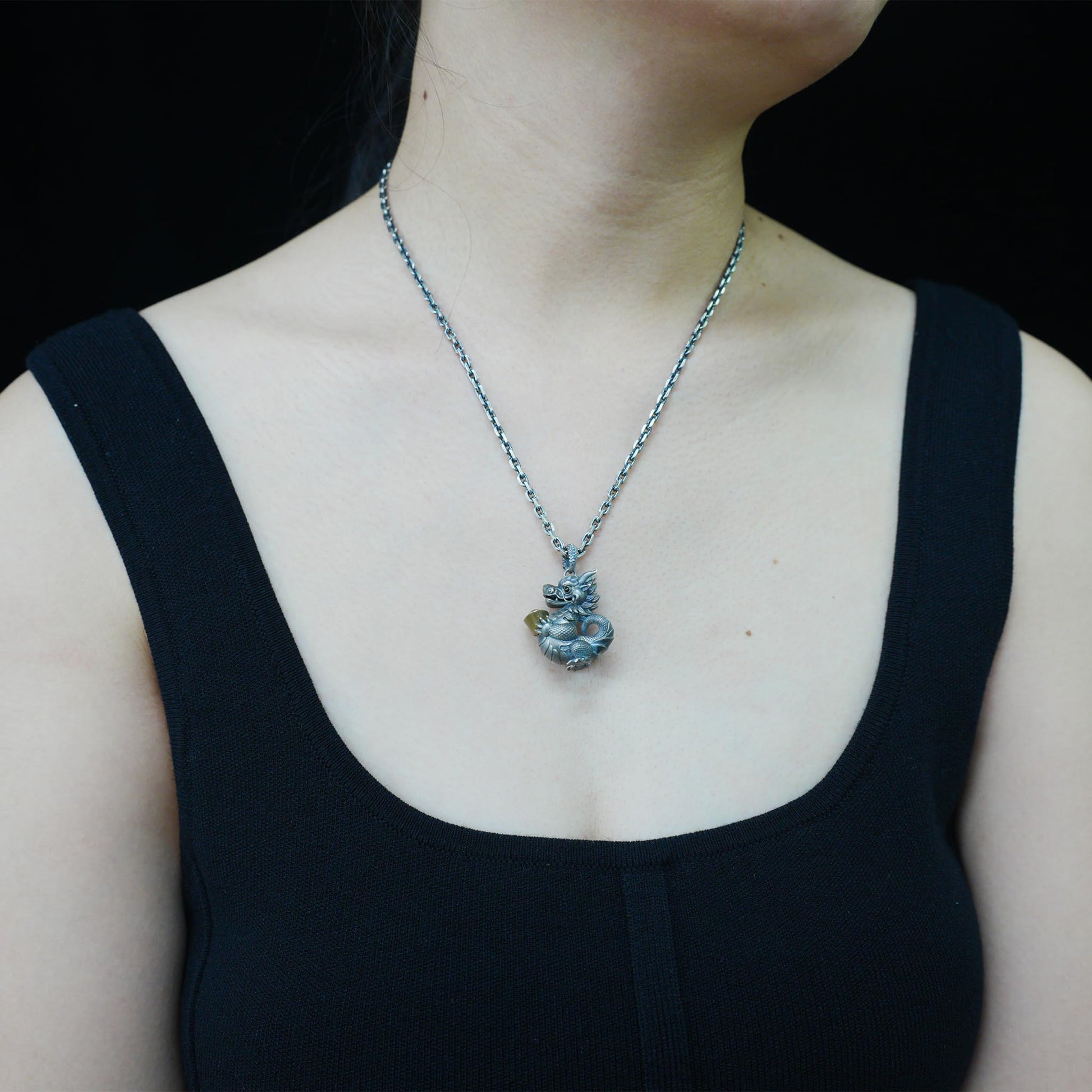 Lucky Dragon Pendant in 925 Silver & Brass | Handcrafted Feng Shui Amulet for Wealth, Protection & Good Fortune | Oriental Charm Jewelry