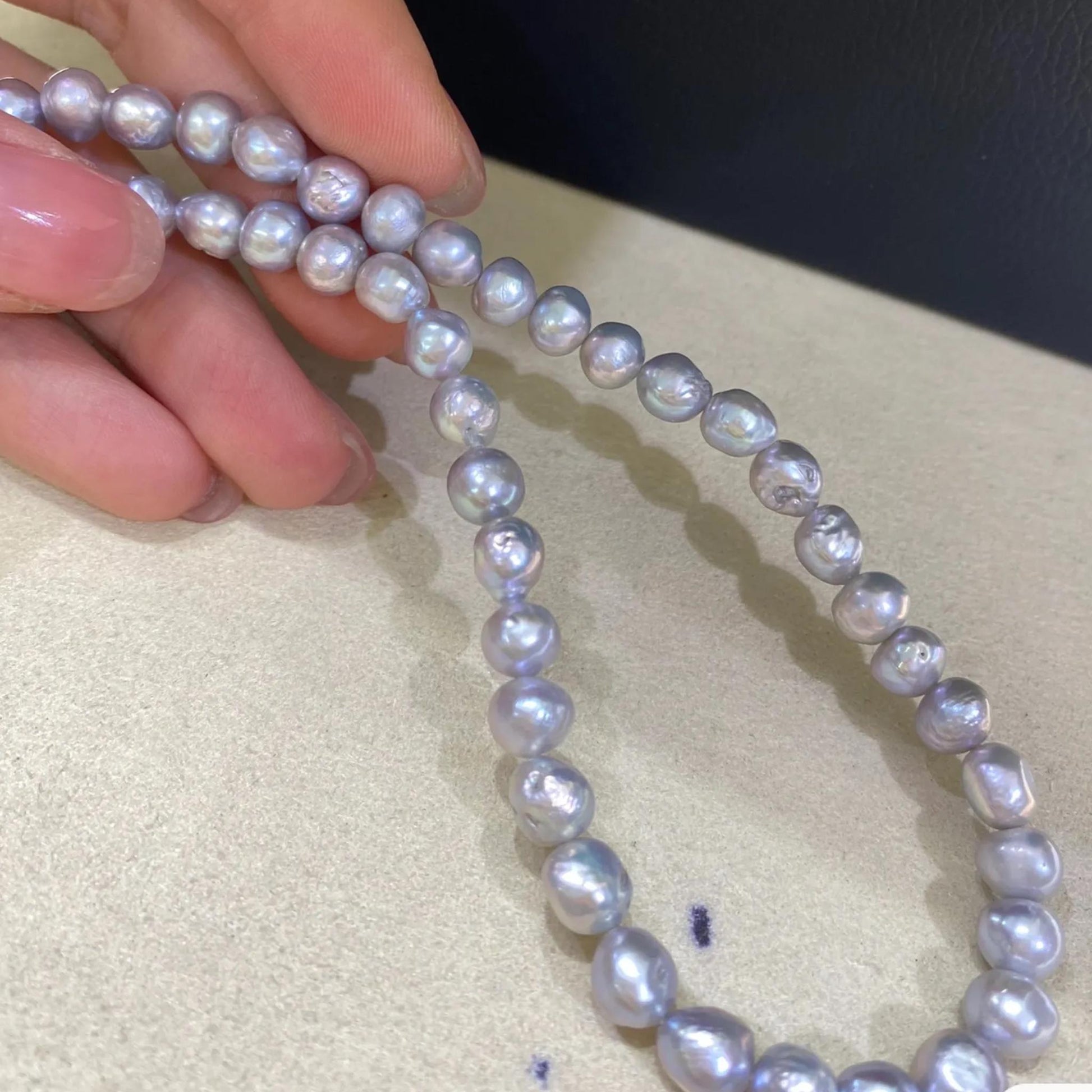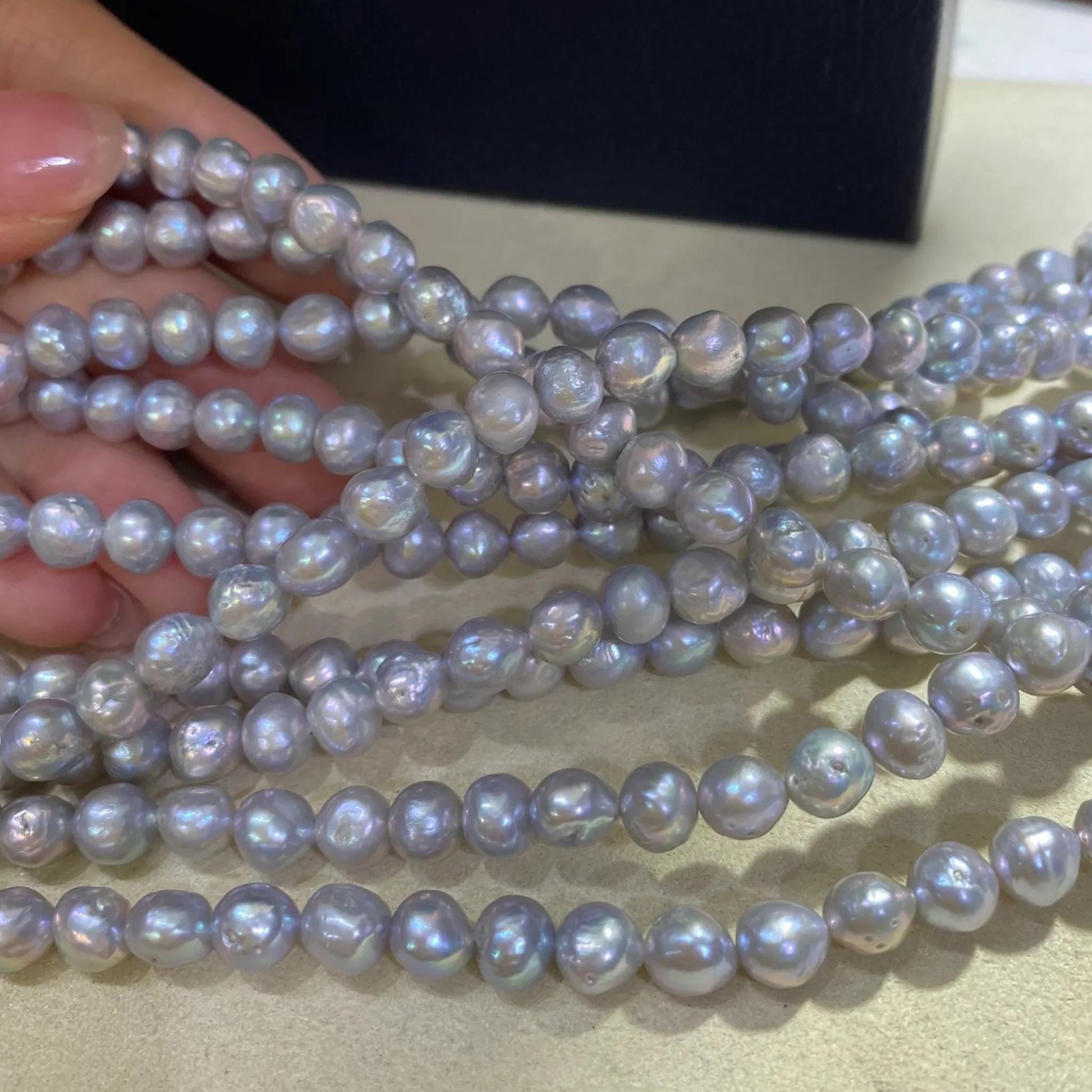 Elektroplattierte graue Süßwasserperlen Barock Stil für DIY Schmuck, unregelmäßige Nuggets für Armband Kette Bastelbedarf 38cm Strang