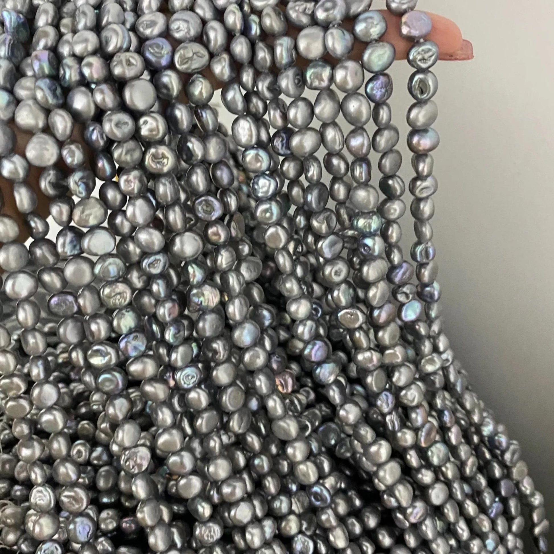 Diese gefärbten barocken Süßwasserperlen in einem metallisch schimmernden Grau-Blau eignen sich perfekt für die individuelle Schmuckherstellung 💙. Die unregelmäßige Form verleiht jedem Projekt einen künstlerischen und natürlichen Look - ideal für Statement-Schmuck, Boho-Stil oder moderne Designs.