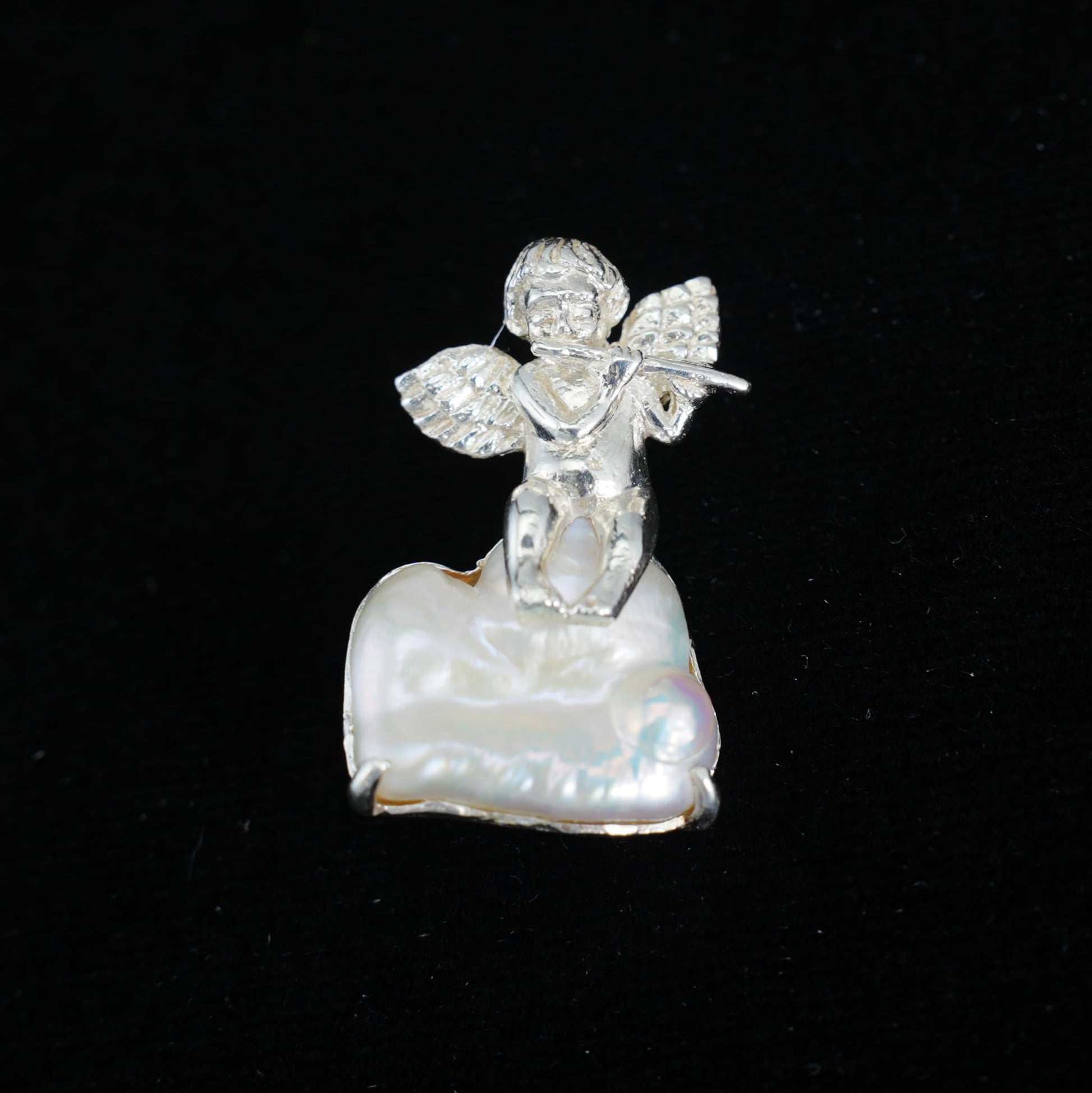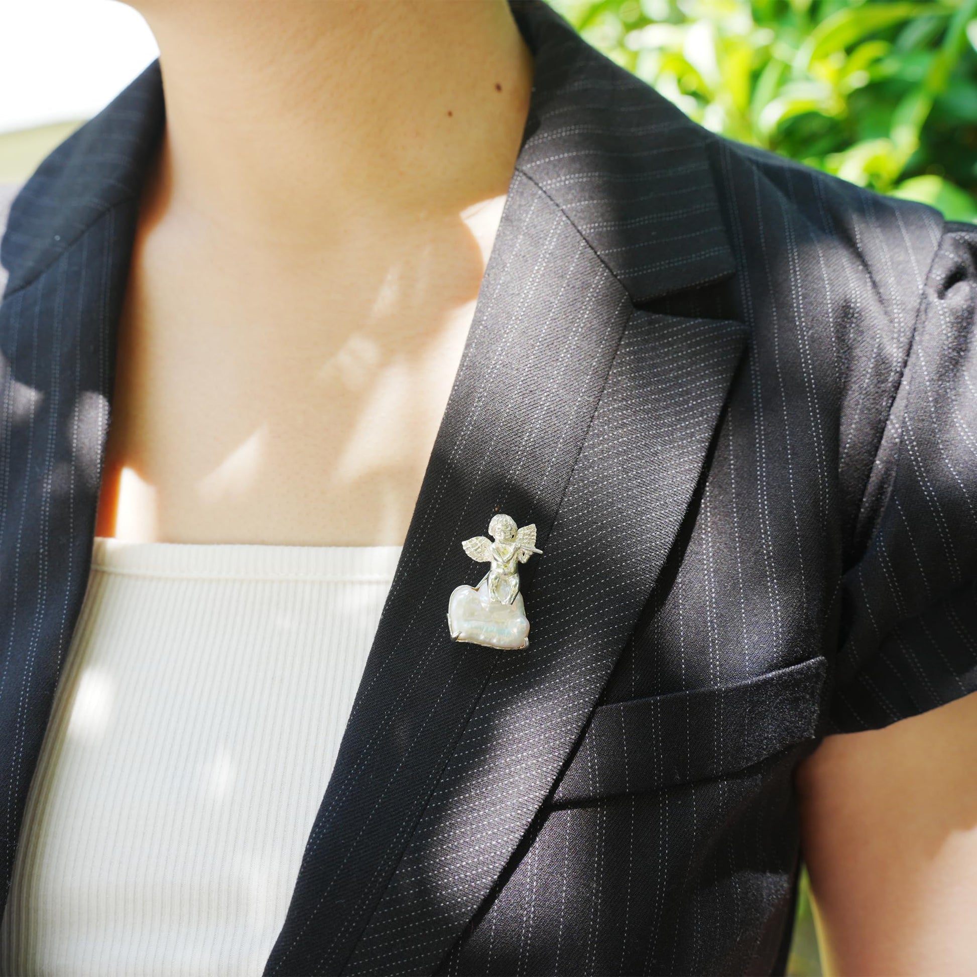 Generisch 925 Sterling Silber Schmuckstück mit Barockperle – Engel-Design, tragbar als Anhänger oder Ansteckschmuck für Damen