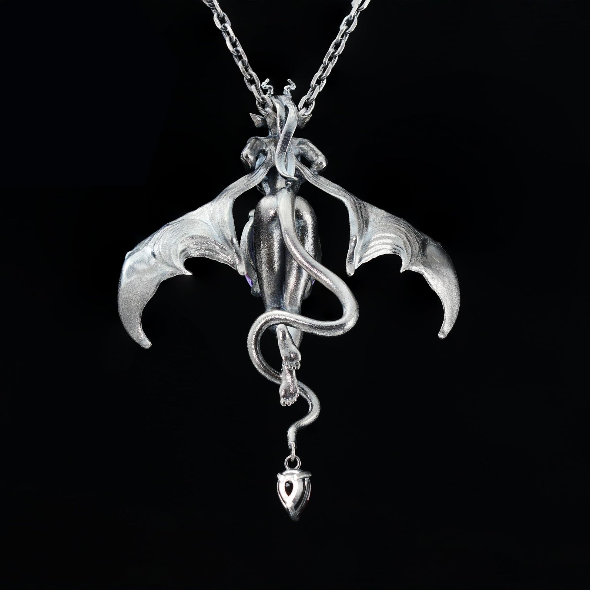 Handcrafted Silver Demon Wing Pendant Necklace | Mystical Banshee Jewelry Symbolizing Strength, Power & Mystery | Unique Gift for Her