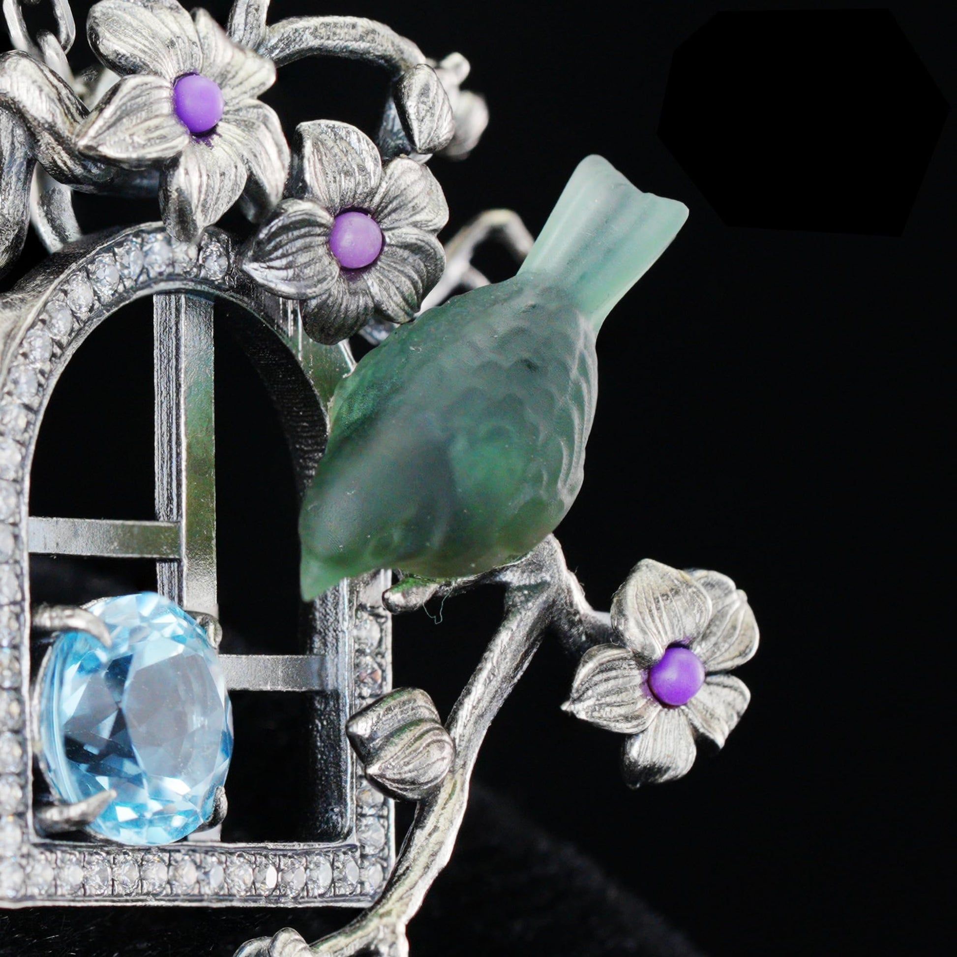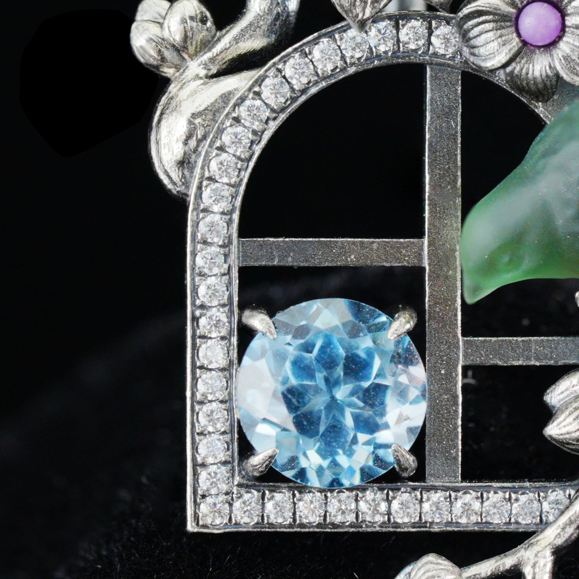 Material: 925 silver + natural topaz + green crystal + zircon + enamel