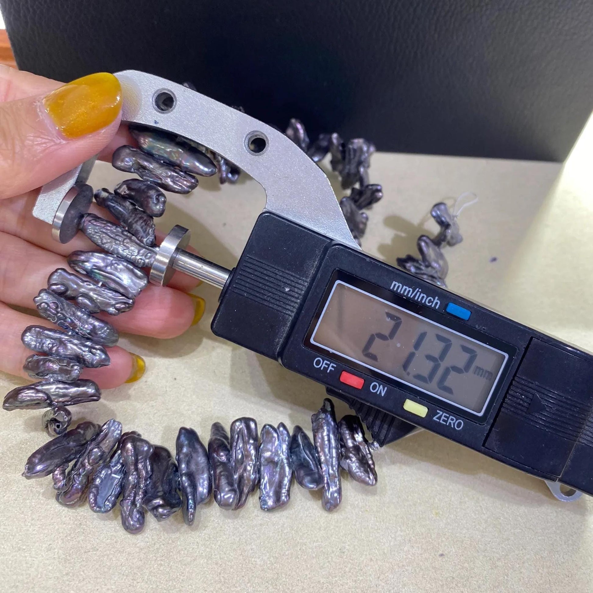 Große barocke Süßwasser-Stabperlen in blau-grauer Metallic-Optik - ideal für kreative Schmuckprojekte mit organischem und auffälligem Stil. Die unregelmäßigen Formen und der schimmernde Glanz machen diese Perlen zu echten Hinguckern in handgefertigten Designs.