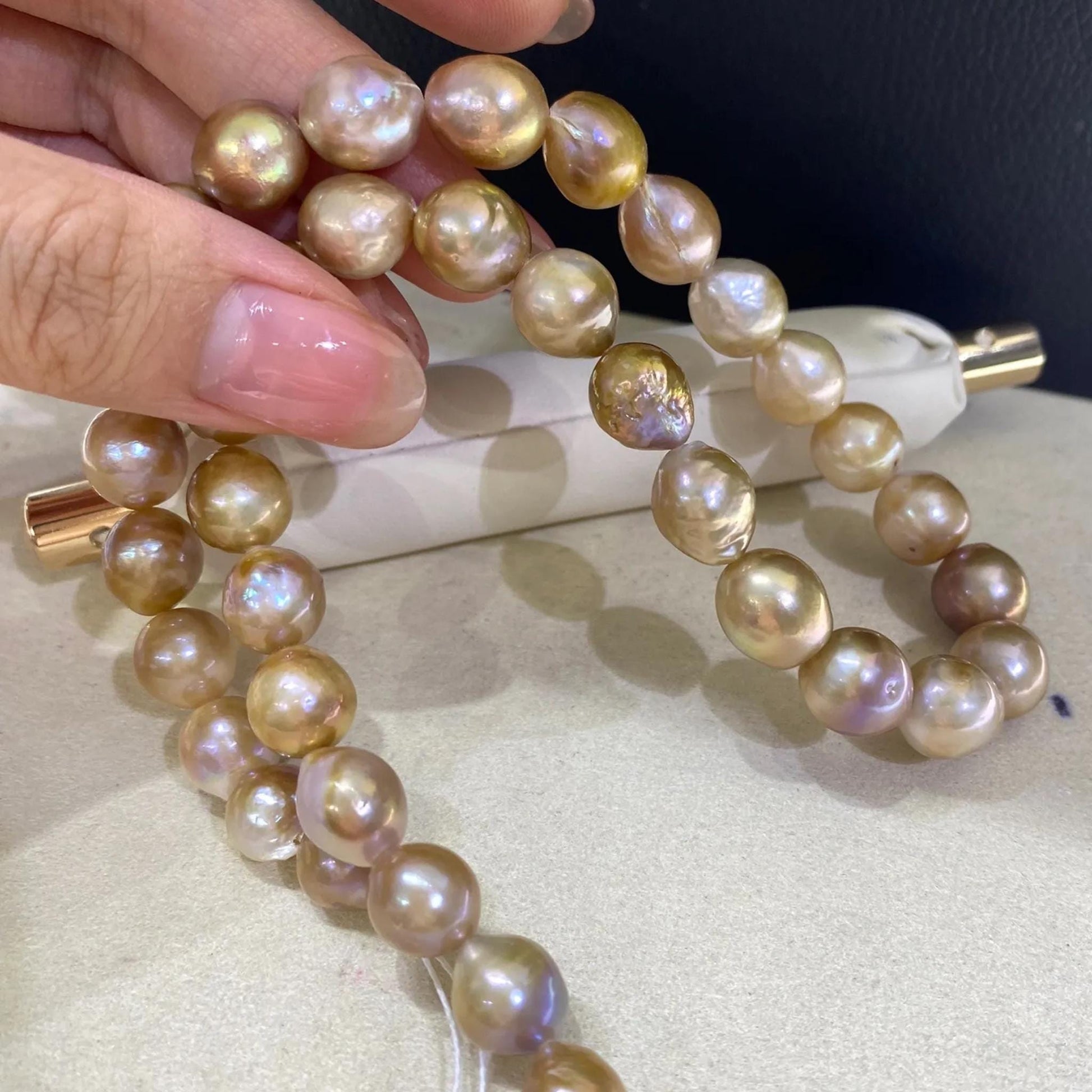 ✨ Natürliche Süßwasserperlen in einzigartigen Farbtönen - Diese organisch geformten Perlen in Gold-Rosa und Schimmer-Lavendel eignen sich perfekt für DIY-Schmuck im Boho-, Vintage- oder Naturstil.