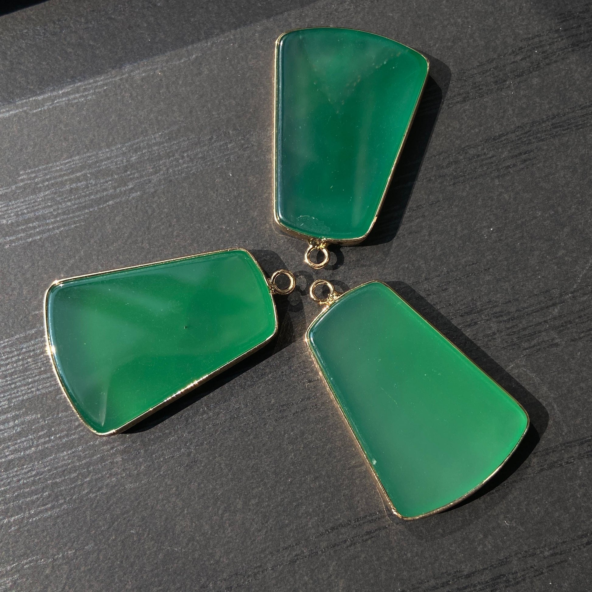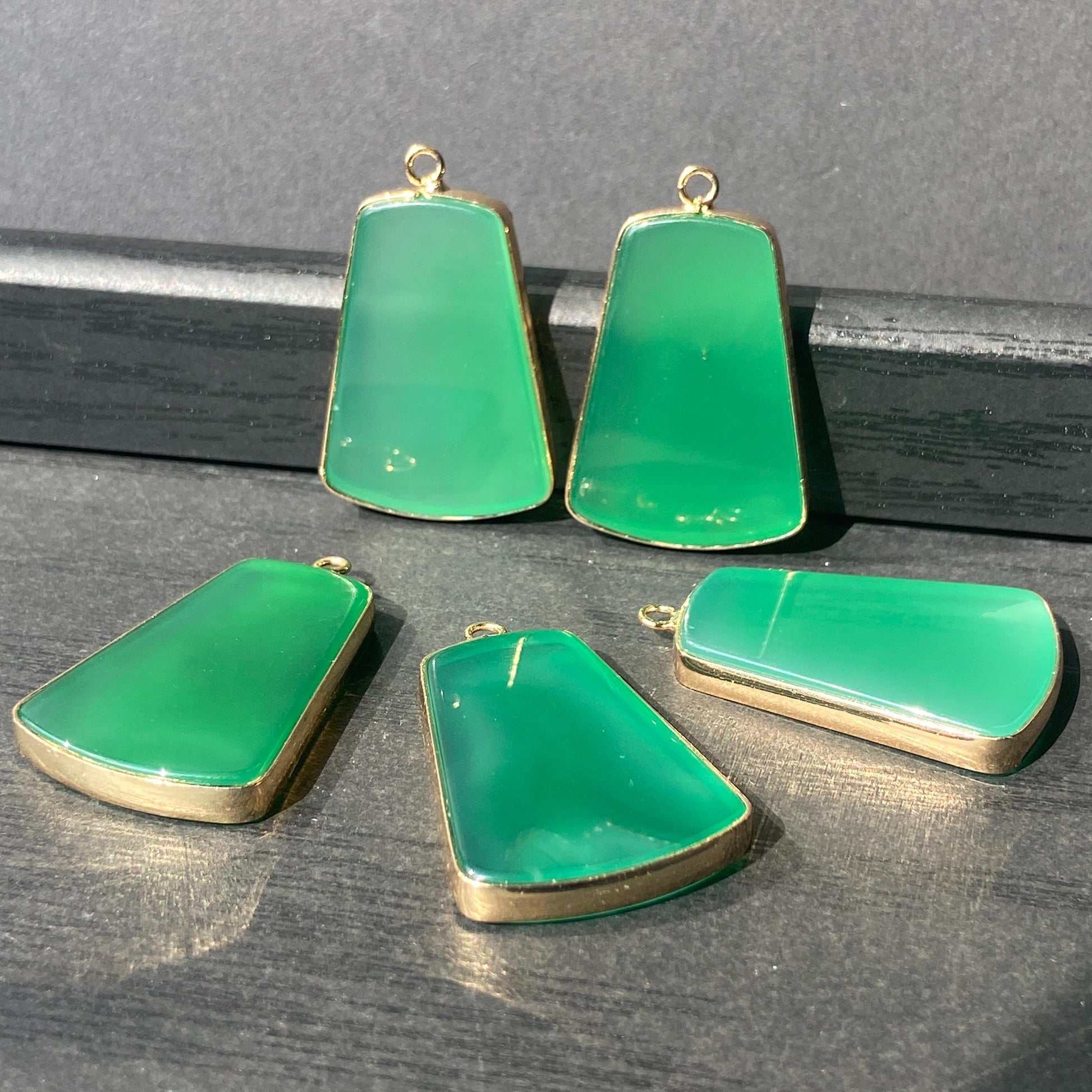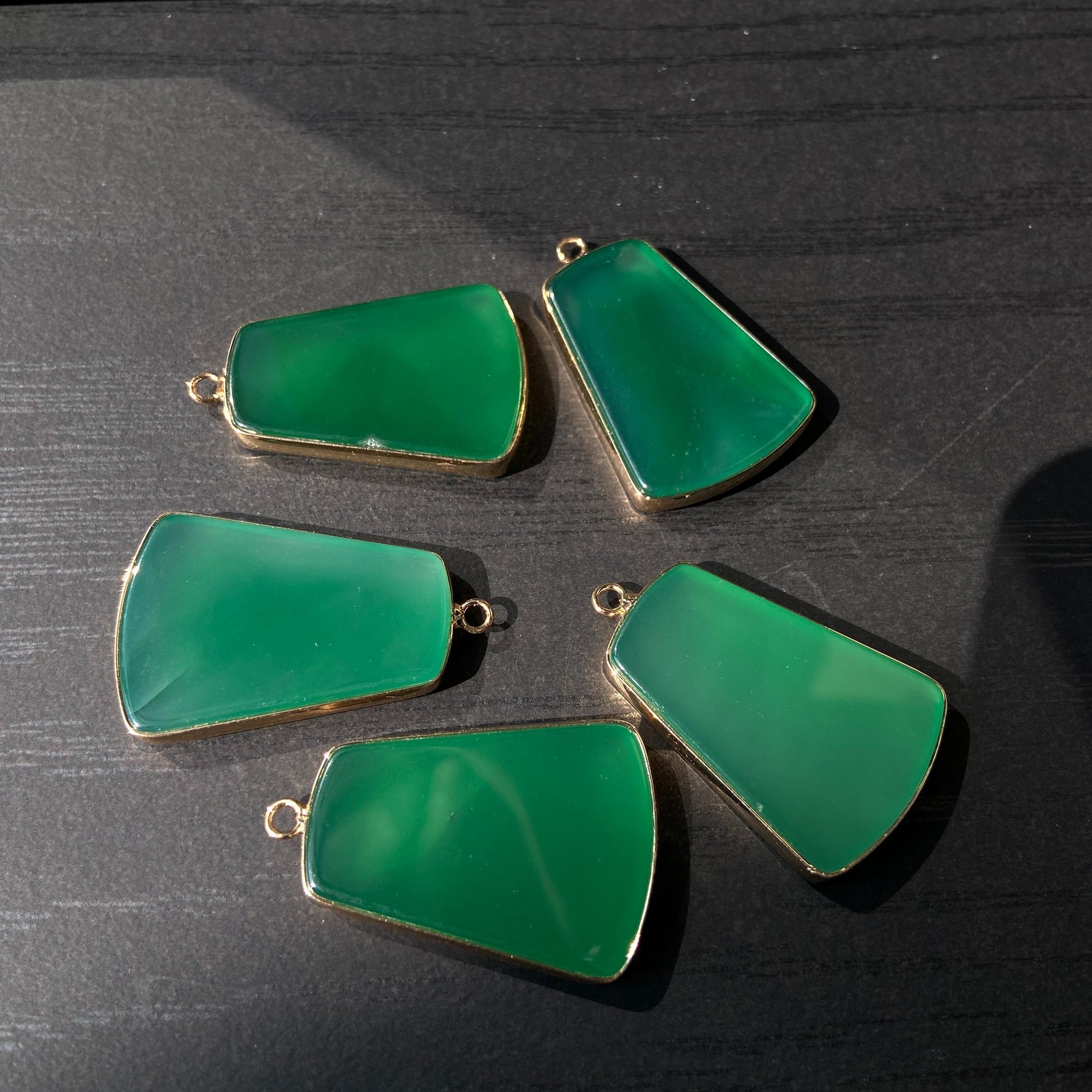 Grüner Achat Anhänger für DIY Schmuckherstellung, Naturstein mit Goldrand, Boho Bastelperlen für Halsketten oder Ohrringe, Einzelstück