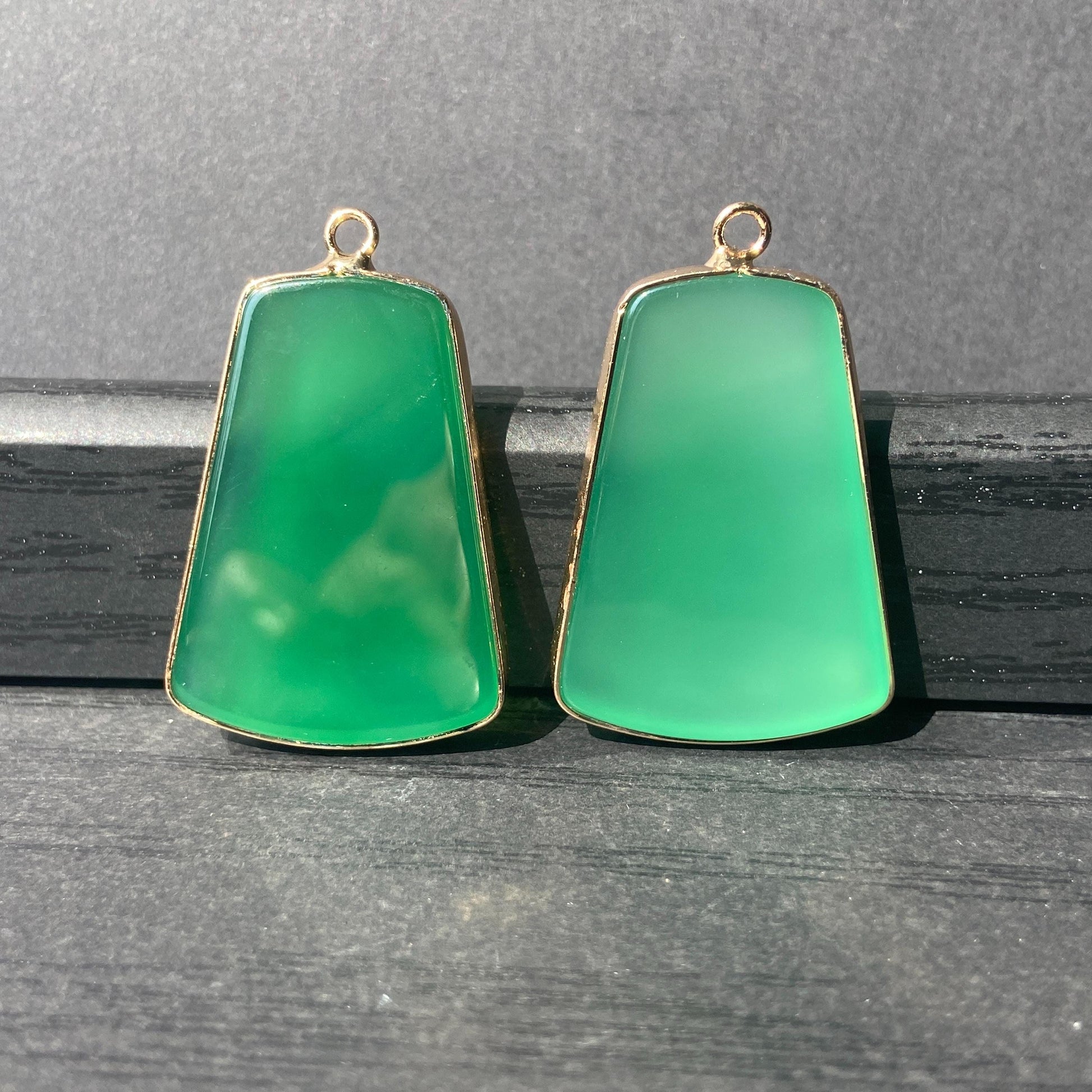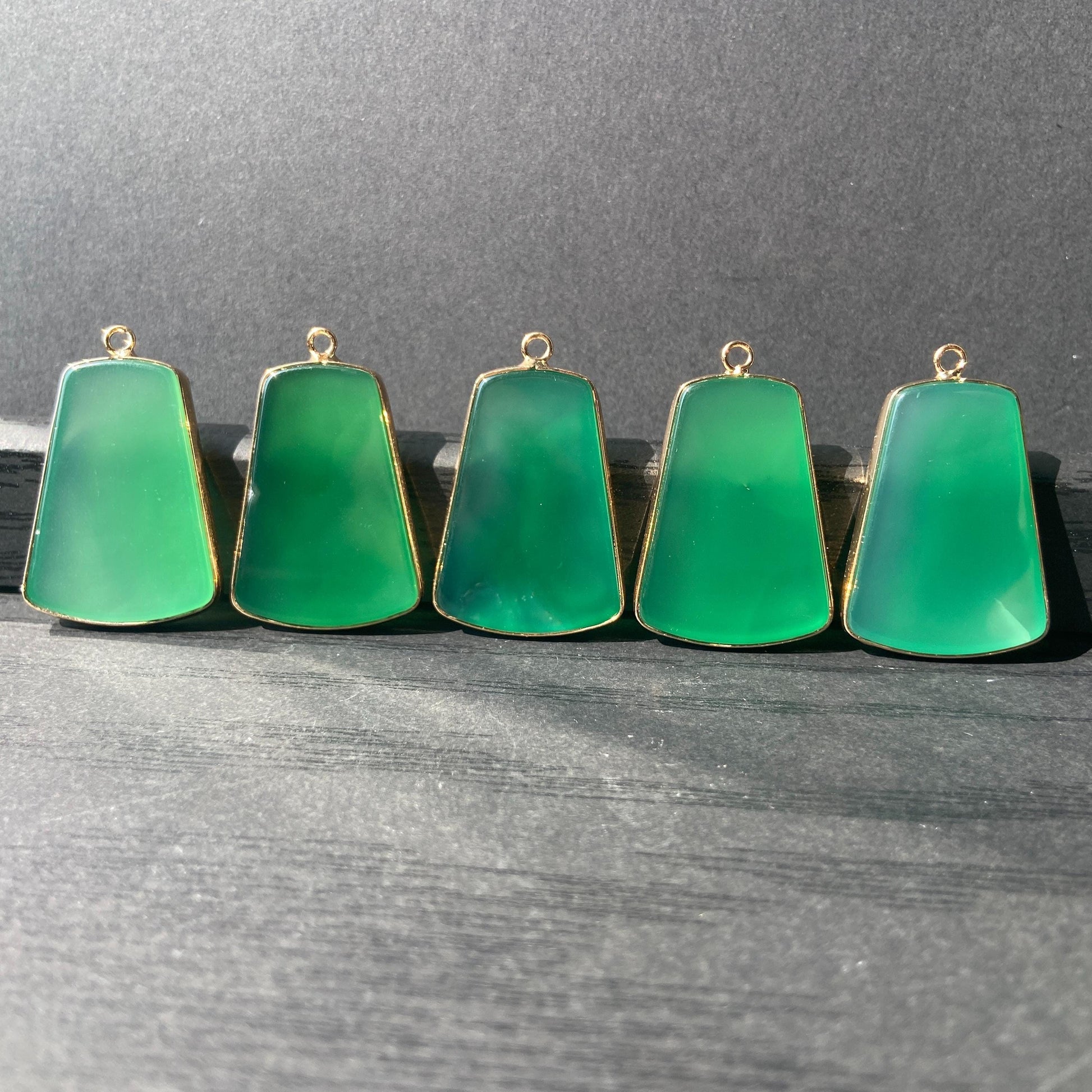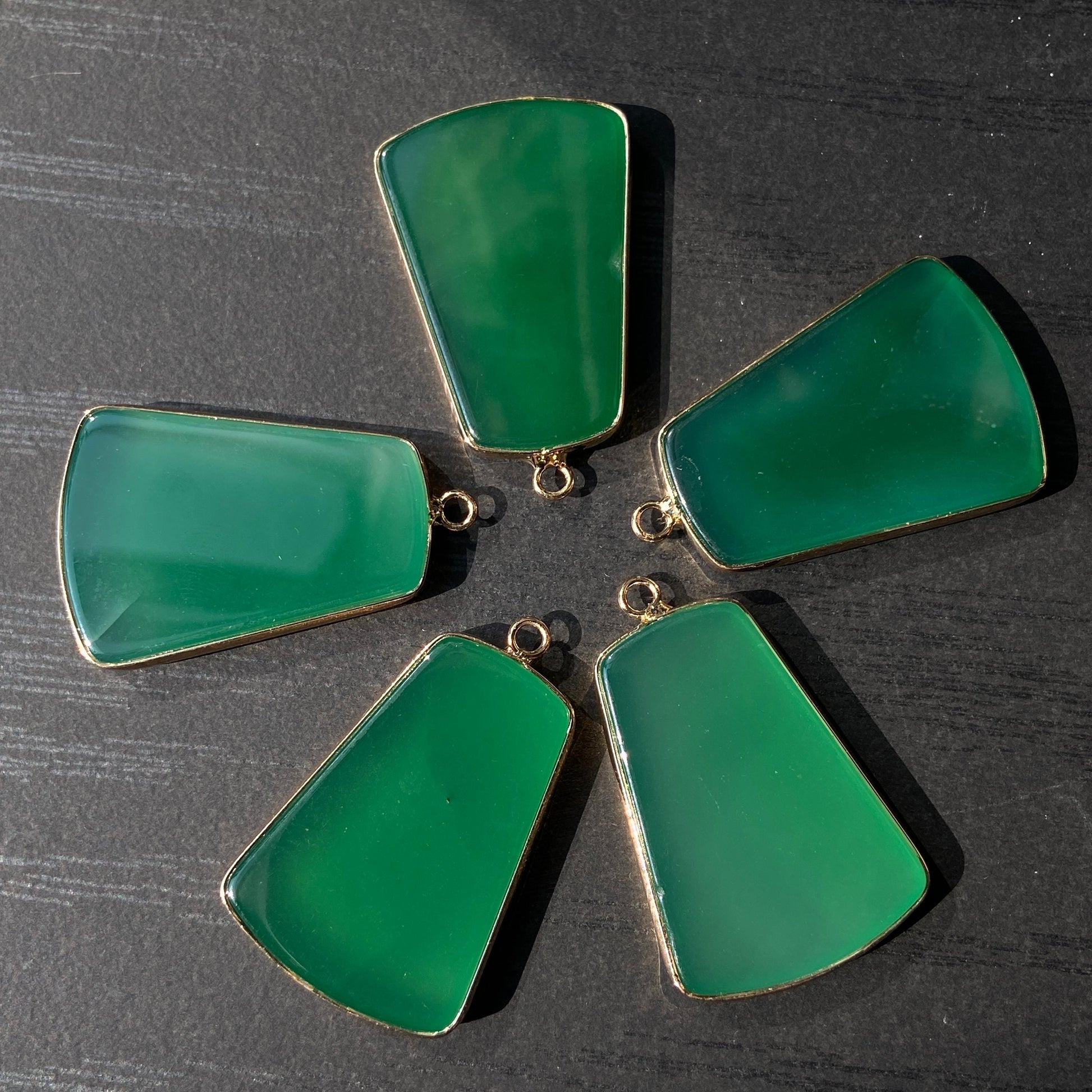 Grüner Achat Anhänger für DIY Schmuckherstellung, Naturstein mit Goldrand, Boho Bastelperlen für Halsketten oder Ohrringe, Einzelstück