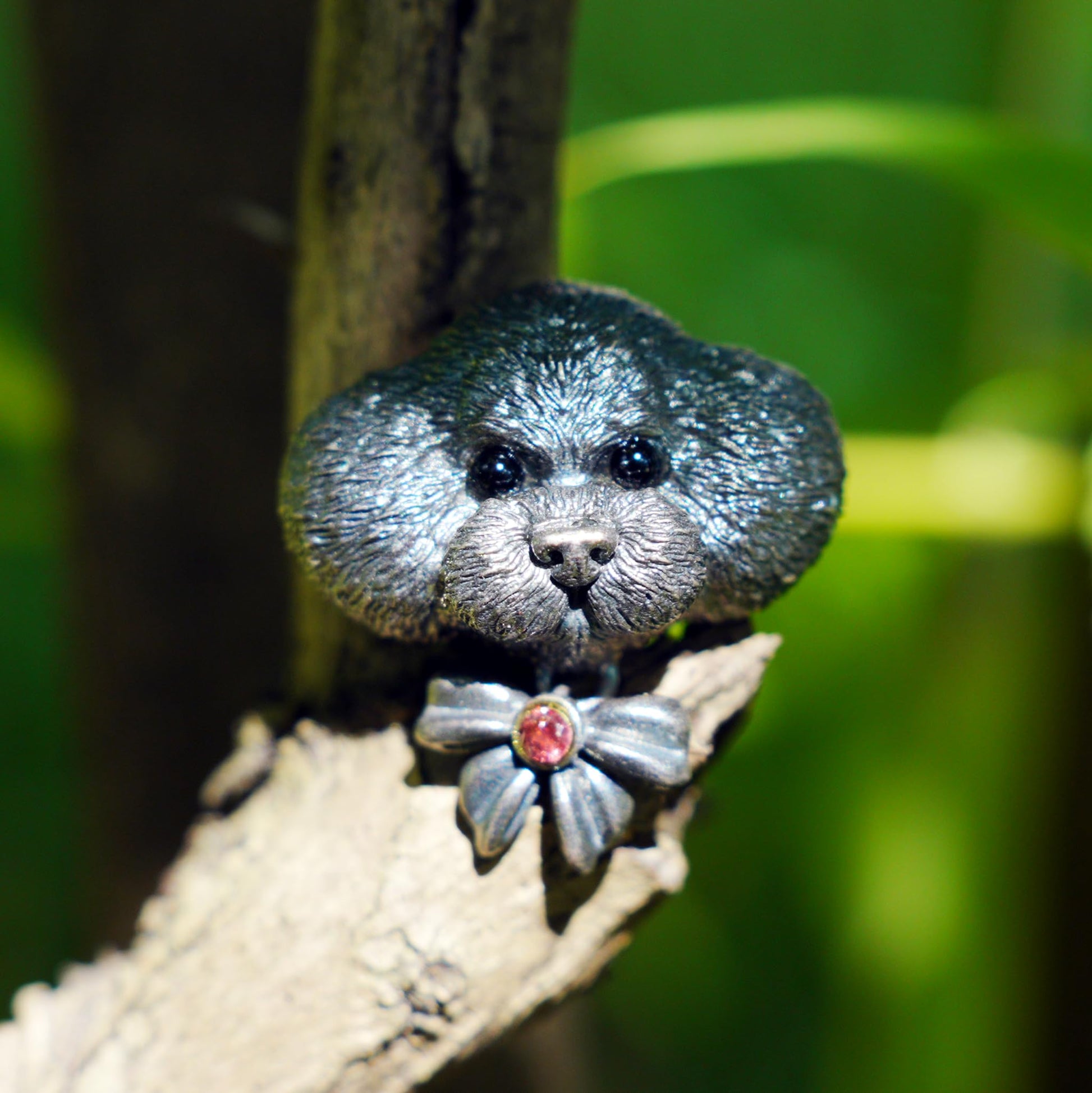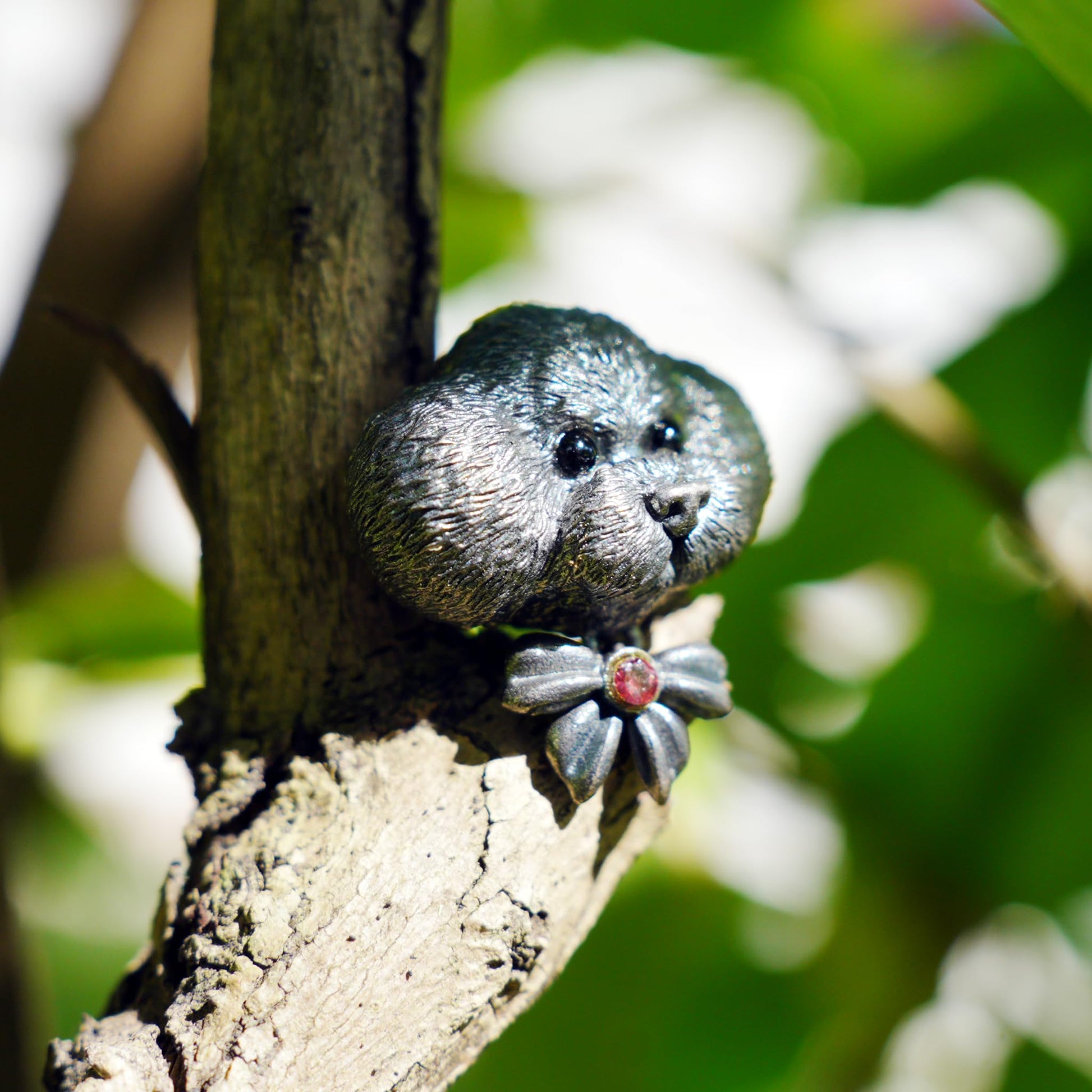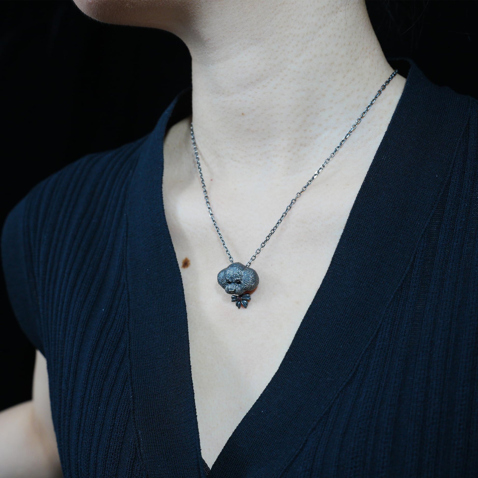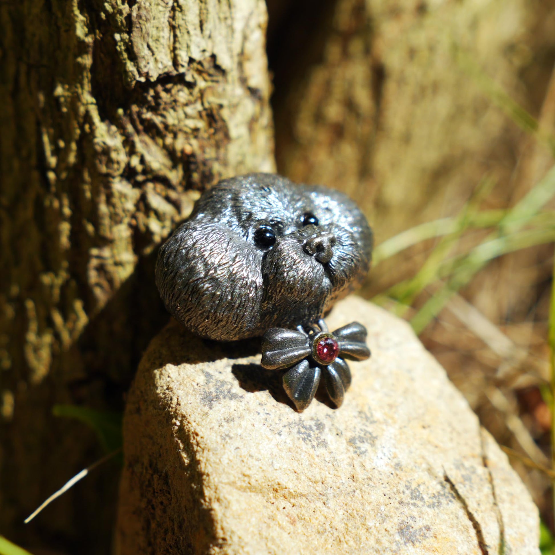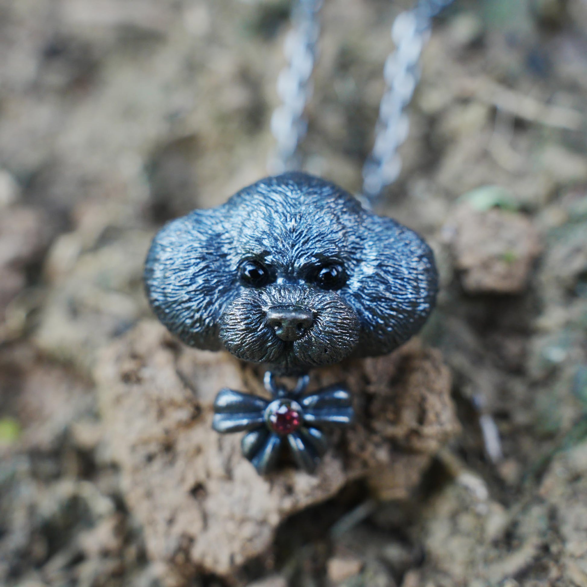 925 Sterling Silver Dog Pendant with Black Onyx & Red Zircon | Handmade Guardian Amulet Necklace | Fantasy Dreamkeeper Jewelry Gift