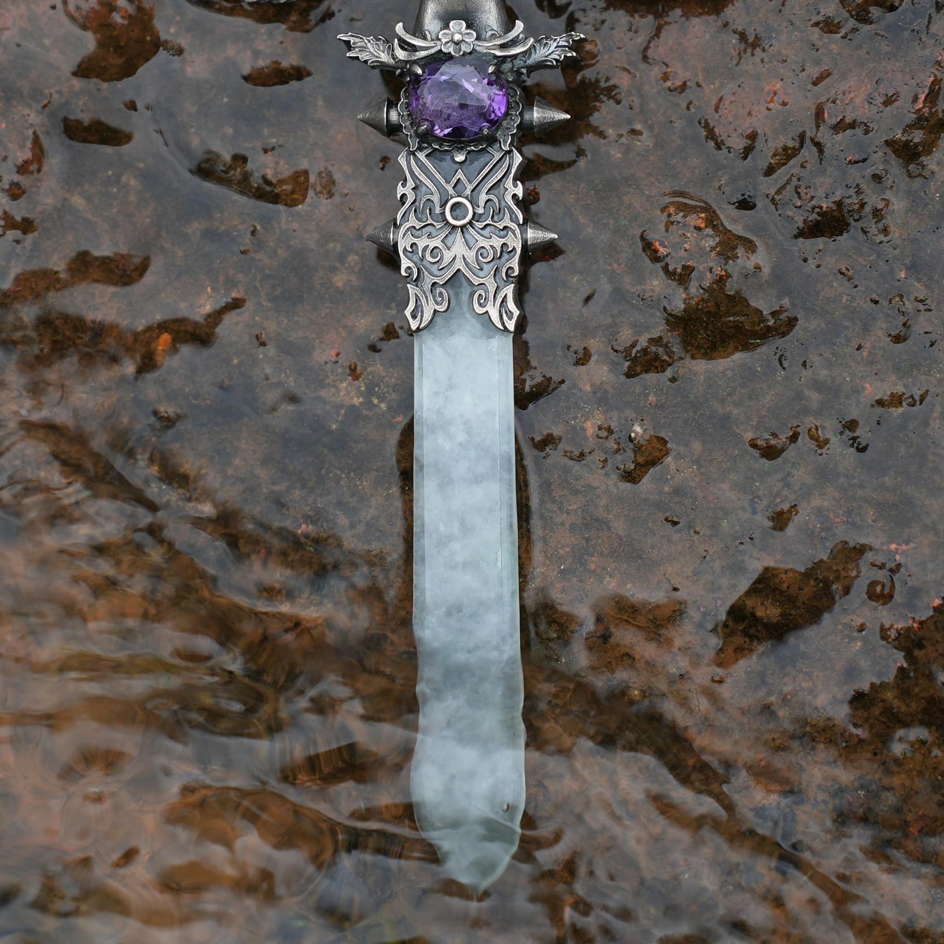 Handcrafted 925 Silver Winged Goddess Sword Pendant with Amethyst & Jade | Nordic Myth Fantasy Protection Amulet Jewelry