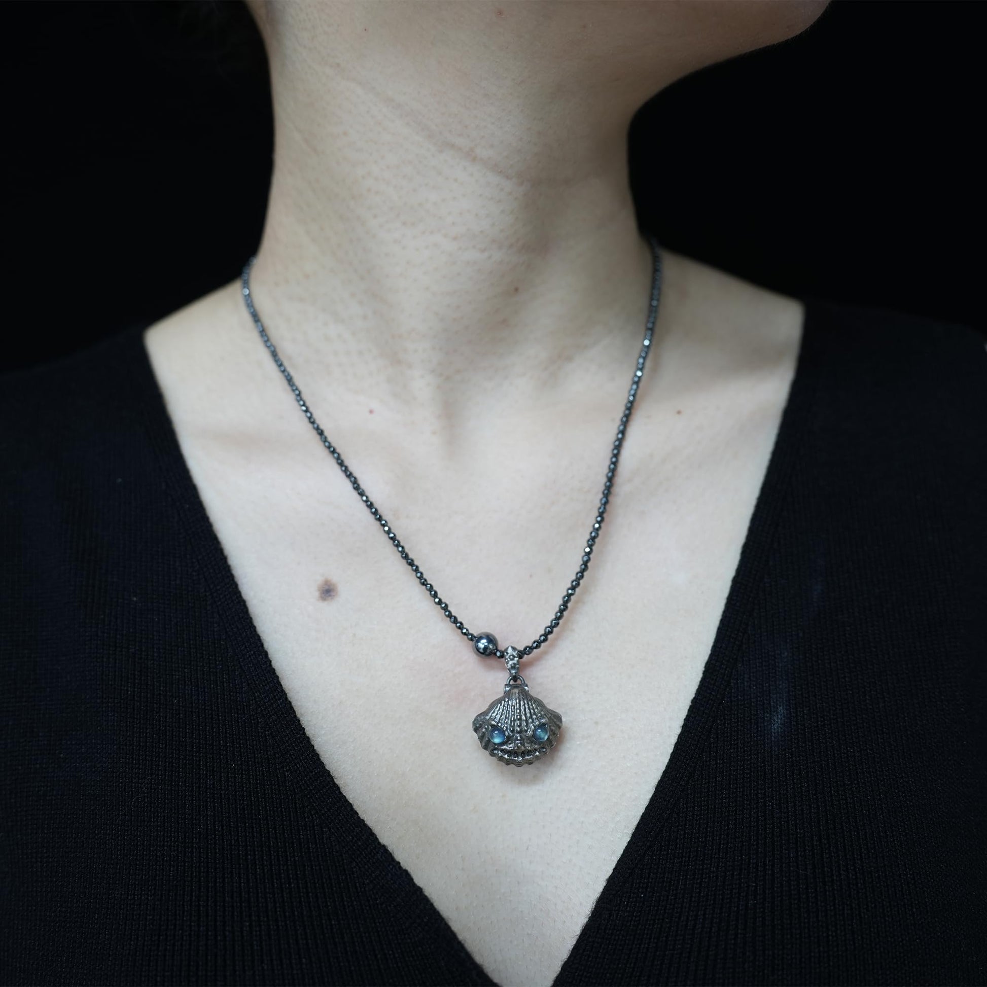 Handcrafted Shell Pendant | 925 Silver with Labradorite & Larimar | Spiritual Ocean Jewelry