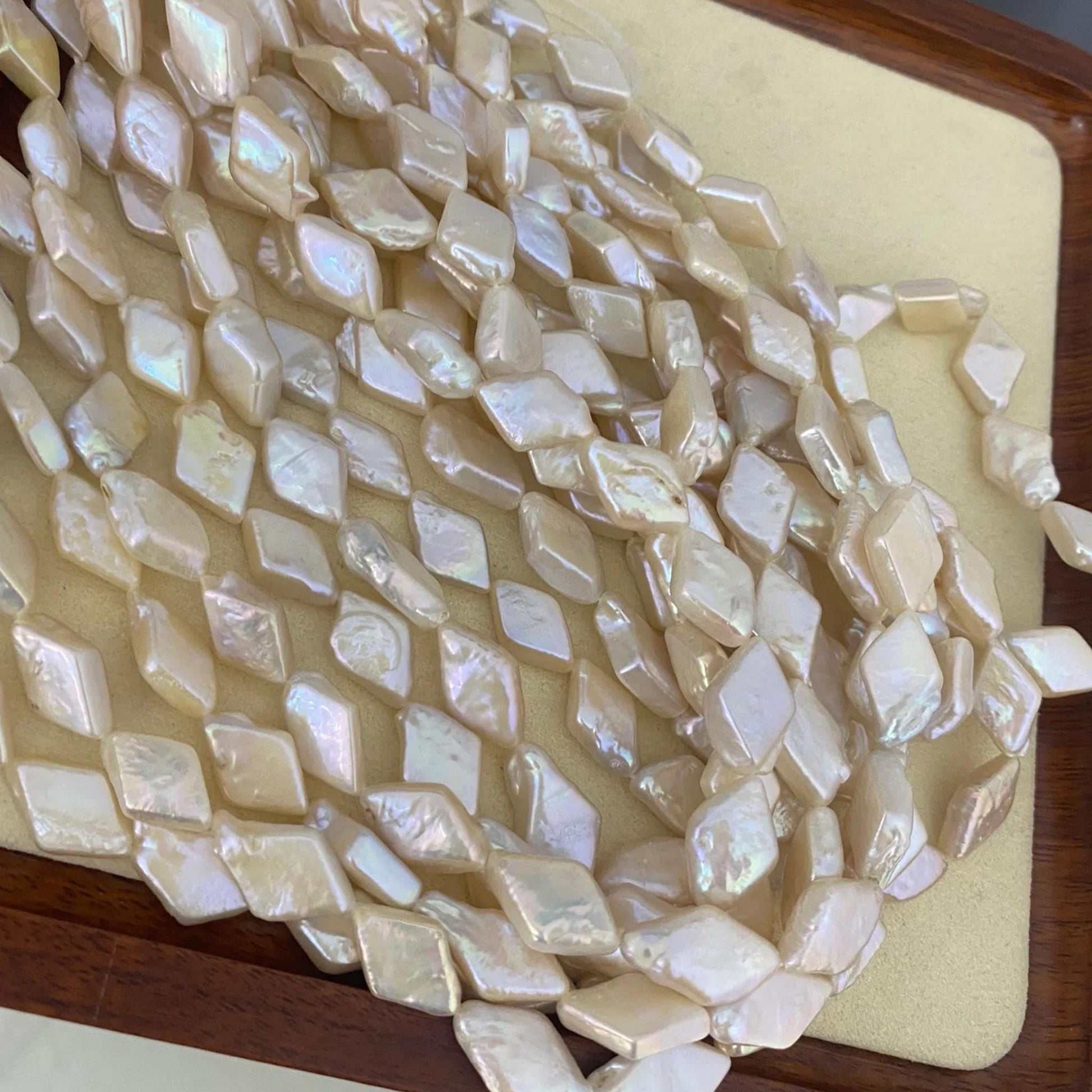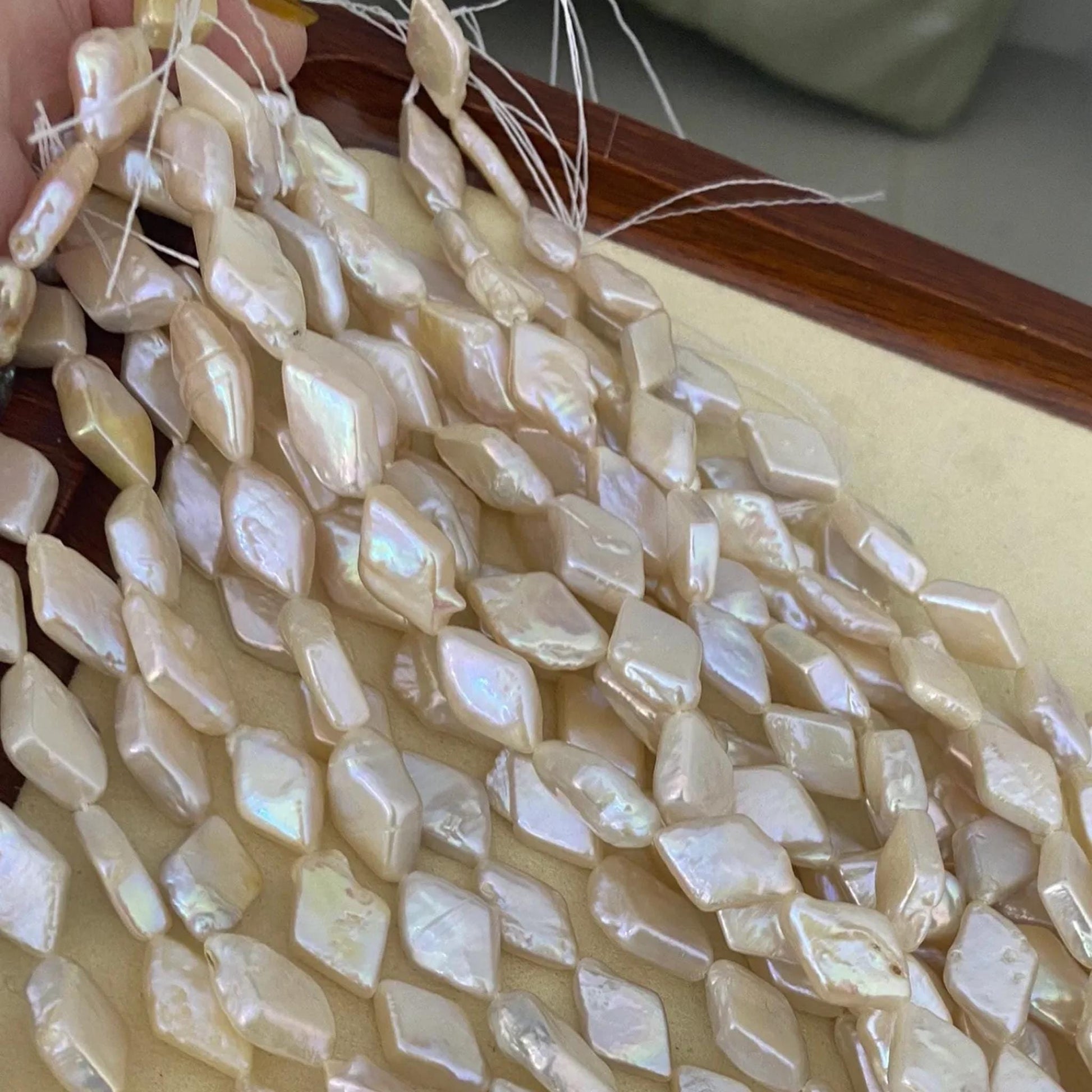 Handgefertigter Strang Champagnerfarben Diamantform Süßwasserperlen Barockperlen lose Perlen für DIY Schmuck Halsketten Armbänder Ohrringe