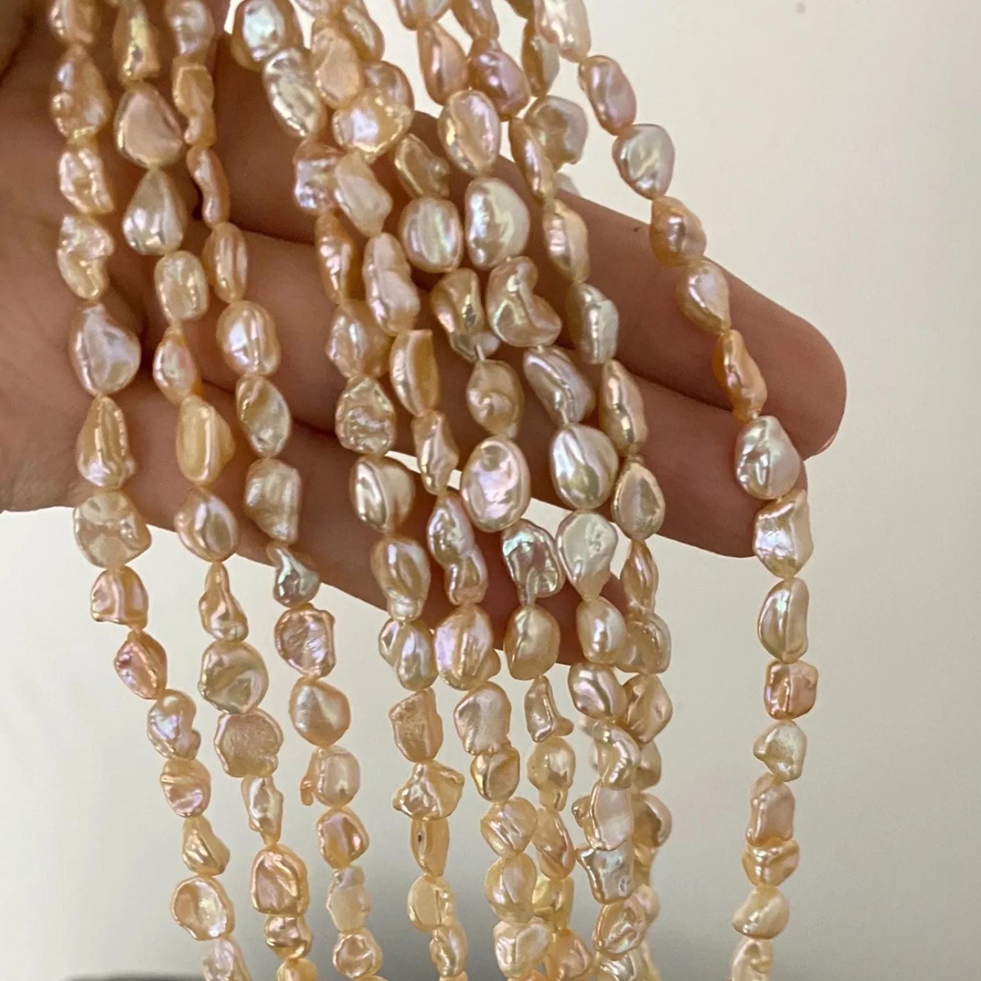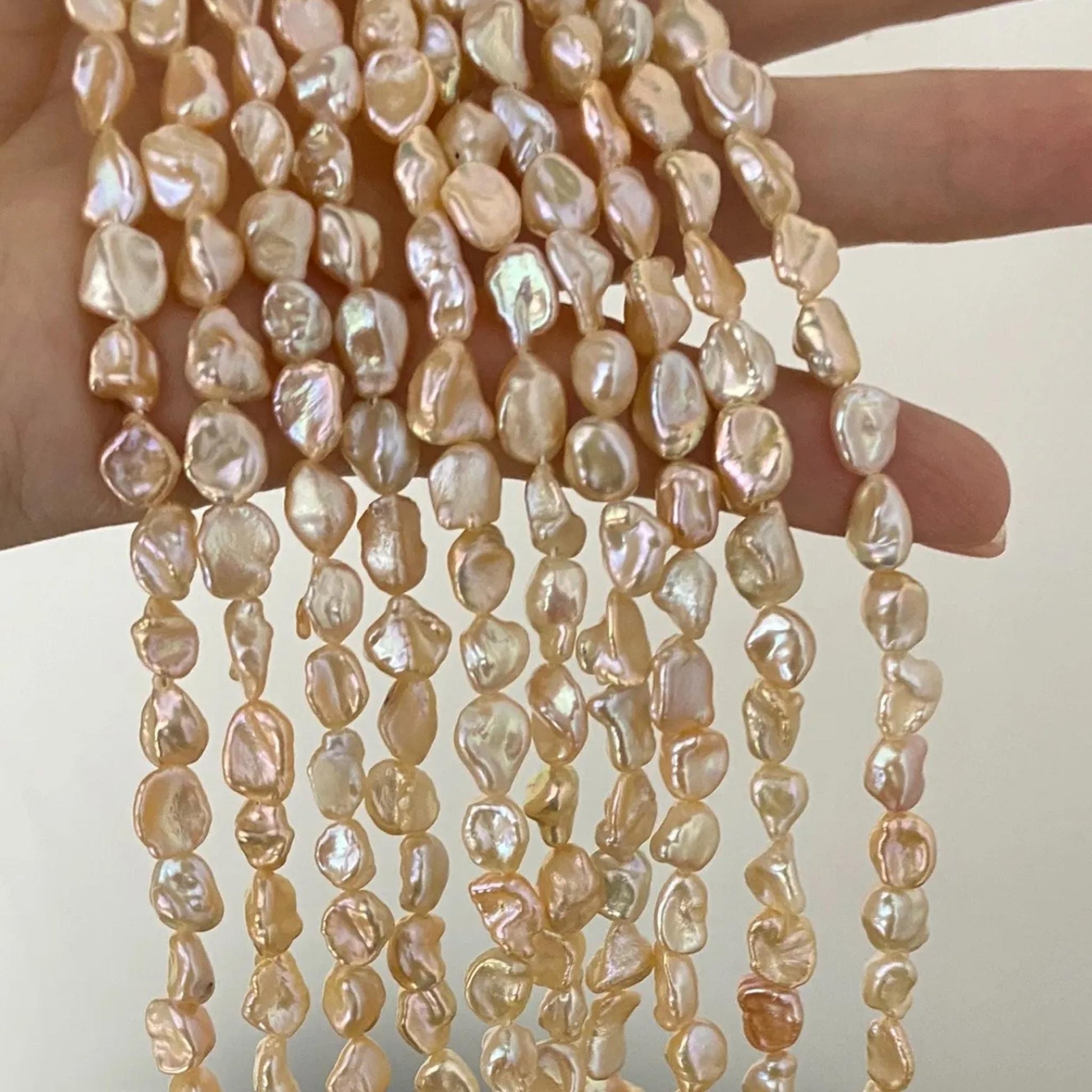 Bringen Sie natürliche Eleganz in Ihre Schmuckkreationen mit diesen handgemachten unregelmäßigen Süßwasserperlen. In einem zarten Pfirsich-Pink und mit irisierendem Glanz versehen, sind diese Perlen perfekt für DIY-Projekte, um einzigartige Schmuckstücke zu gestalten.