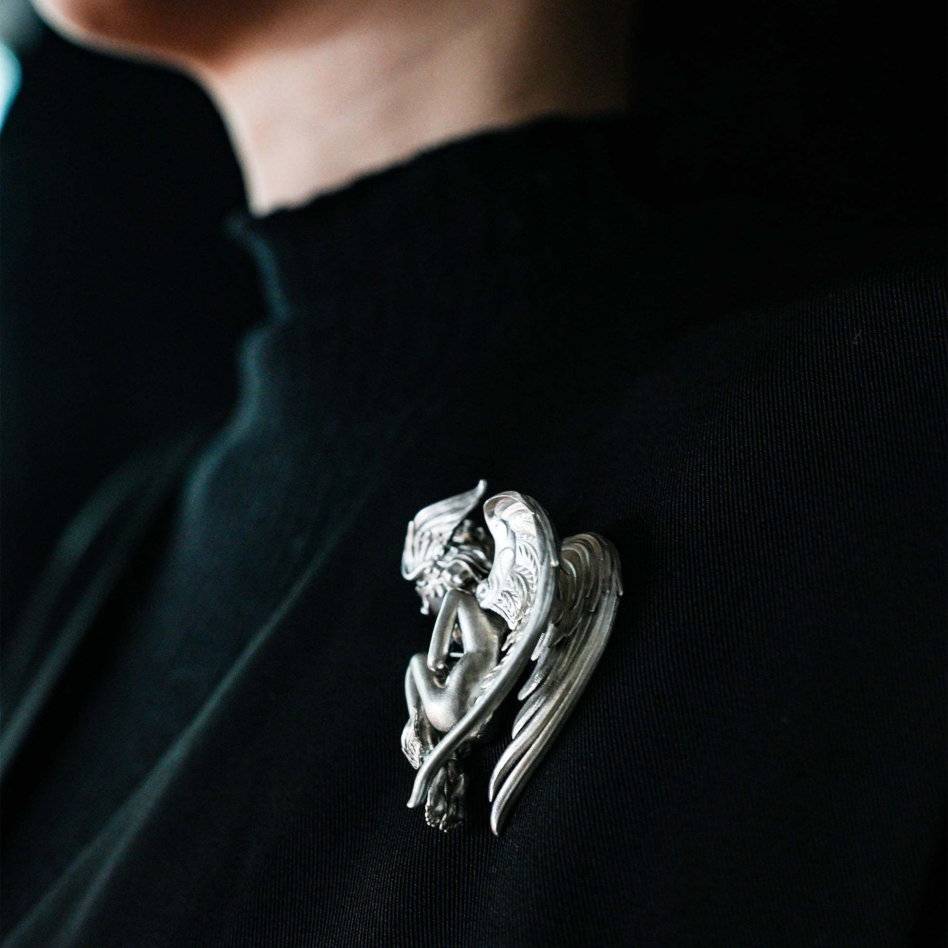 Crafted from solid 925 sterling silver, the angel’s form captures a delicate balance between Gothic elegance and spiritual serenity.