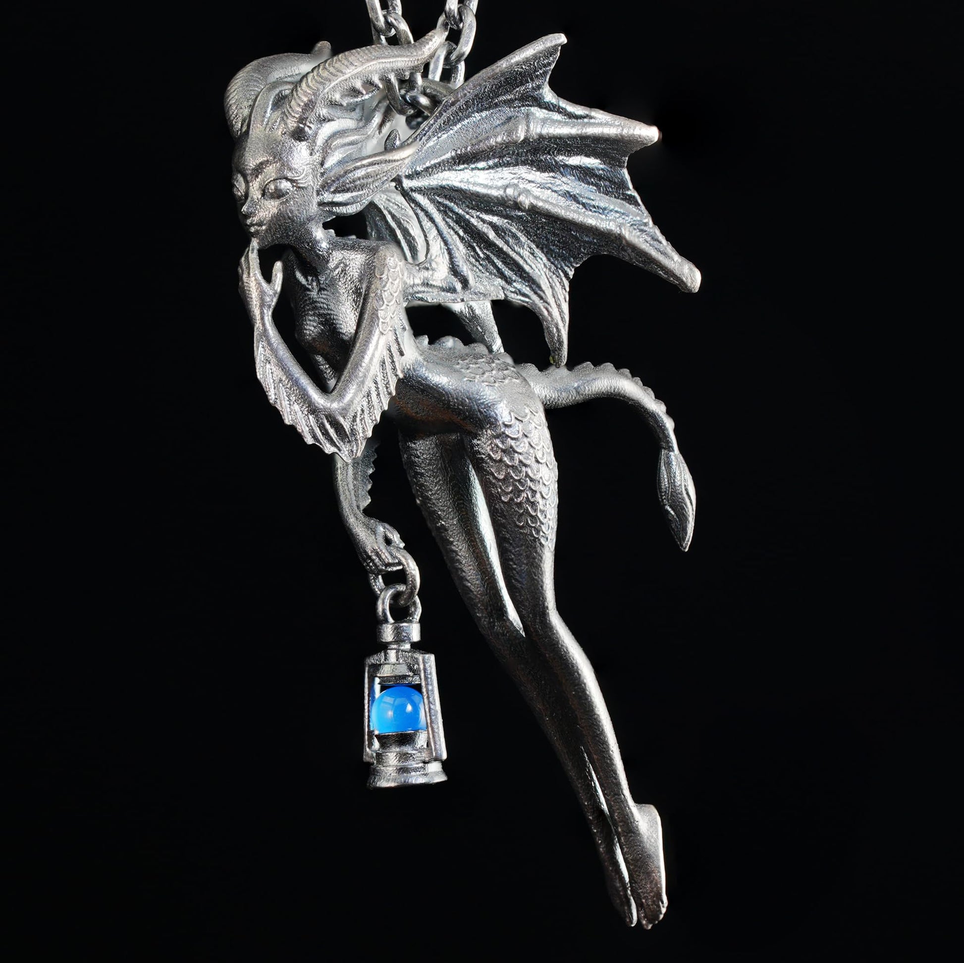 Handcrafted in solid 925 silver, the pendant portrays a graceful dragon girl,