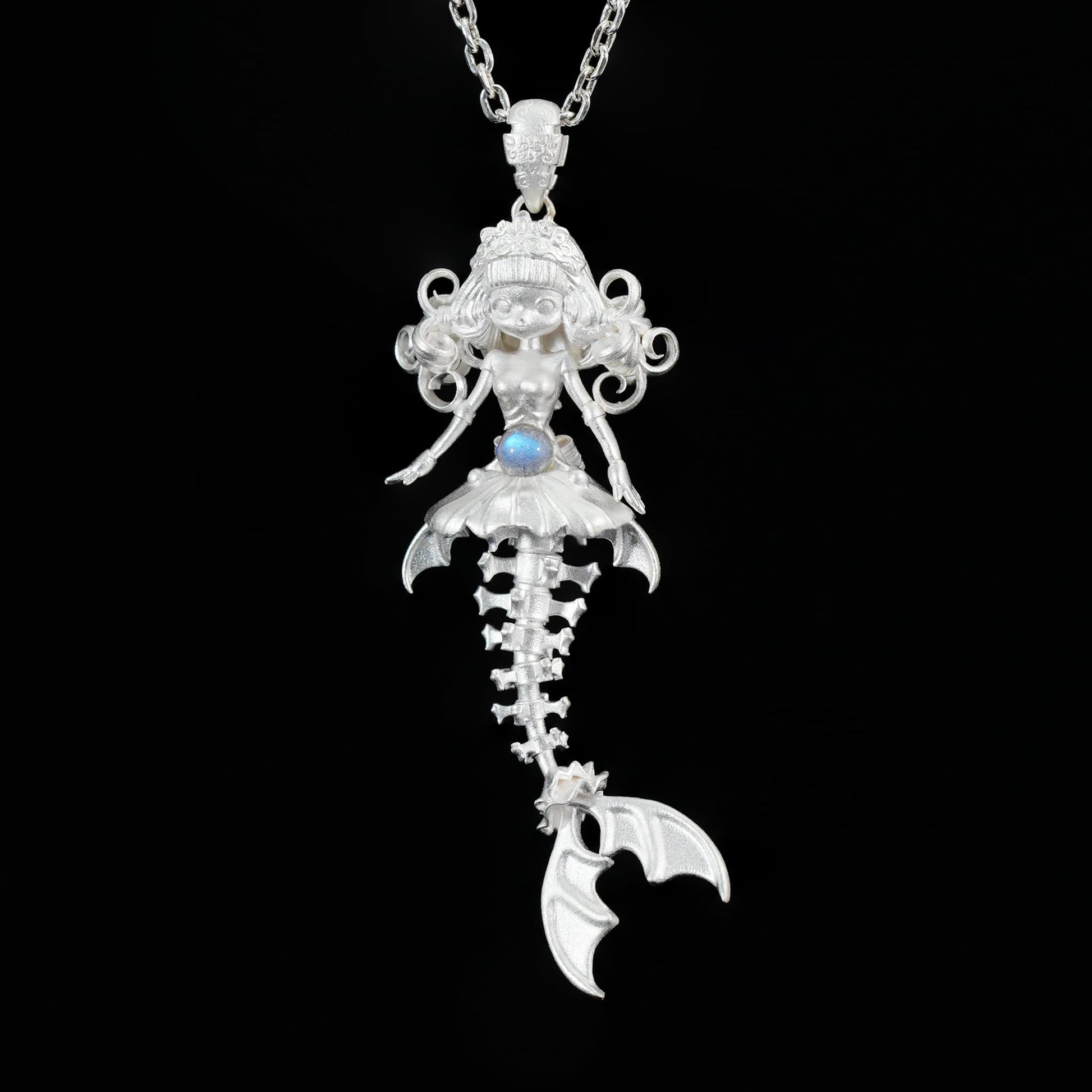 925 Sterling Silver Mermaid Skeleton Pendant with Labradorite | Handcrafted Ocean Amulet Necklace | Gothic Fantasy Jewelry Gift