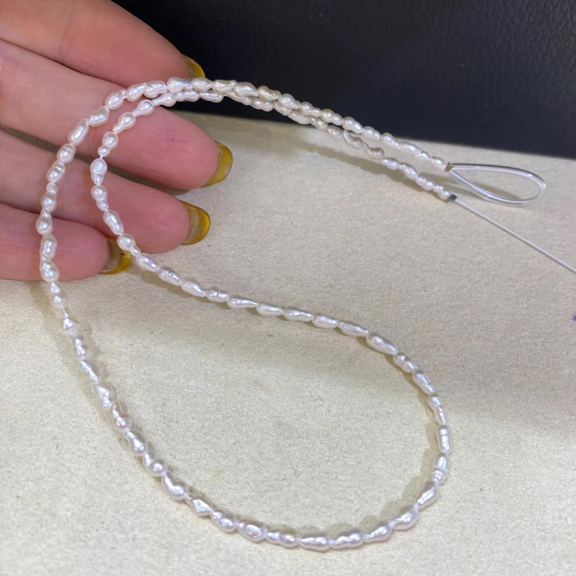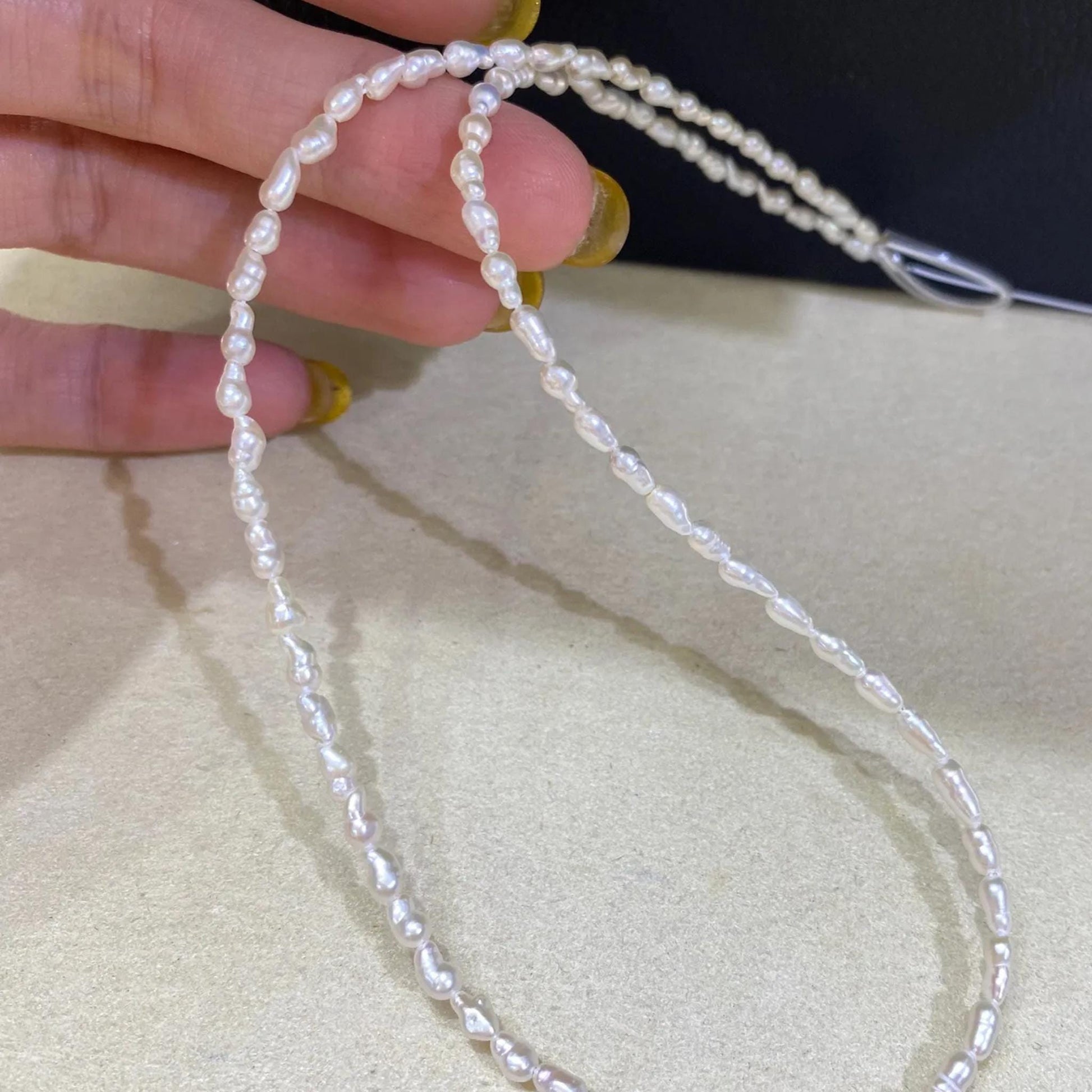 Kleine weiße Barock Süßwasserperlen, unregelmäßige Perlenstränge zum Basteln, seitlich gebohrt, DIY Schmuckzubehör, Mini Naturperlen