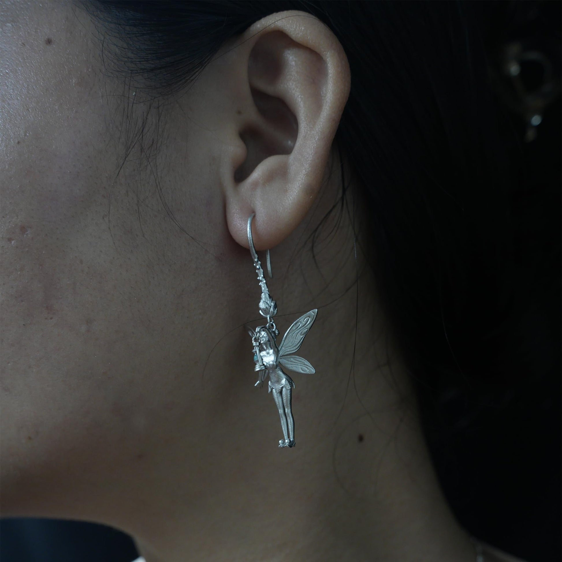 925 Silver Fairy Earrings with Amazonite | Handmade Fantasy Jewelry | Winged Elf Design Gift for Dreamers and Collectors