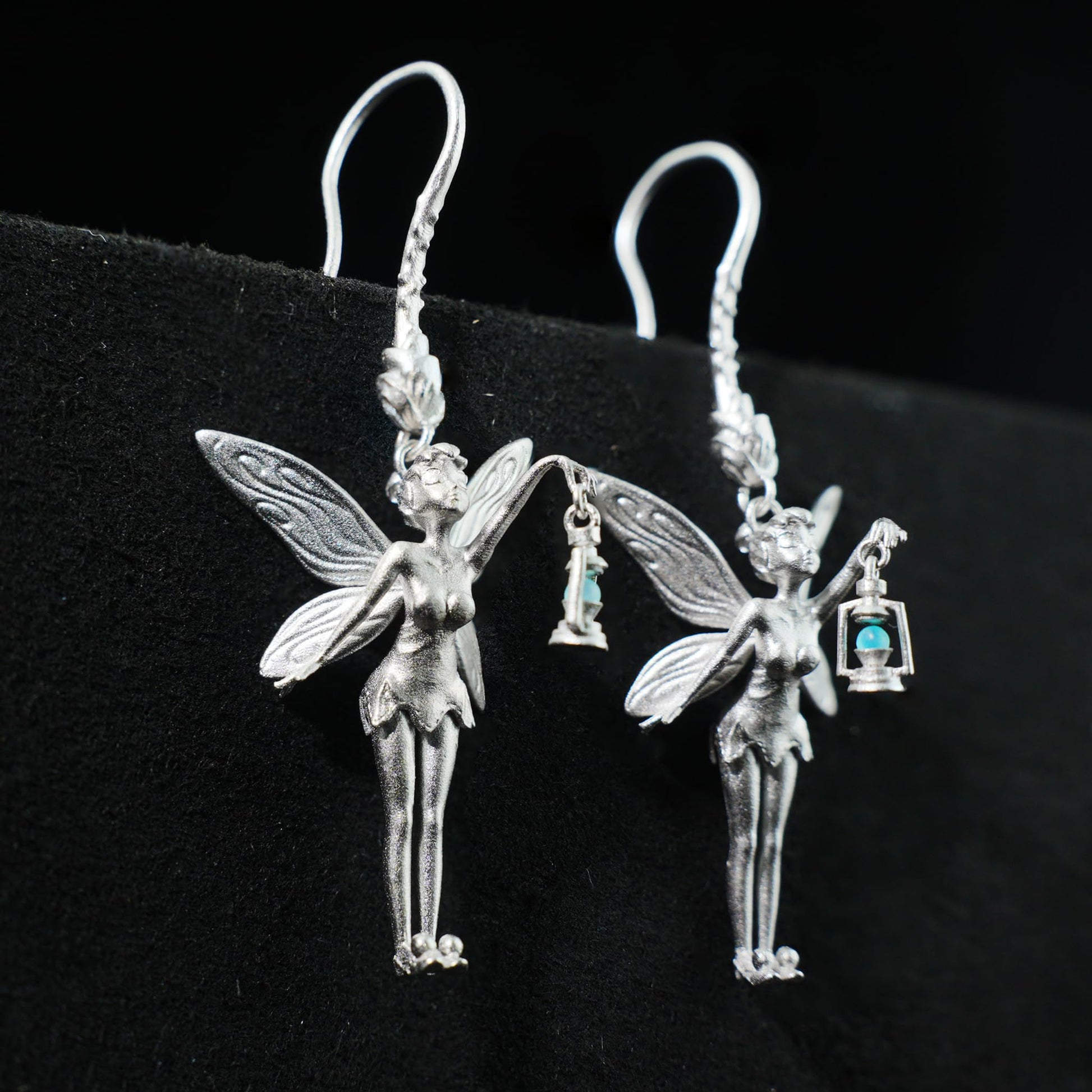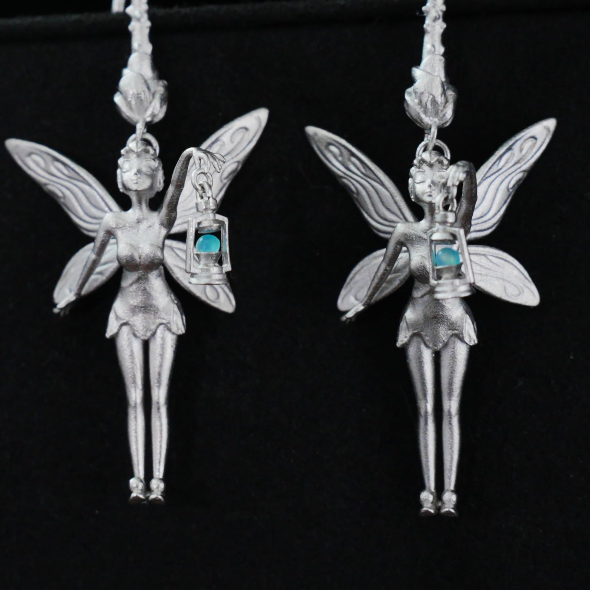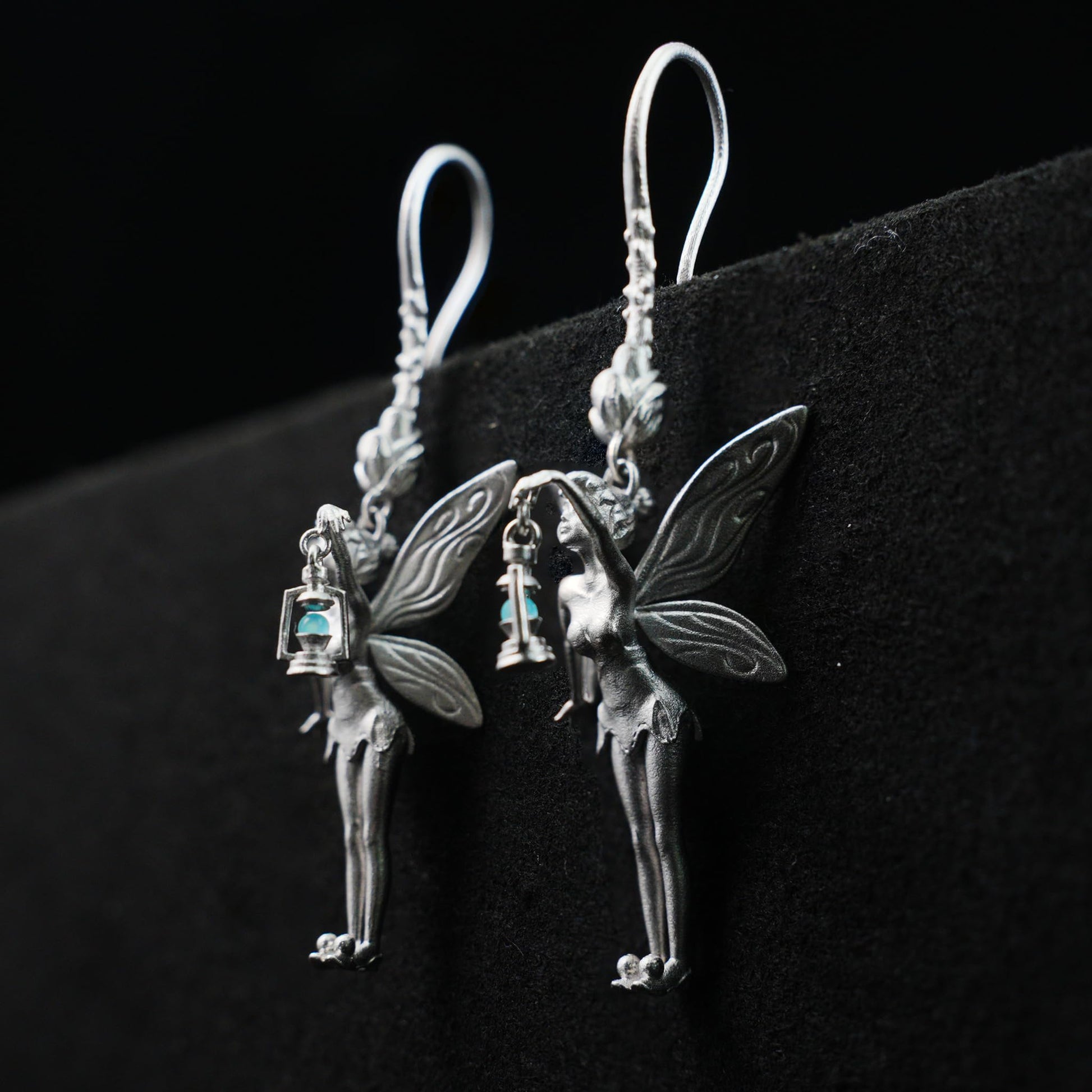 Design: Sculptural fairy motif with detailed wings and miniature lantern charm