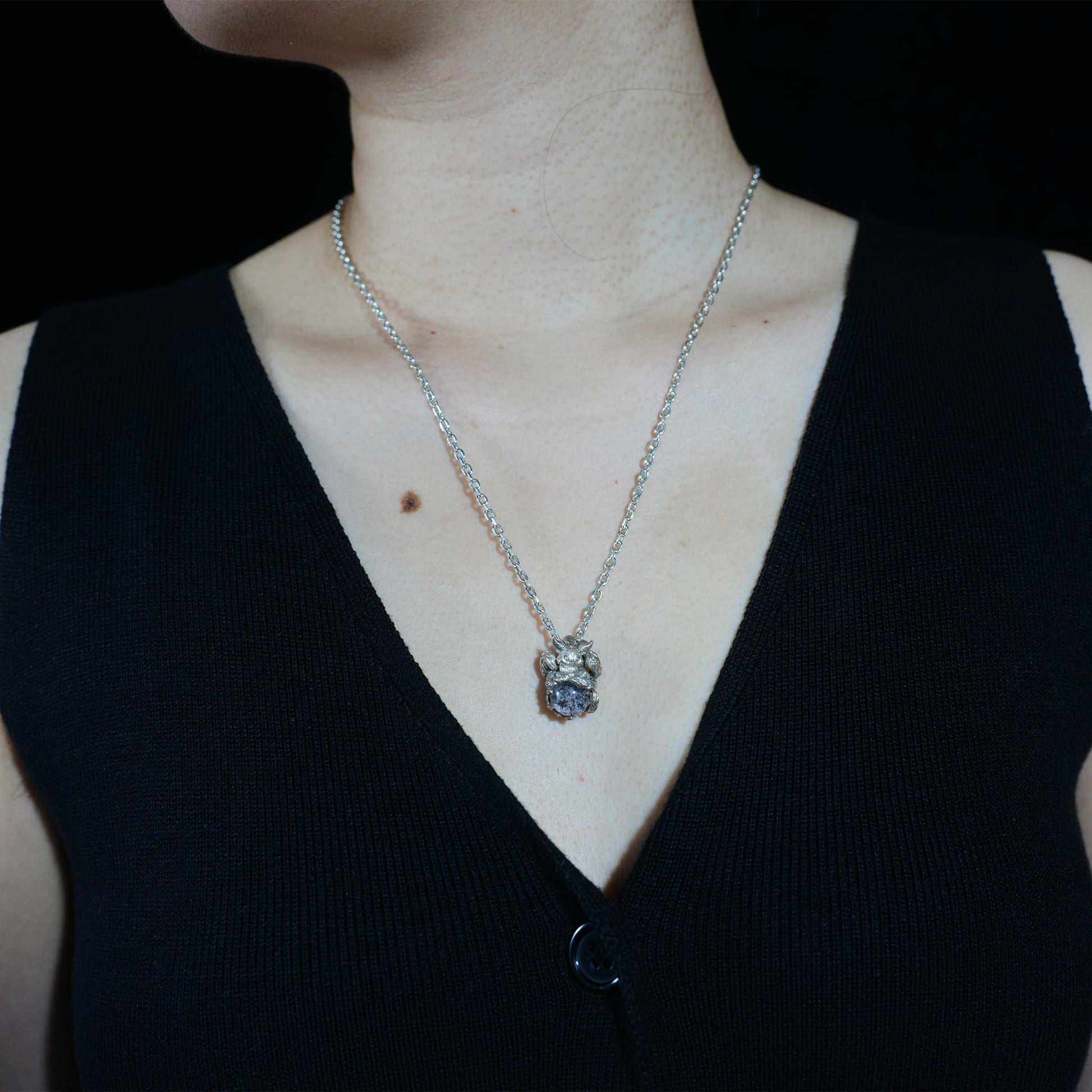 The pendant carries a quiet strength, a fusion of folklore and spiritual symbolism —