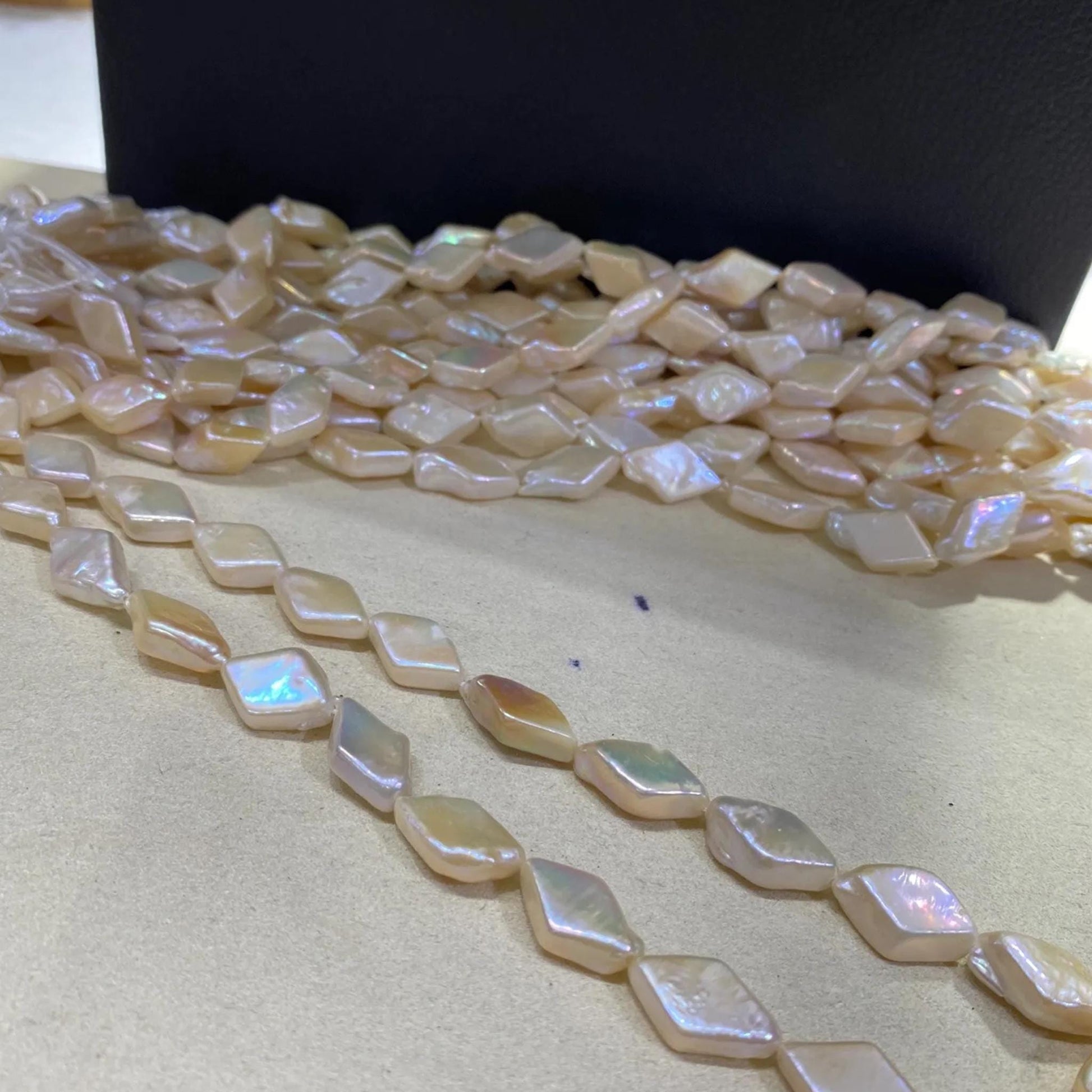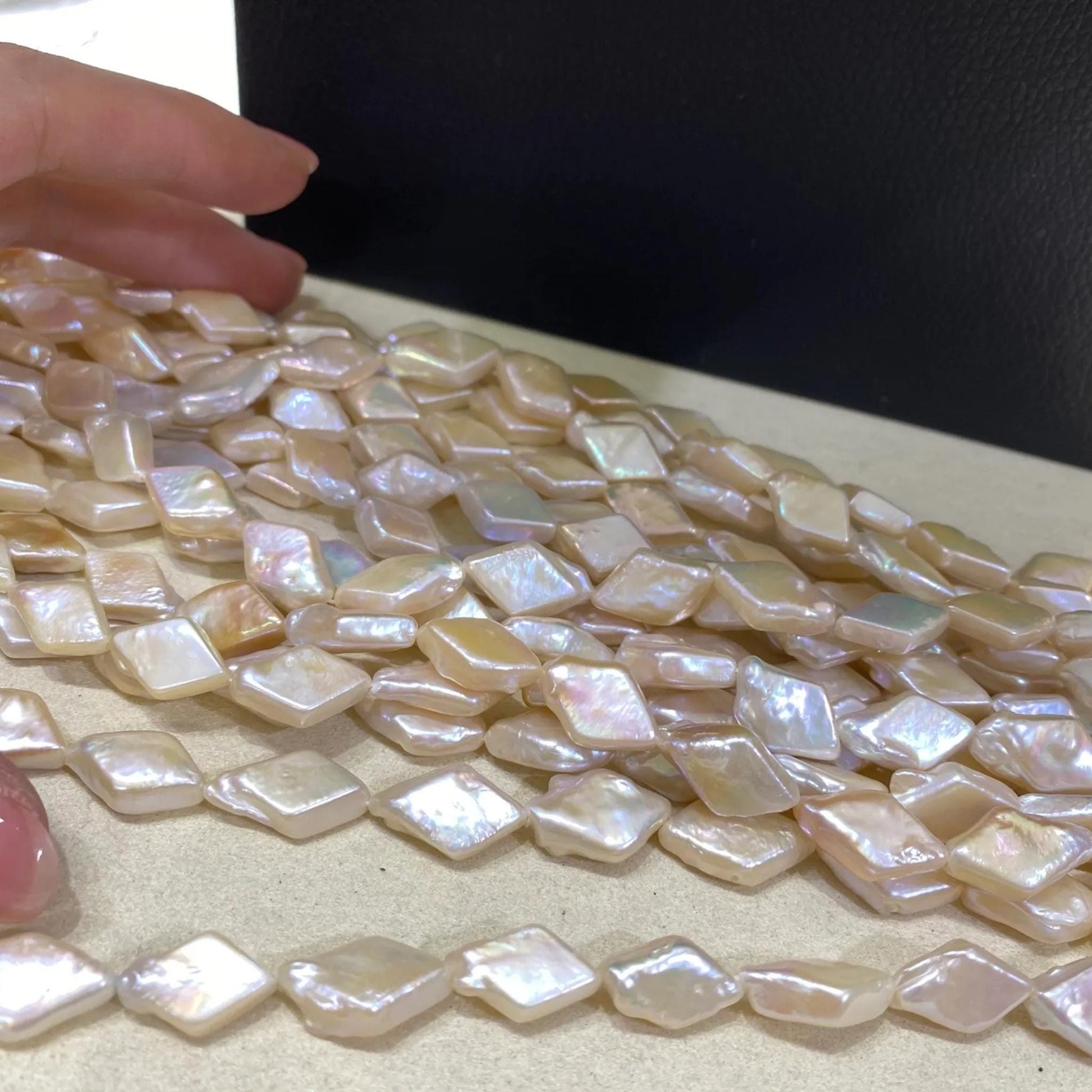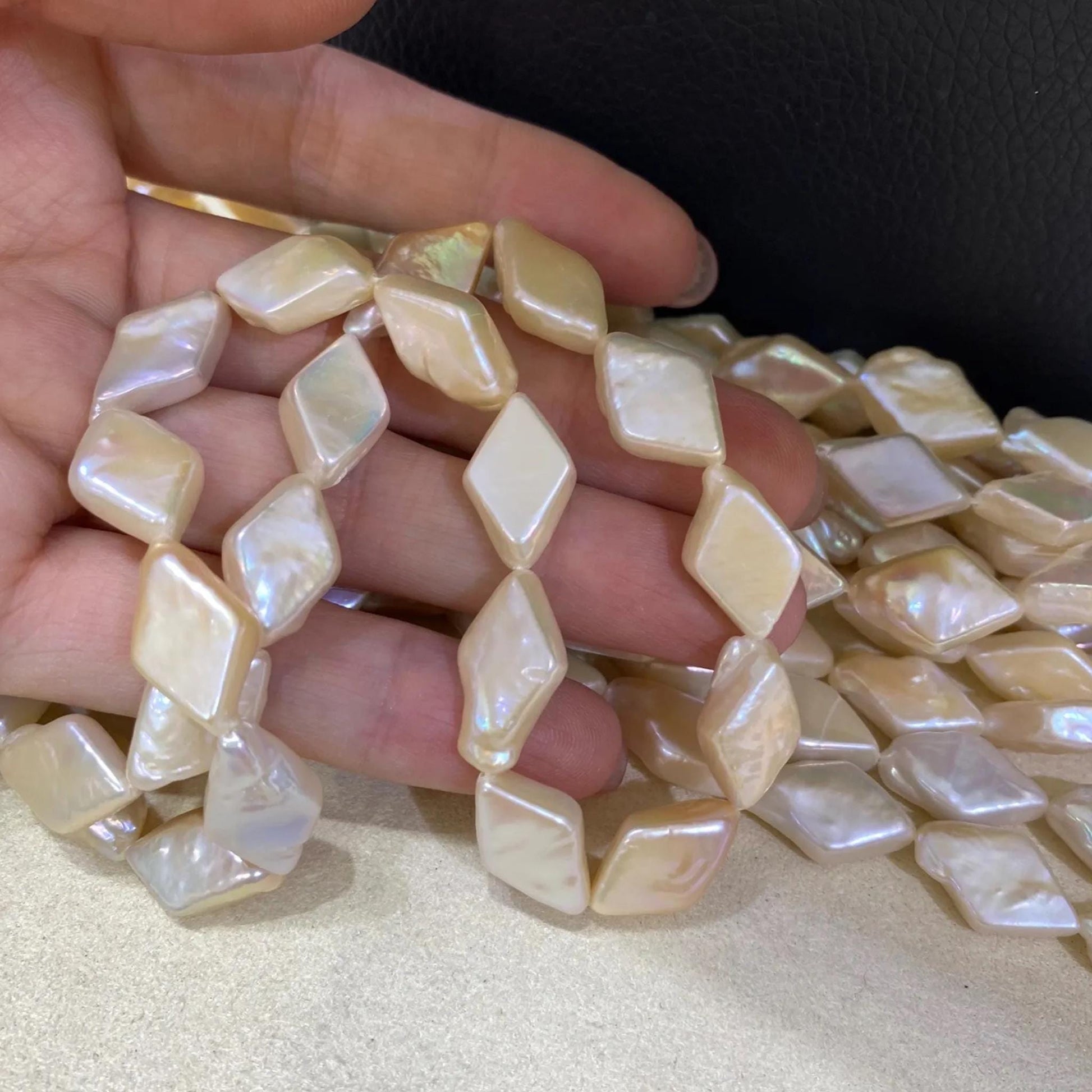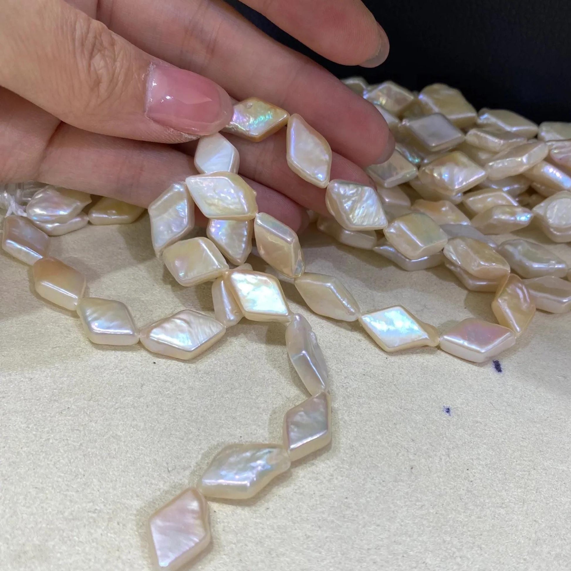 Natur Muschelperlen Strang in Diamantform, handgefertigte Perlmutt Beads, pastell Apricot, flach, für Boho Schmuck, große Kite Perlen