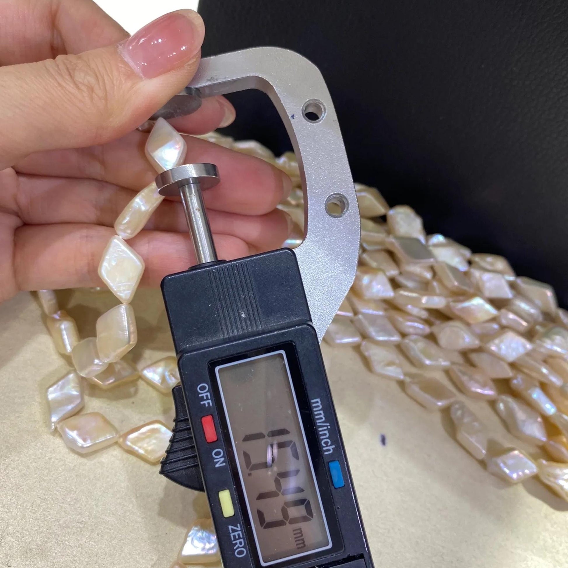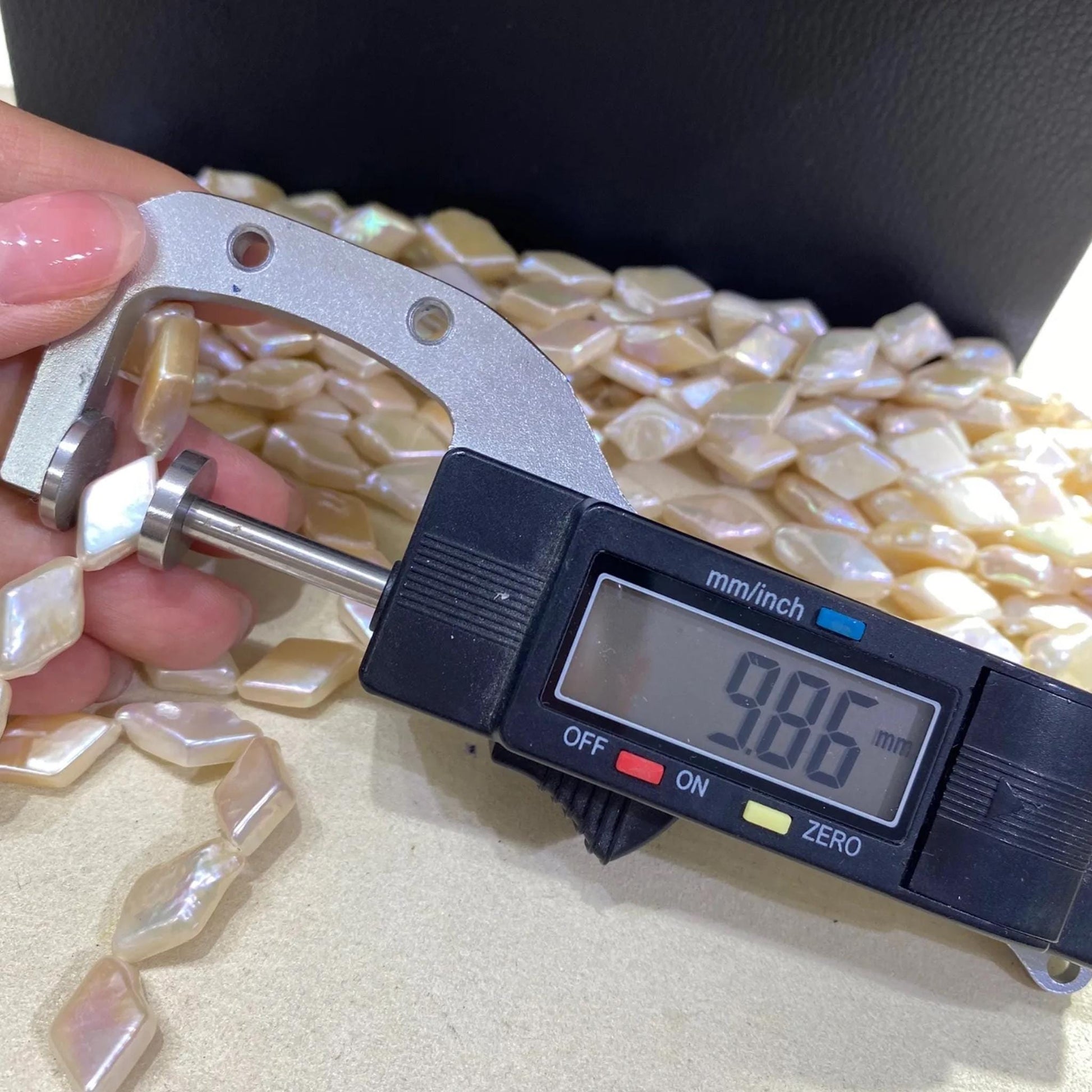 Handgefertigte Naturperlen aus echtem Perlmutt in zartem Pastell-Apricot - perfekt für Boho Schmuck, sommerliche Accessoires oder Vintage Projekte. Diese flachen, rhombusförmigen Muschelperlen verleihen jedem Design eine elegante, maritime Note 🌊.