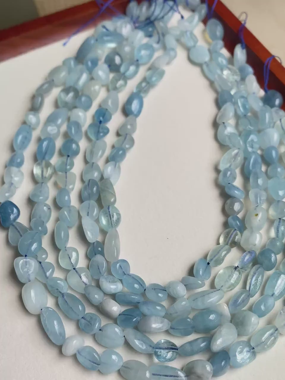 Da alle Perlen aus echtem Aquamarin bestehen, können leichte Unterschiede in Farbe, Form und Transparenz auftreten - jedes Stück ist ein Unikat.